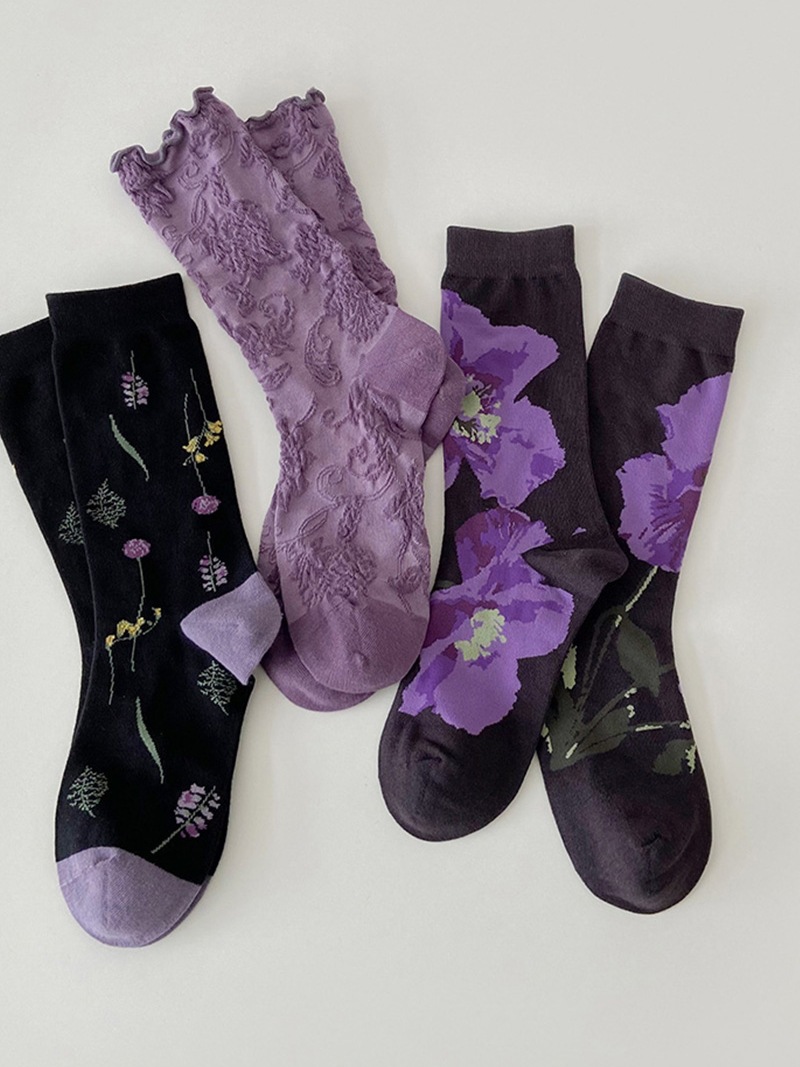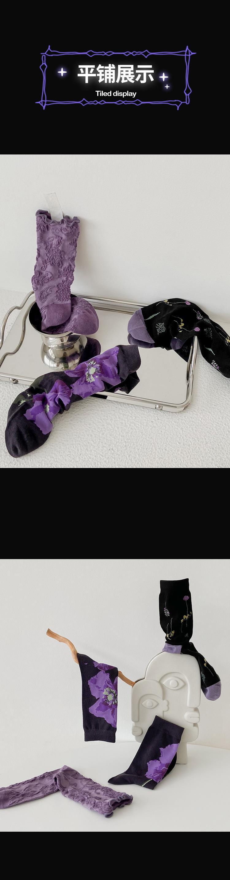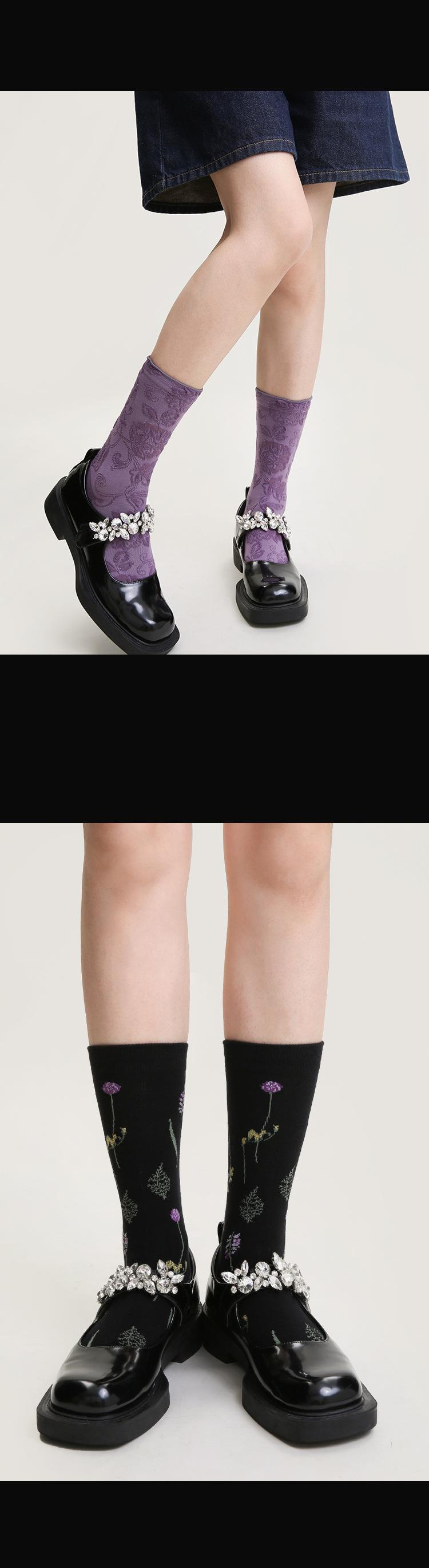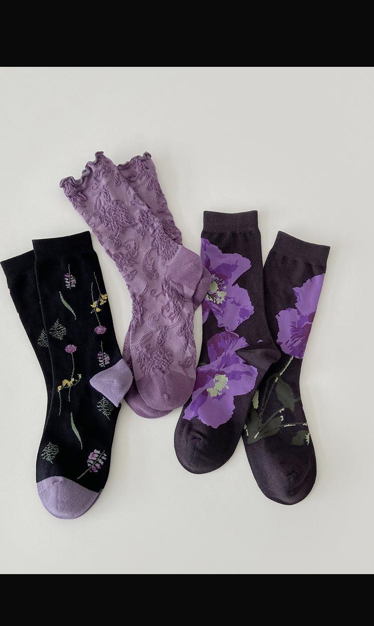 소녀의 보라색 양각 중간 길이 양말 여성용 최신 유행 여성 스타킹 상어 바지가있는 아카데믹 스타일 양말 봄과 가을 달콤한 양말스토어 가기