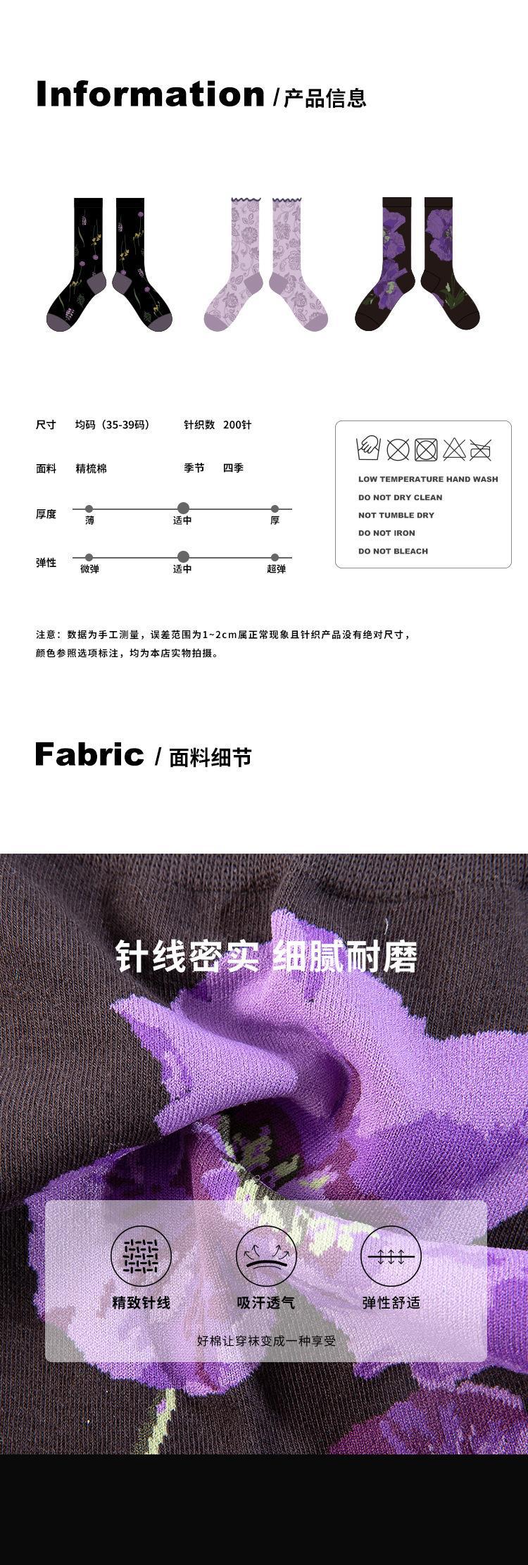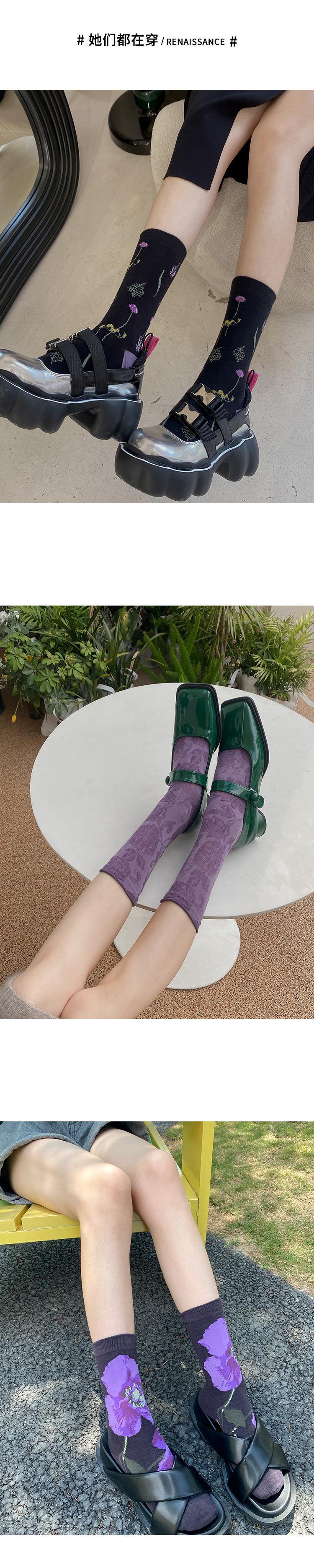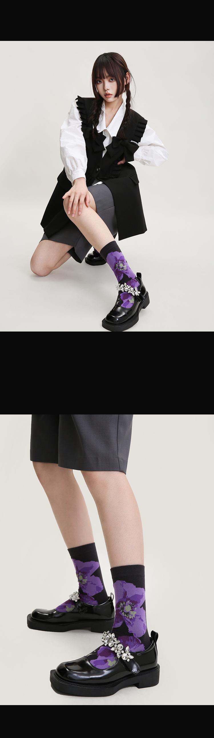 소녀의 보라색 양각 중간 길이 양말 여성용 최신 유행 여성 스타킹 상어 바지가있는 아카데믹 스타일 양말 봄과 가을 달콤한 양말스토어 가기