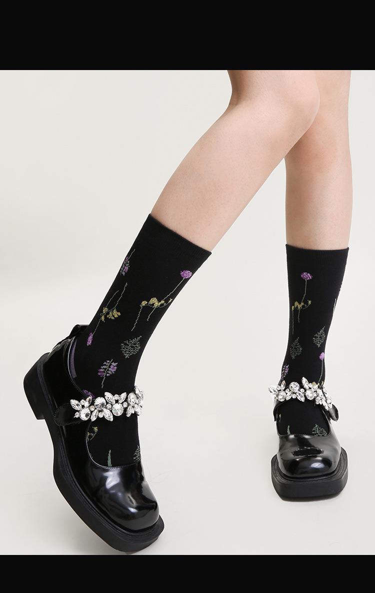 소녀의 보라색 양각 중간 길이 양말 여성용 최신 유행 여성 스타킹 상어 바지가있는 아카데믹 스타일 양말 봄과 가을 달콤한 양말