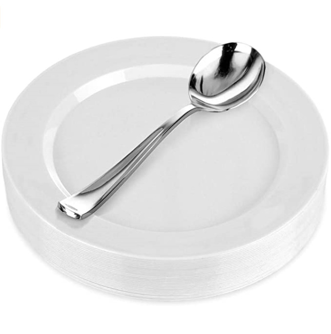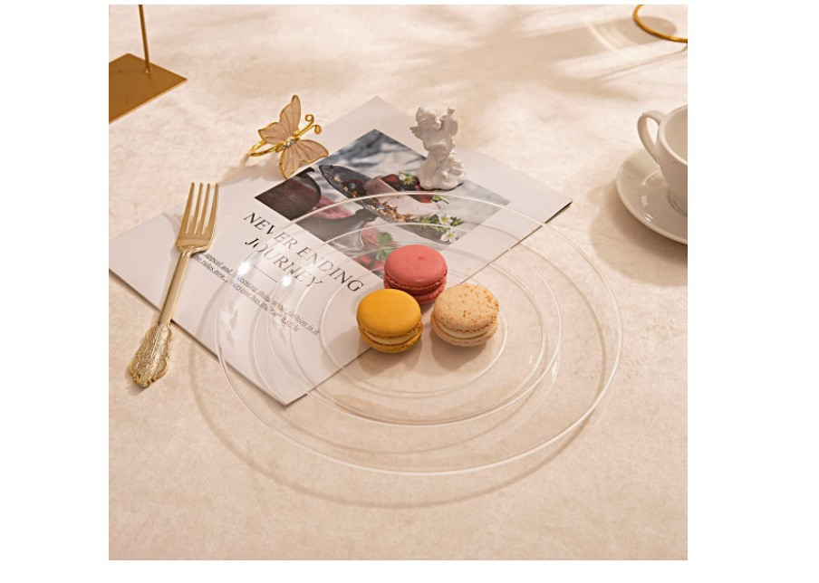 7.510.25 인치 하드 플라스틱 PS 일회용 흰 접시 서양 접시 투명 케이크 접시 크리스탈 뼈 접시스토어 가기