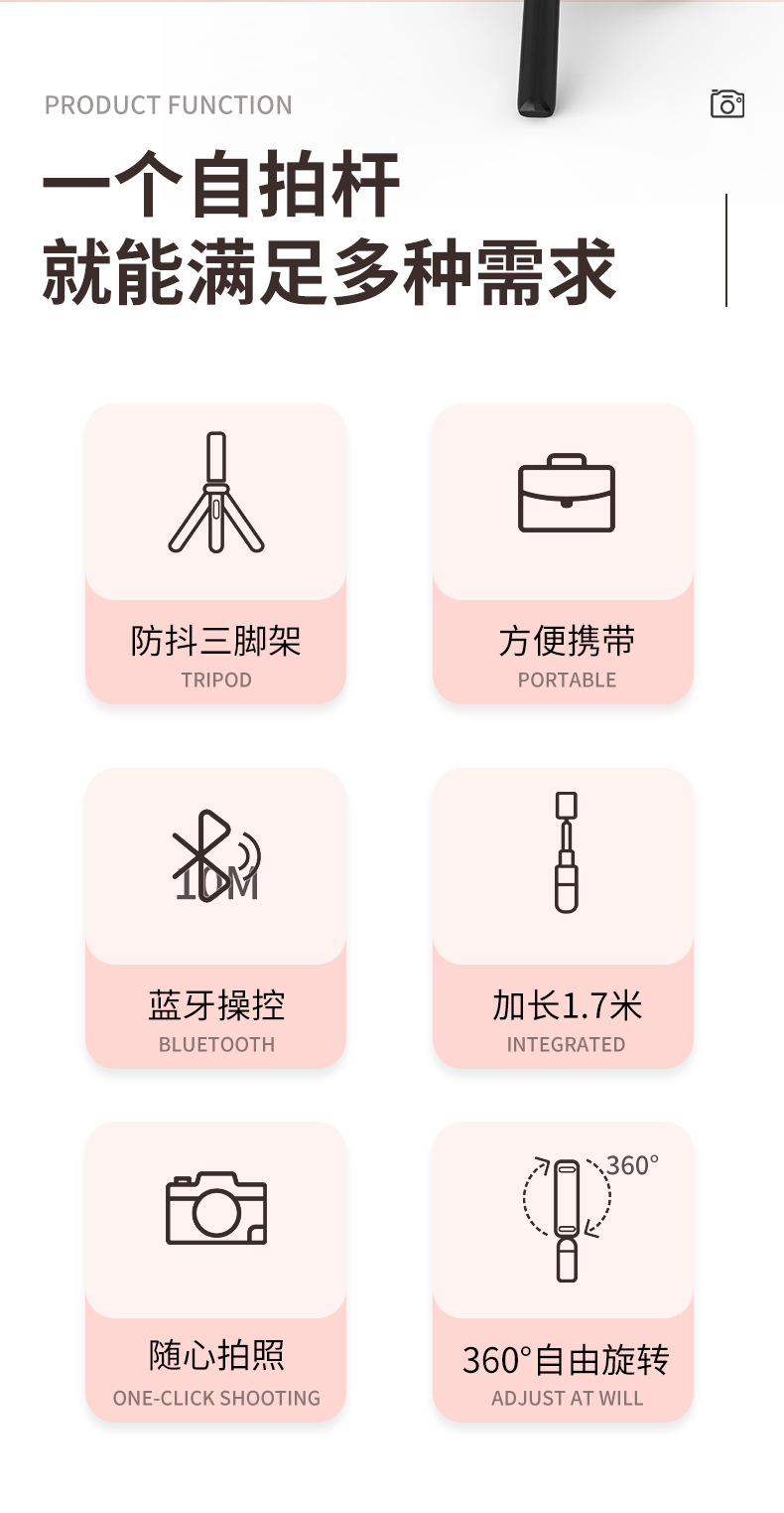 휴대 전화 블루투스 셀카 스틱 휴대용 삼각대 확장 1.8m 바디 다기능 손떨림 방지 사진 촬영 유물스토어 가기