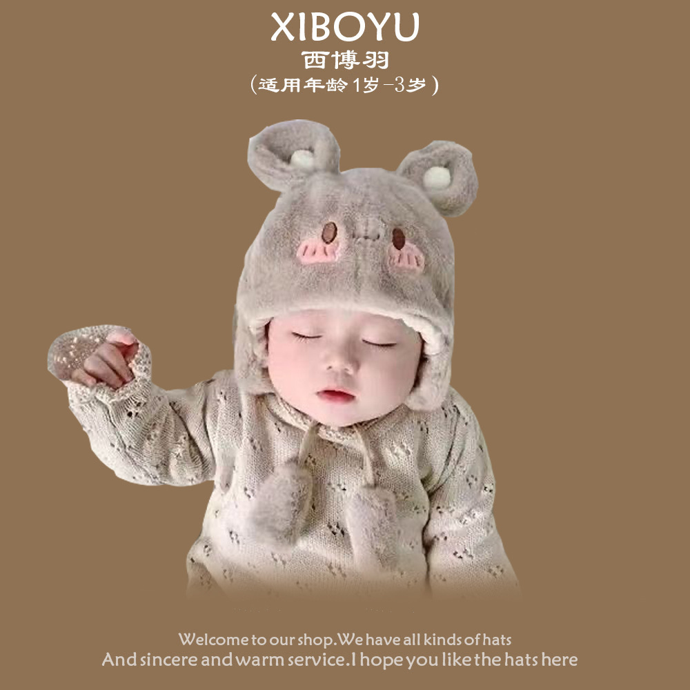 가을과 겨울 어린이 따뜻한 모자 한국 미카 시리즈 아기 모자 2024 새로운 아기 따뜻한 귀 보호 방풍 모자스토어 가기