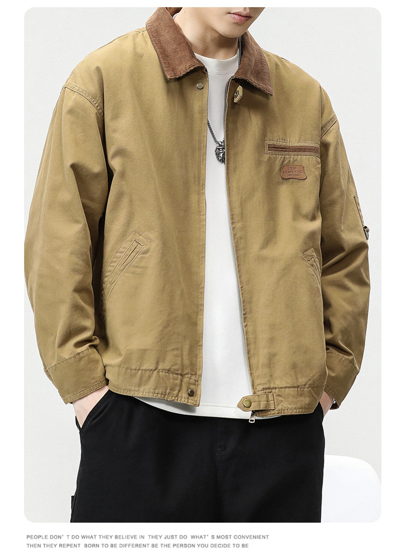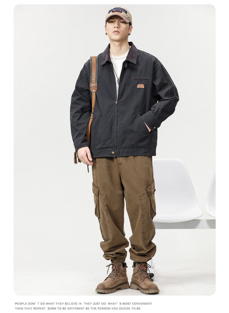 봄과 가을 새 재킷 남성 패션 편안한 캐주얼 남성 옷깃 느슨한 작업복 재킷 남성 도매