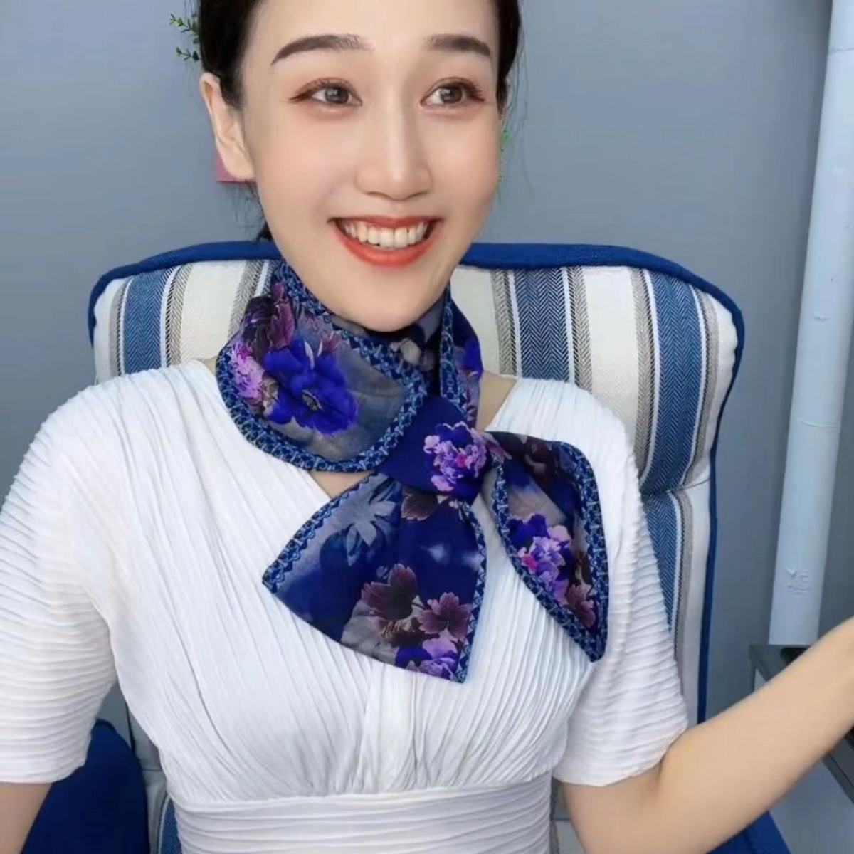 • 푸른 꽃 바다 고대 운 긴 스카프