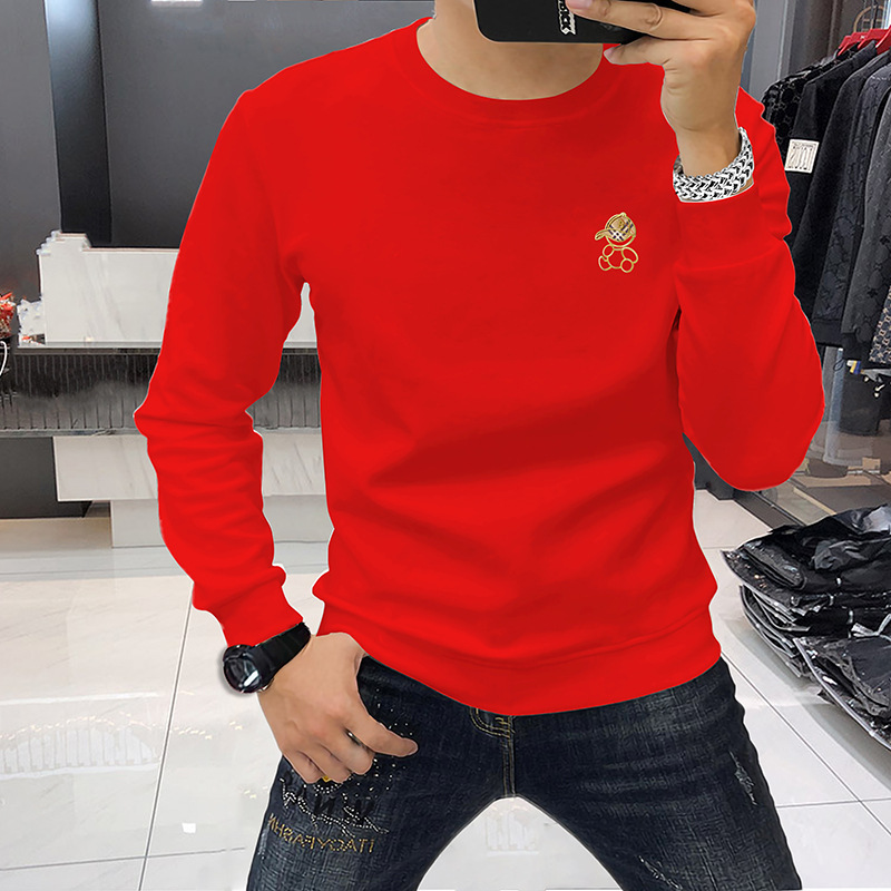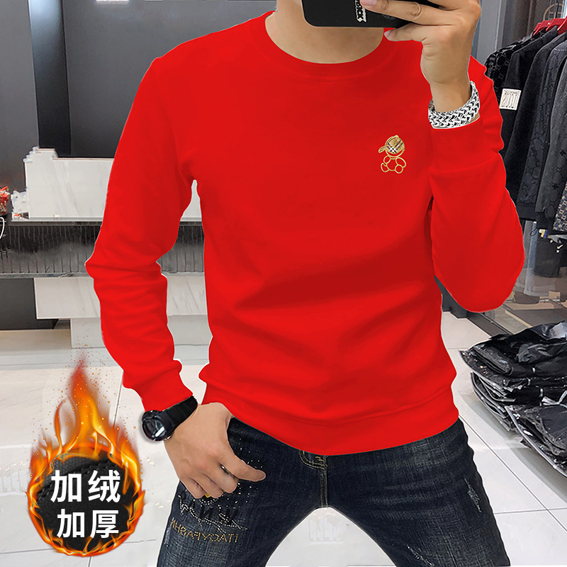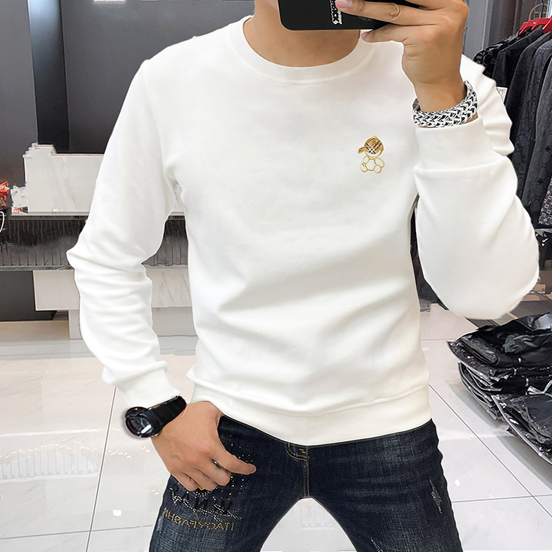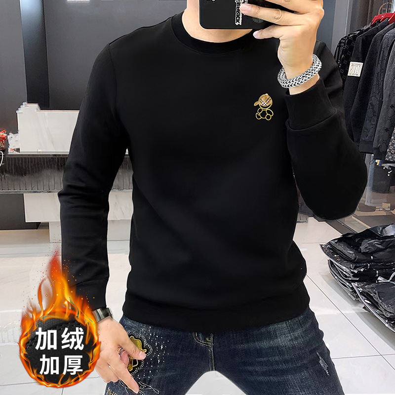가을과 겨울 새로운 남자의 가벼운 럭셔리 라운드 넥 운동복 캐주얼 모든 경기 남자의 긴팔 기모 두꺼운 탑 패션 브랜드
