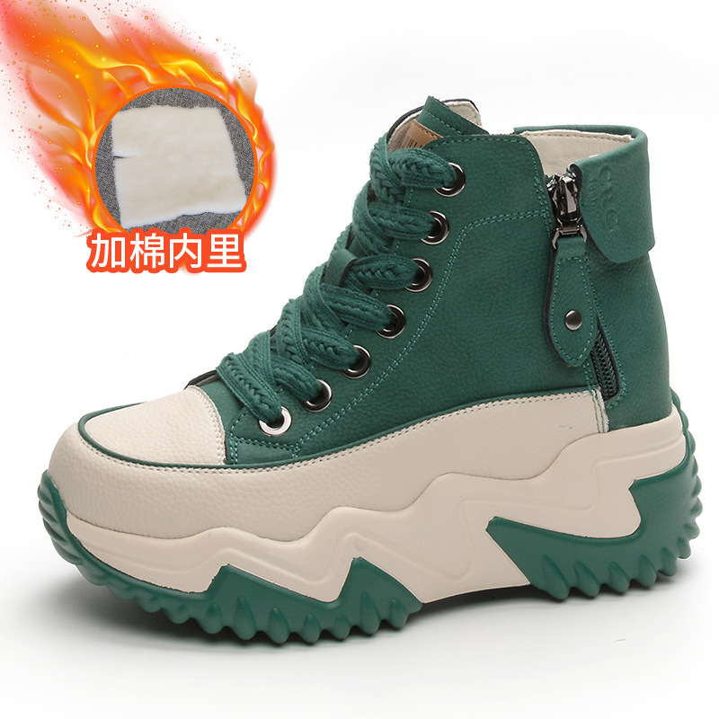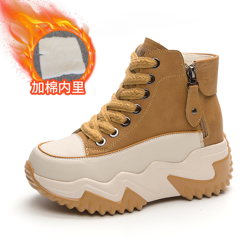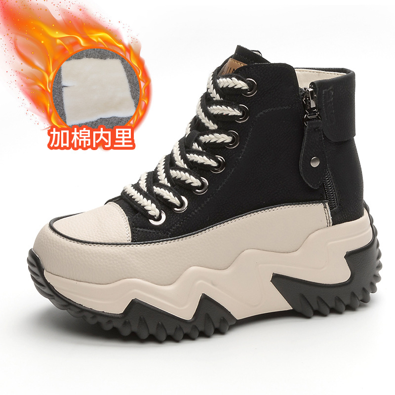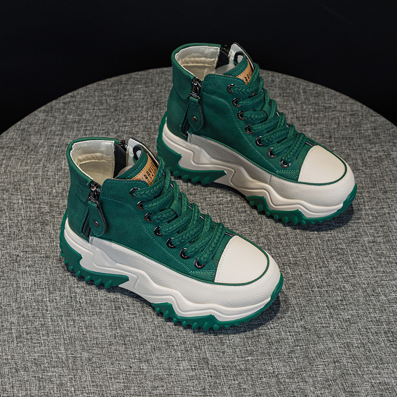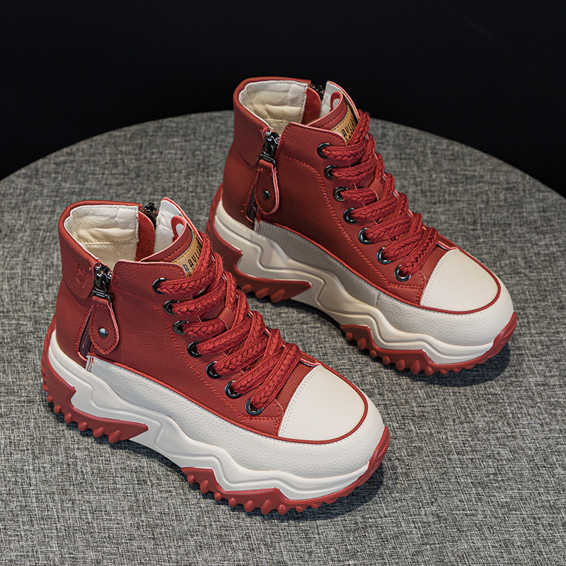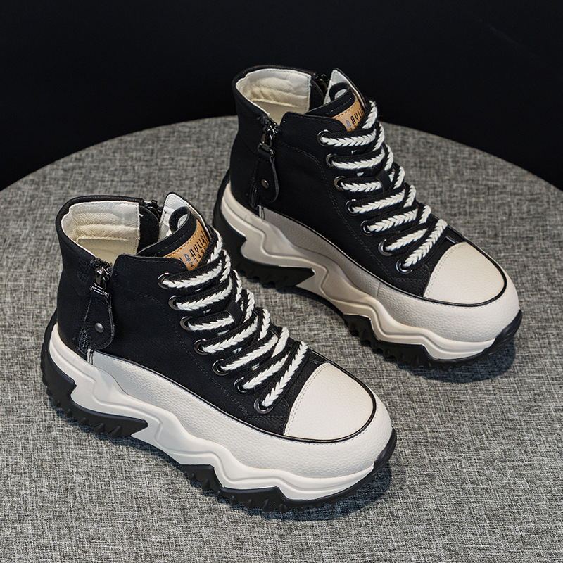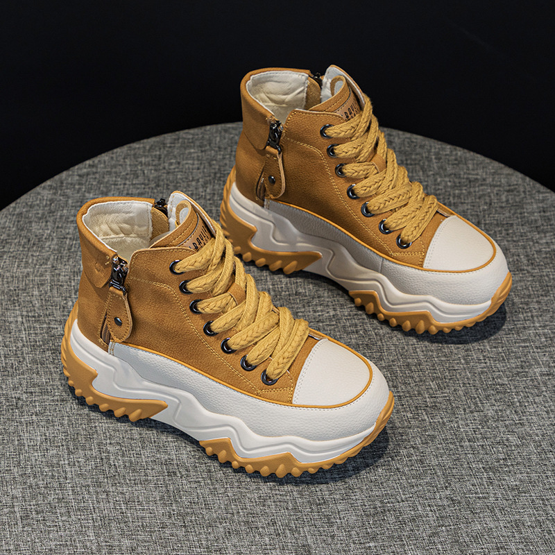 정품 가죽 레트로 하이탑 여성 신발 2025 가을 신상 두꺼운 밑창 플랫폼 인기 캐주얼 스포츠 아빠 신발스토어 가기