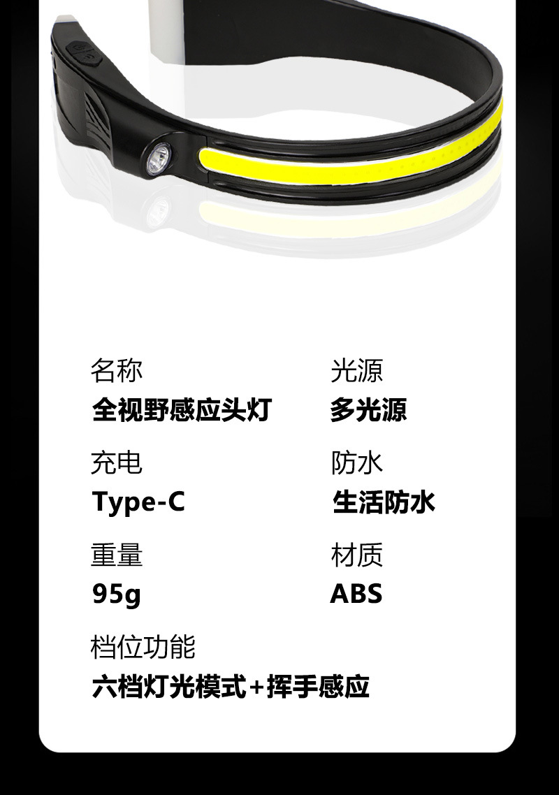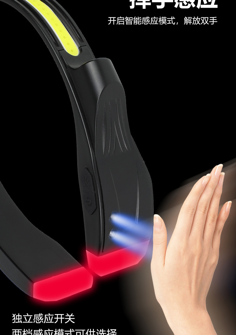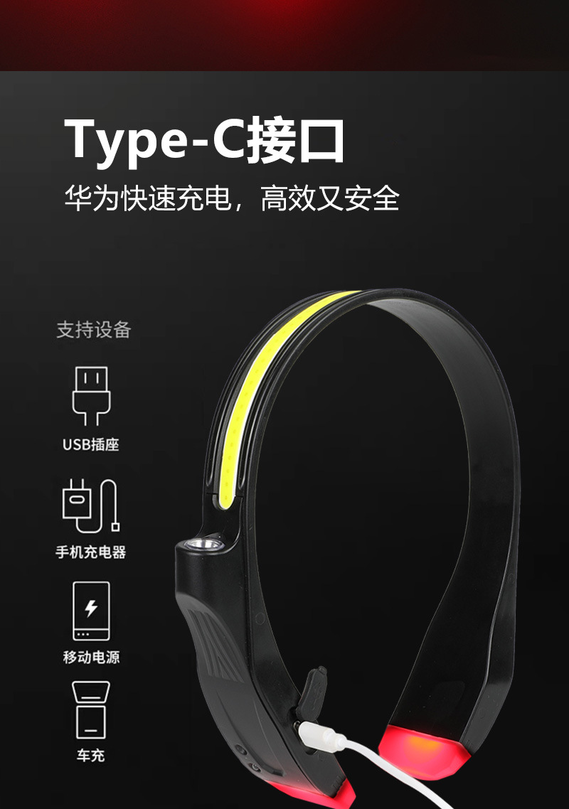 새로운 스타일 교수형 목 헤드라이트 야외 COB 고광택 야간 낚시 헤드라이트 Type-c 충전 야간 승차 유도 헤드라이트