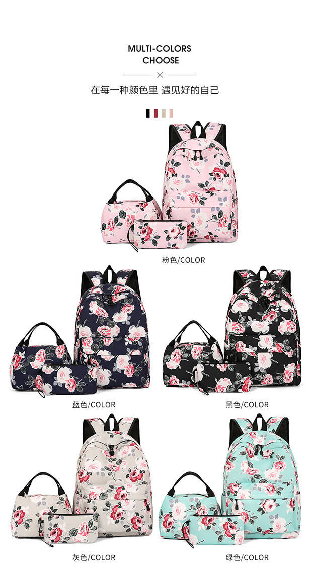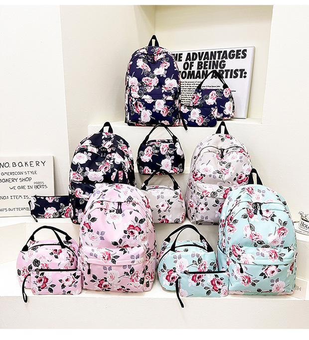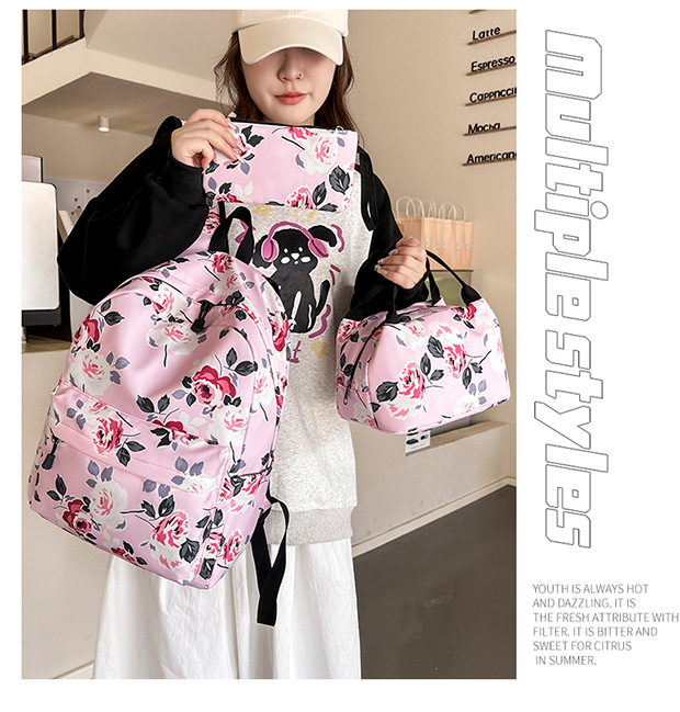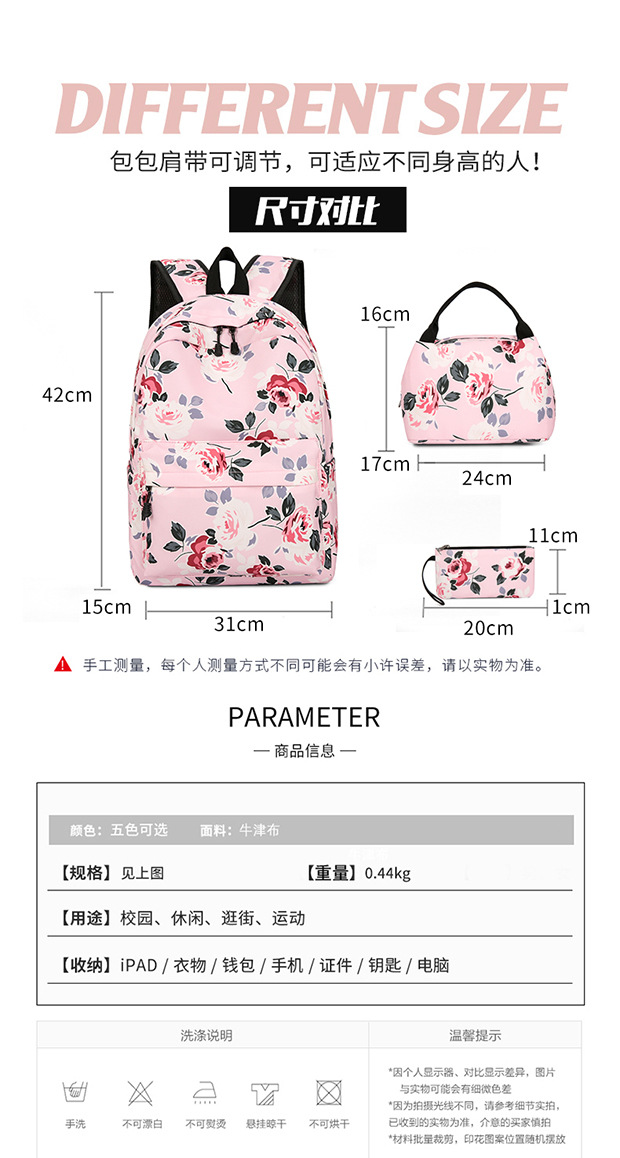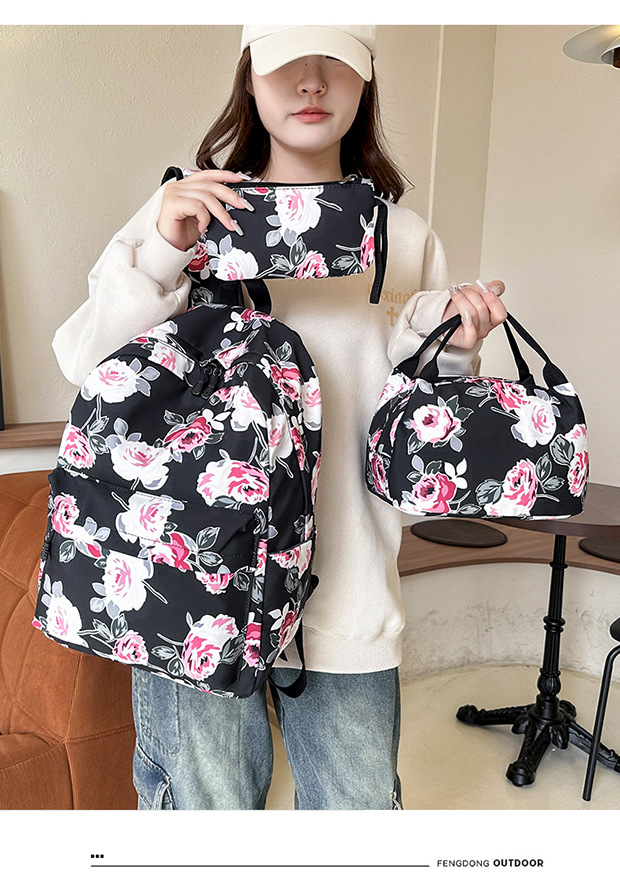 책가방 3종 세트 캐주얼 백팩 보온백 해외 신상 패션 플로럴 심플 백팩 대용량스토어 가기