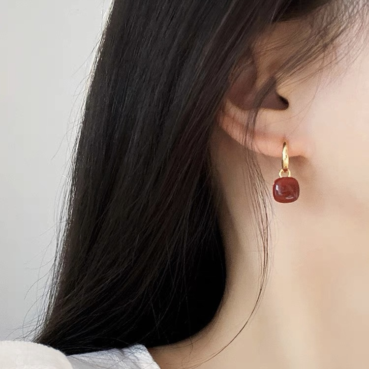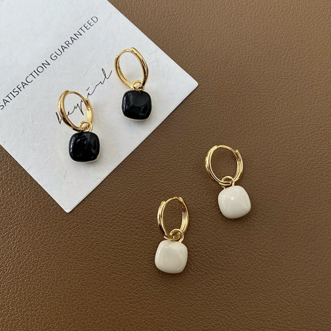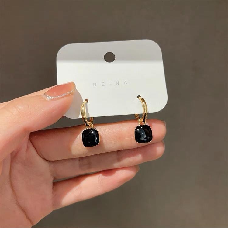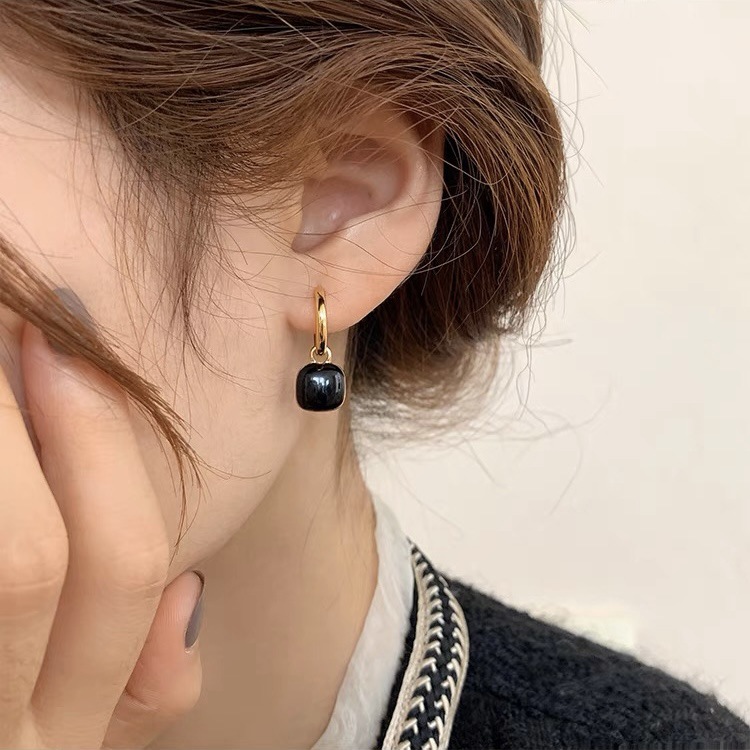 하나 두 착용 블랙 스퀘어 귀걸이 빈티지 스털링 실버 귀걸이 여성 틈새 디자인 높은 귀 버클 인터넷 연예인 귀걸이스토어 가기