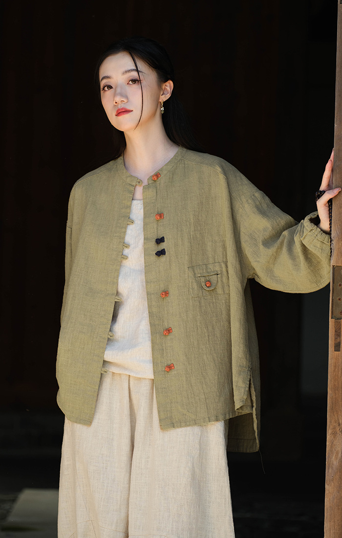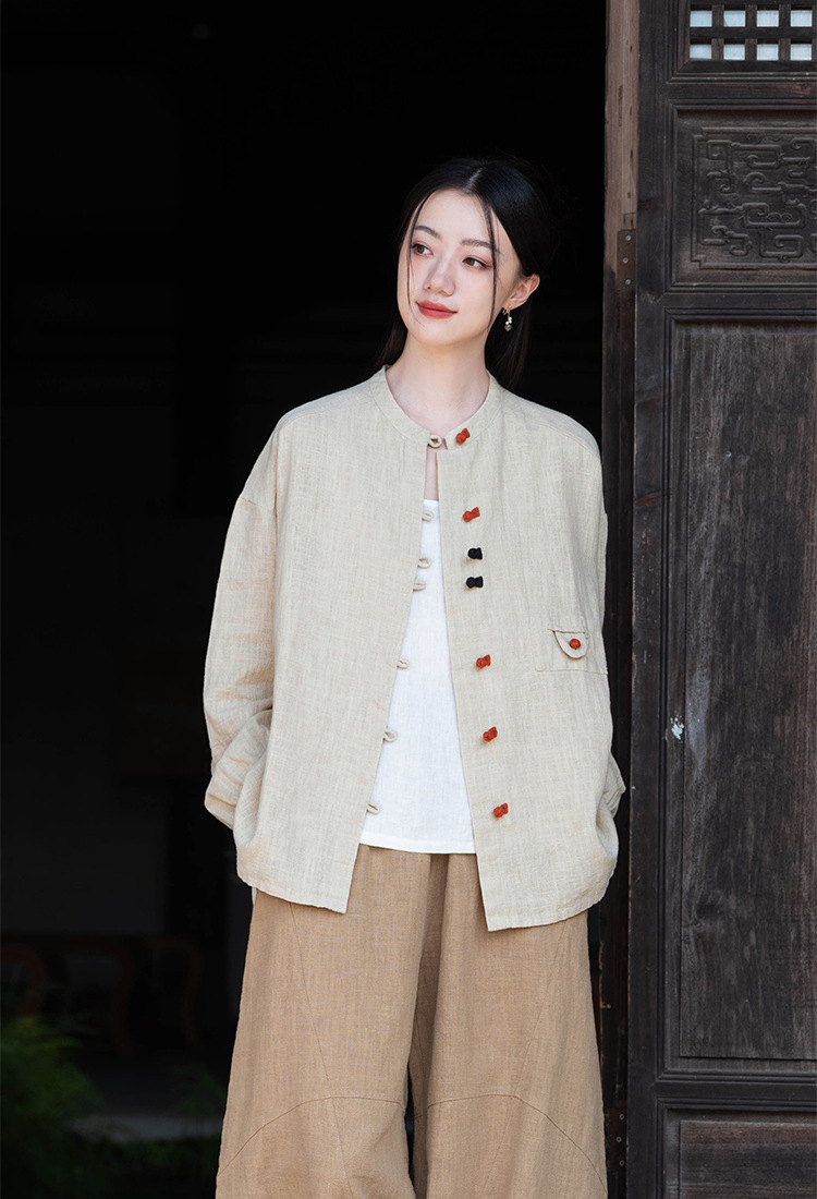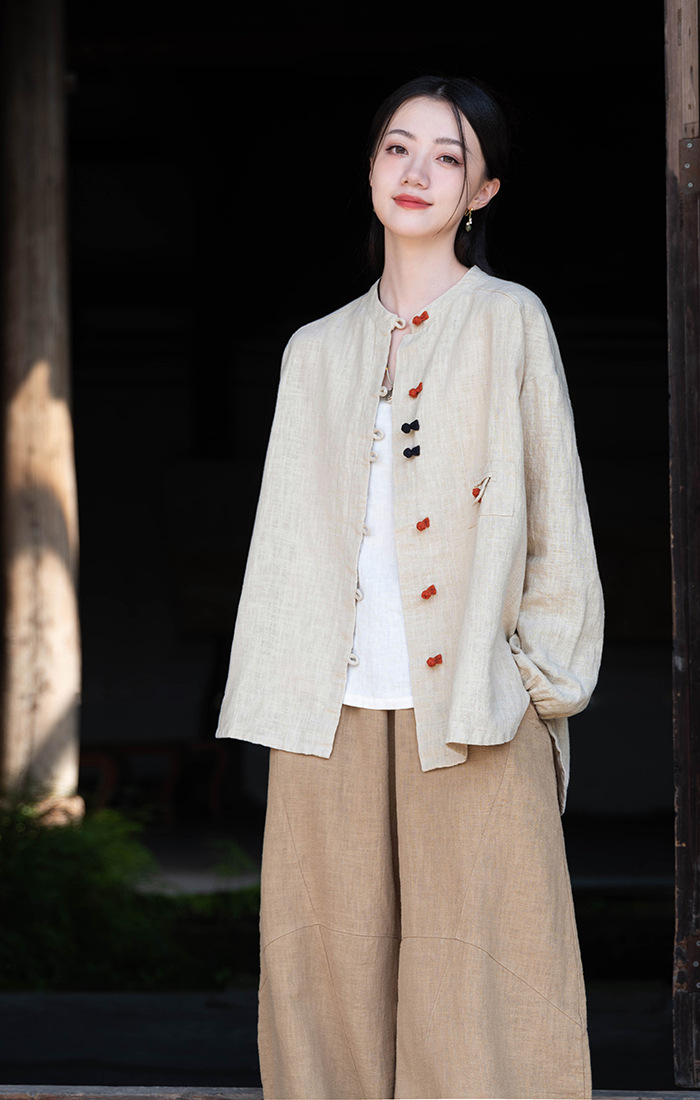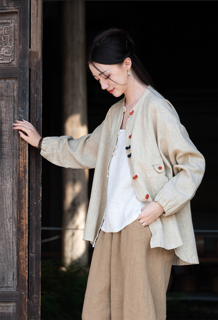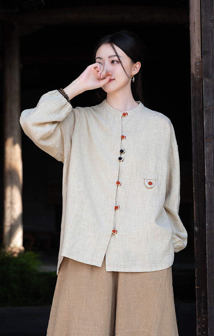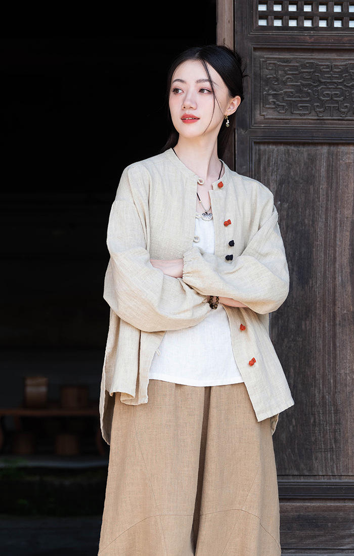 25 새로운 가을 면 및 린넨 여성 의류, 예술적 복고풍 면 및 린넨 탑 셔츠, 여성용 컬러 블록 버튼 카디건 재킷