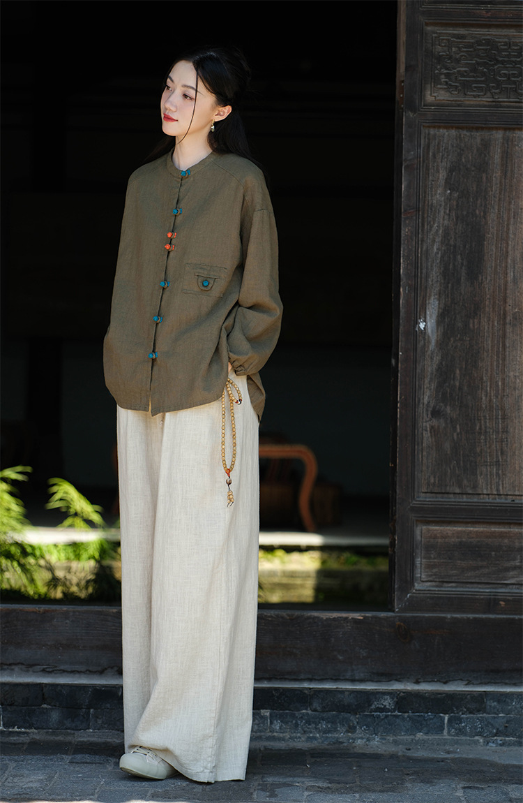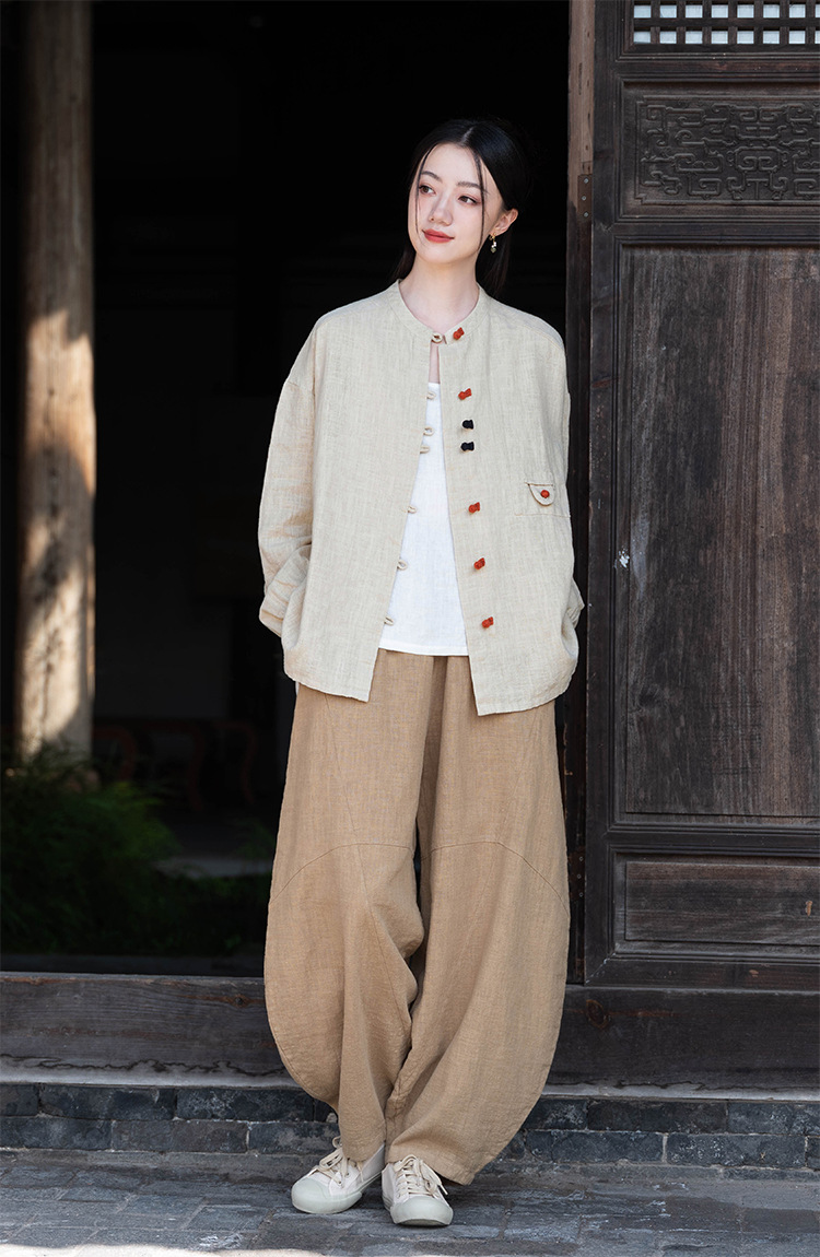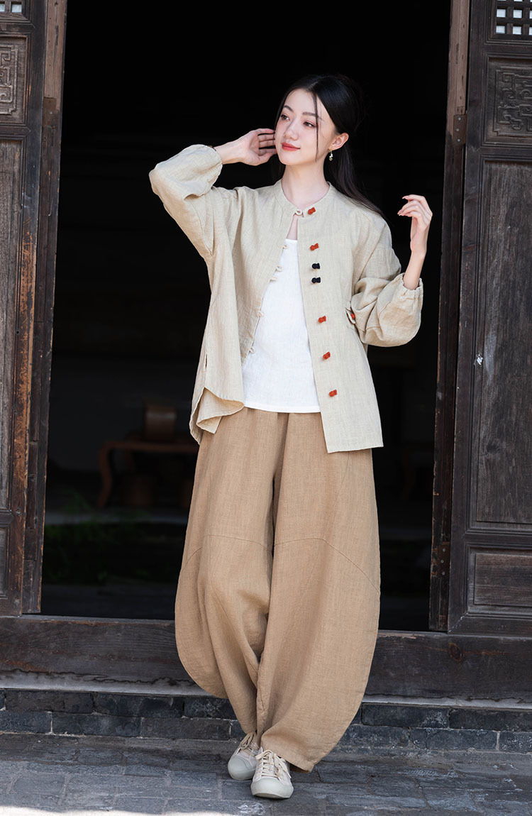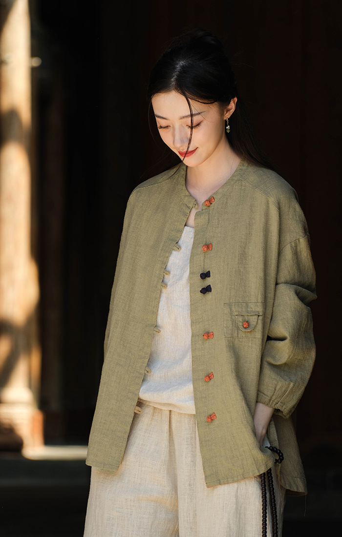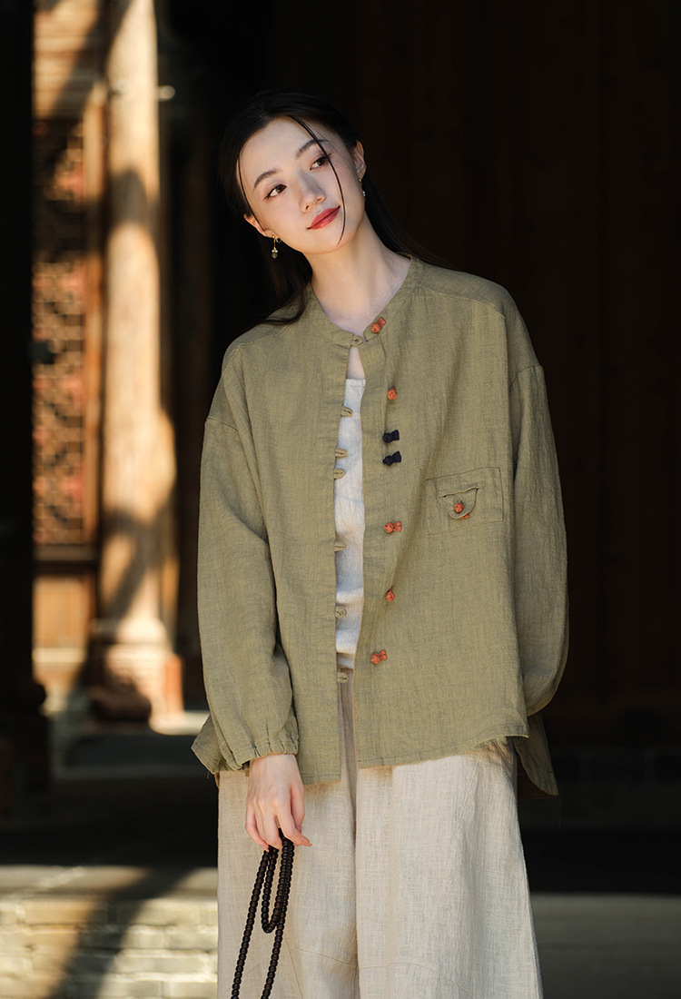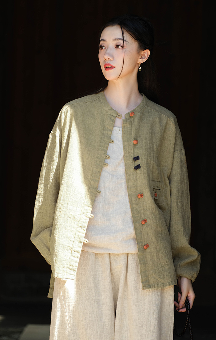 25 새로운 가을 면 및 린넨 여성 의류, 예술적 복고풍 면 및 린넨 탑 셔츠, 여성용 컬러 블록 버튼 카디건 재킷