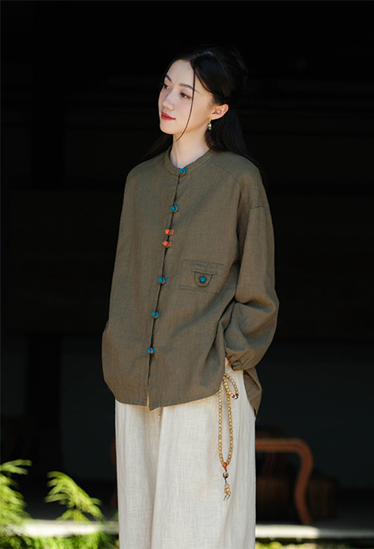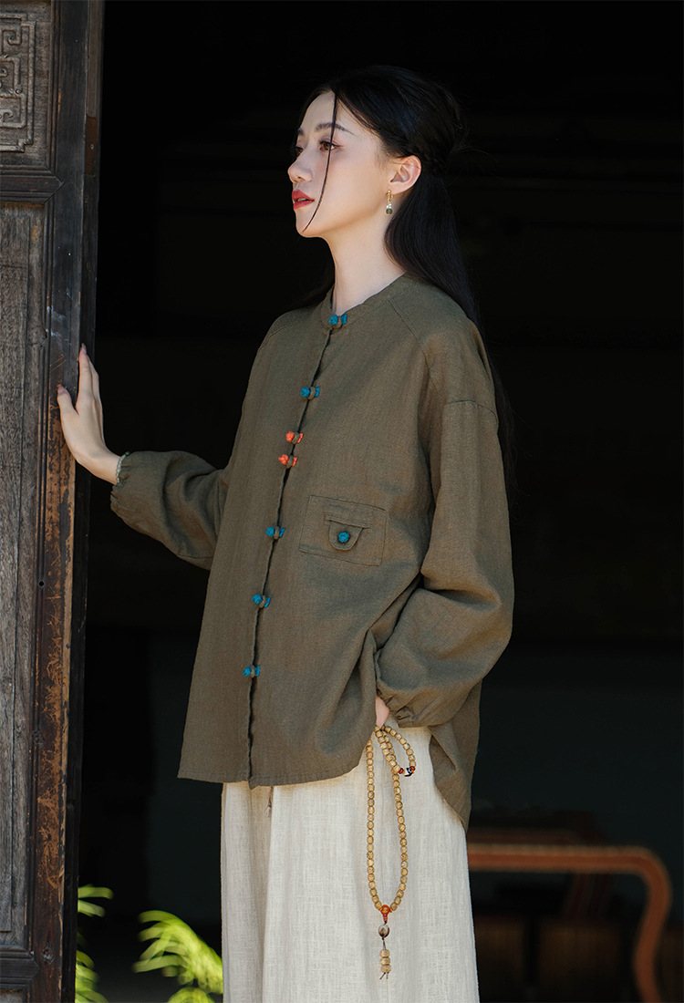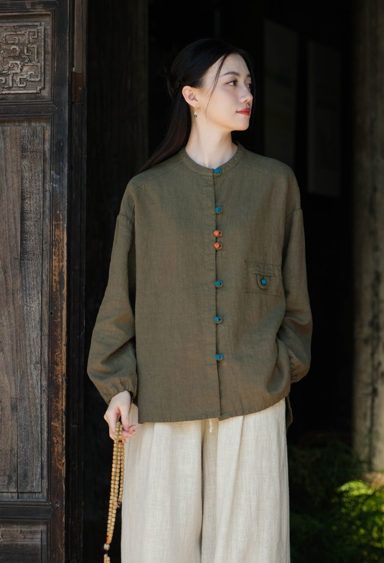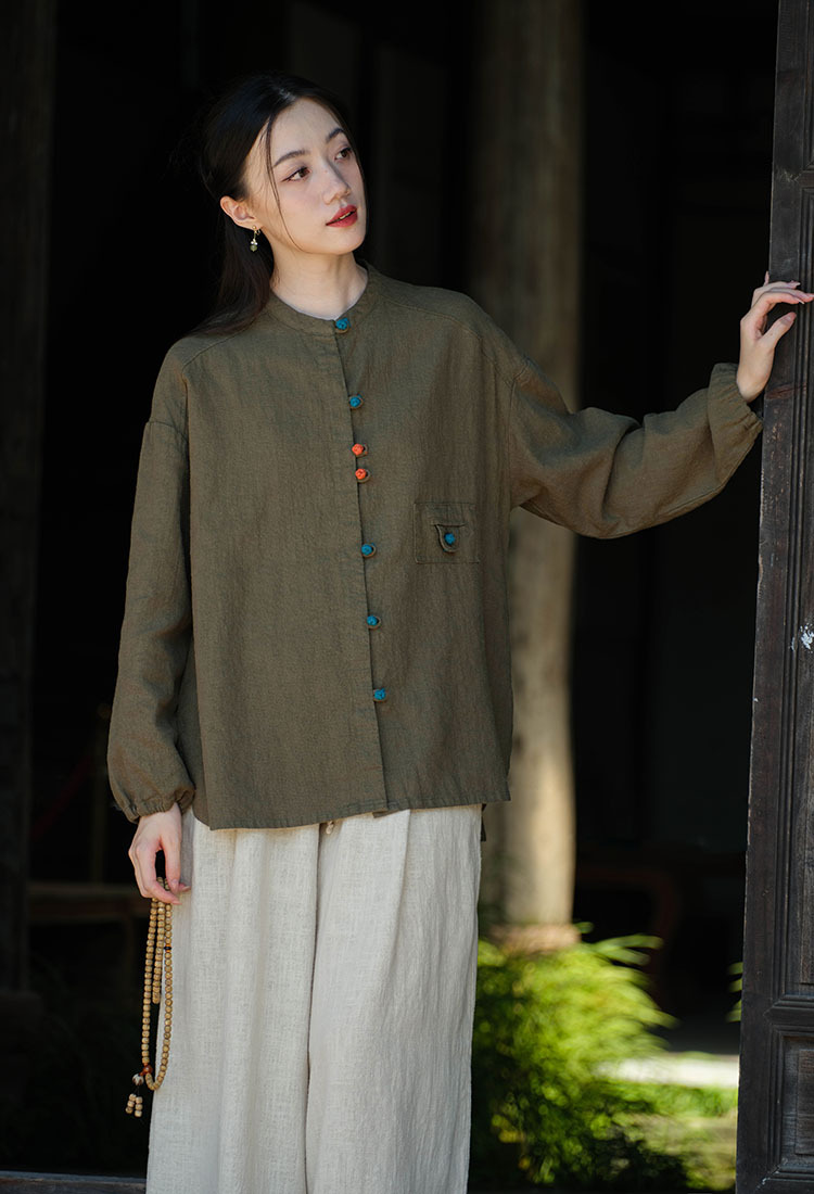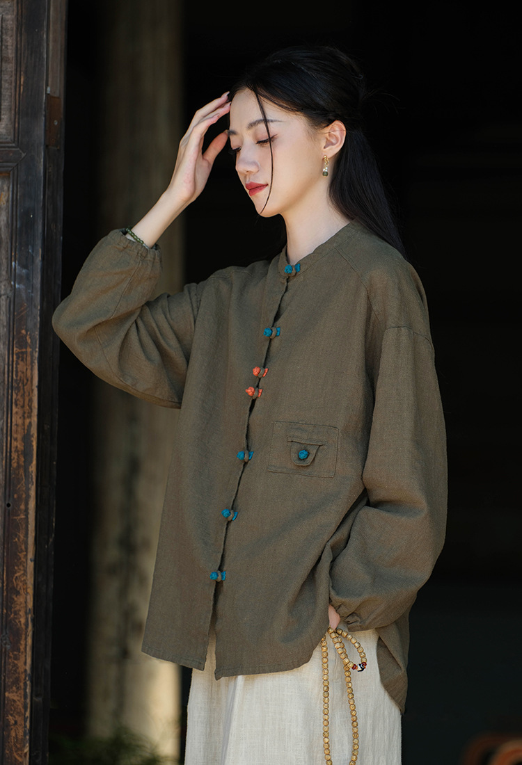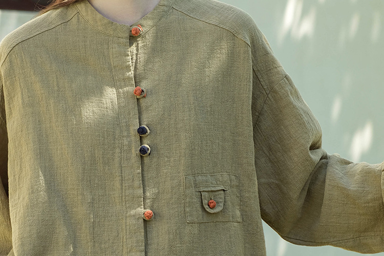 25 새로운 가을 면 및 린넨 여성 의류, 예술적 복고풍 면 및 린넨 탑 셔츠, 여성용 컬러 블록 버튼 카디건 재킷스토어 가기