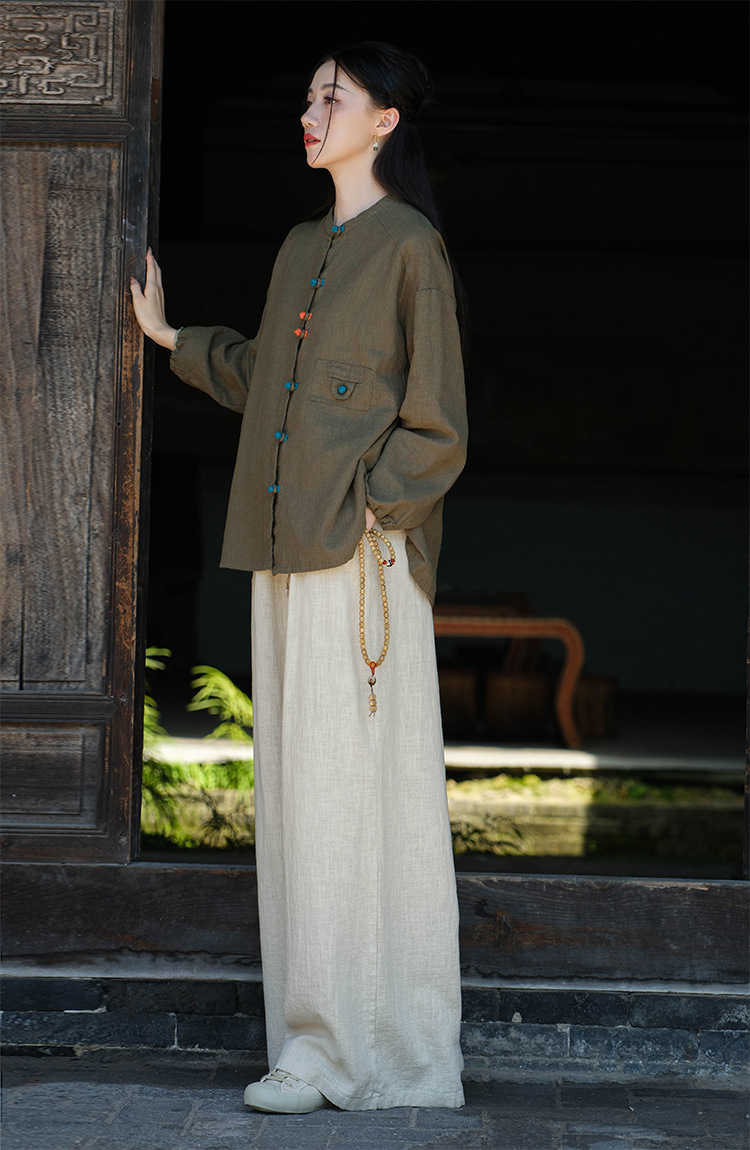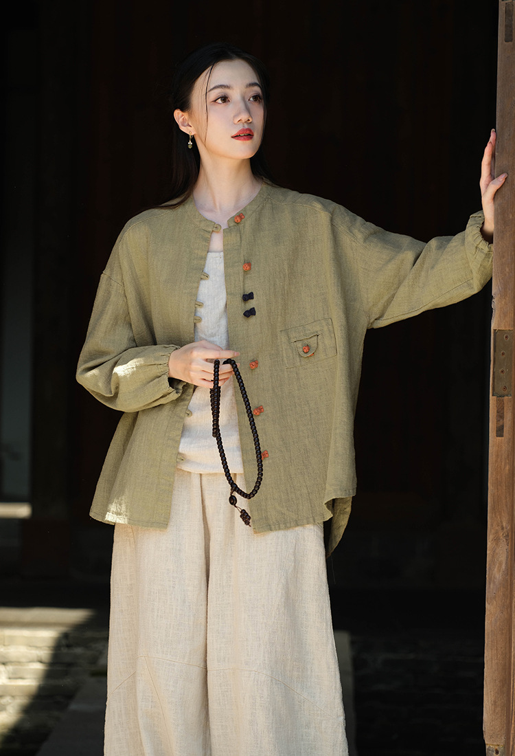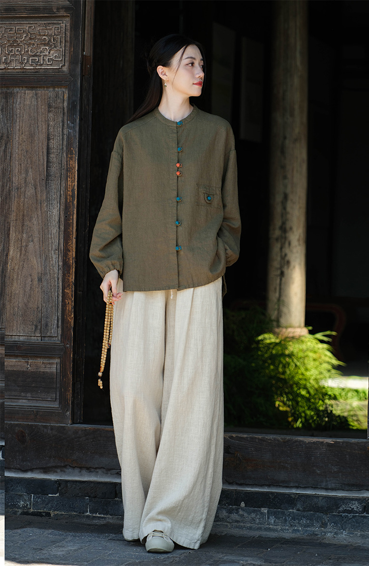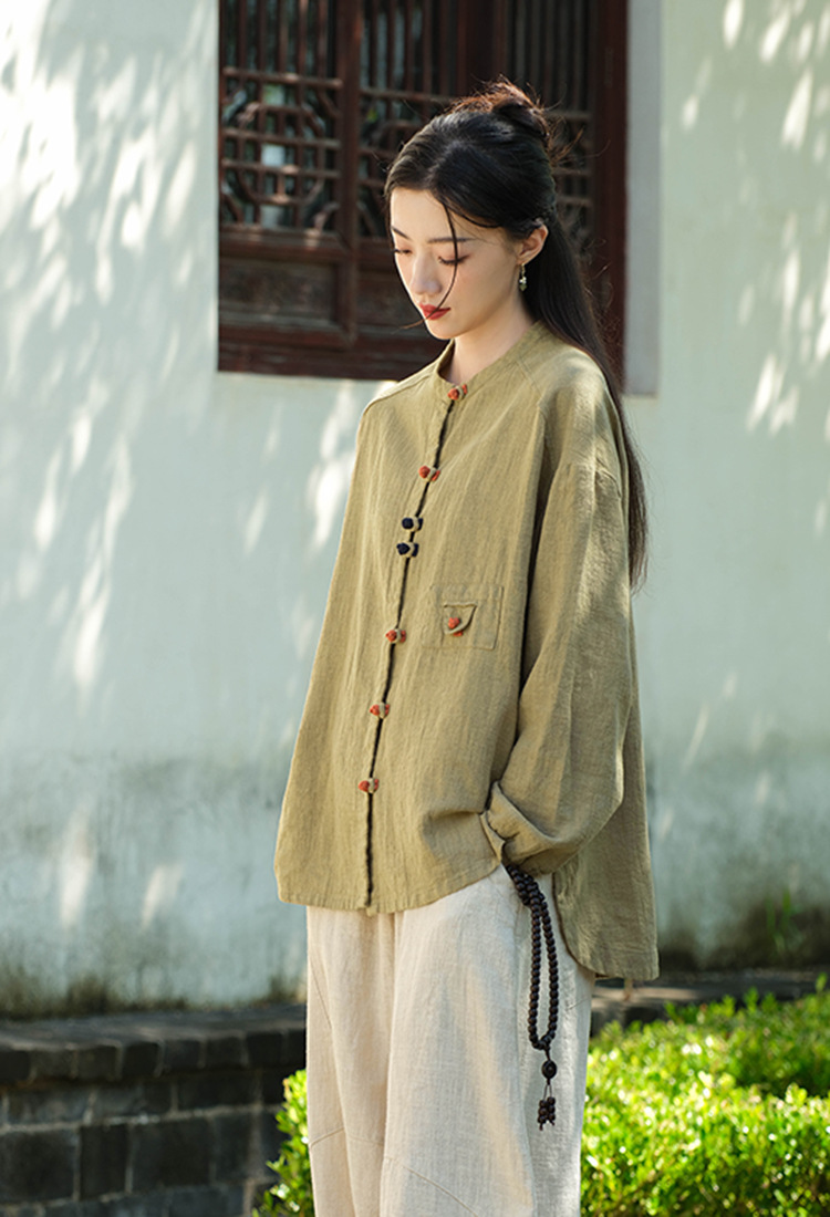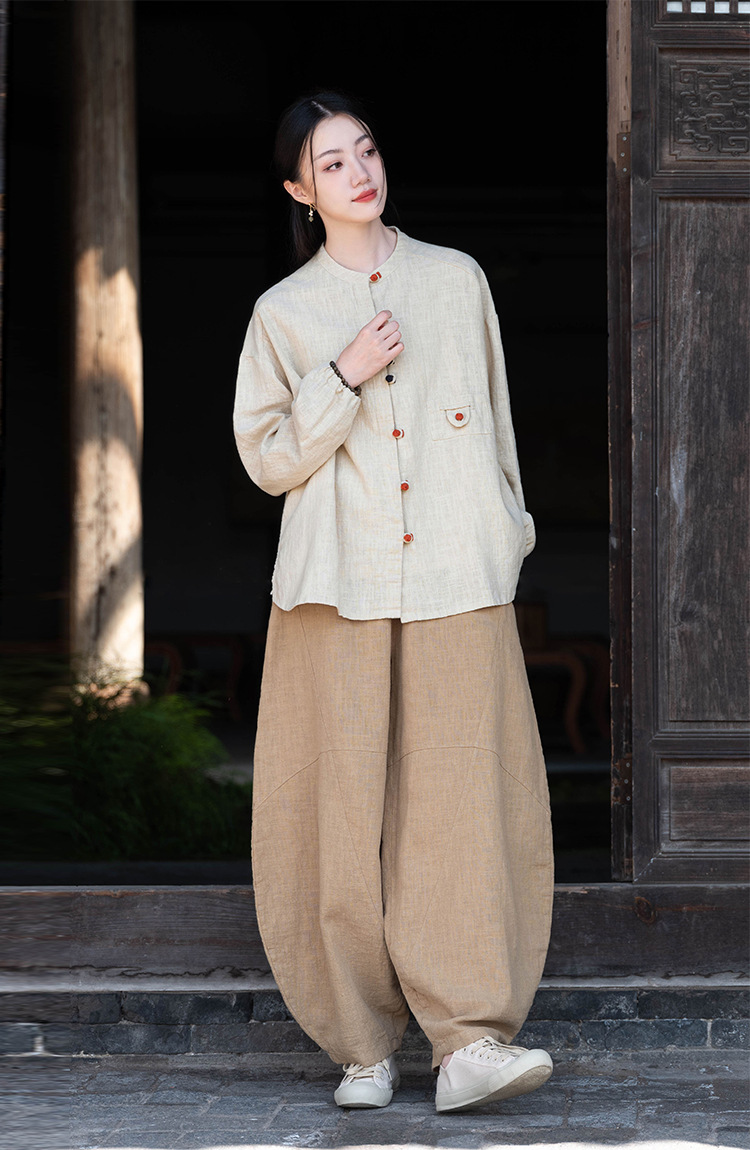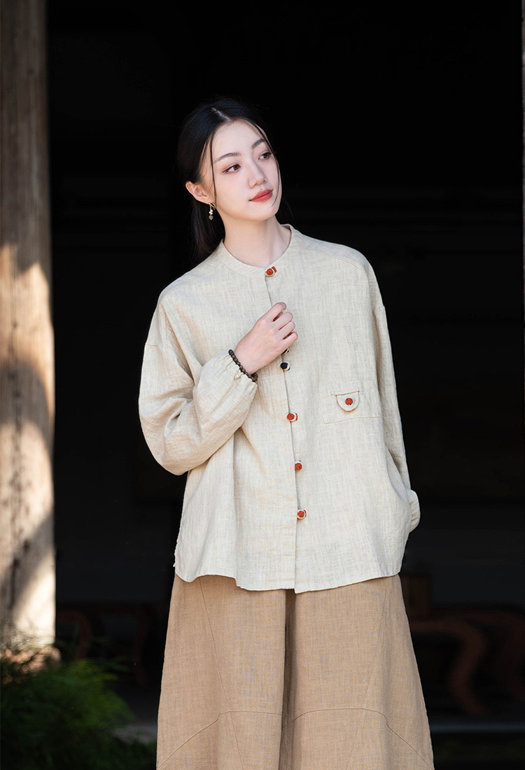 25 새로운 가을 면 및 린넨 여성 의류, 예술적 복고풍 면 및 린넨 탑 셔츠, 여성용 컬러 블록 버튼 카디건 재킷스토어 가기