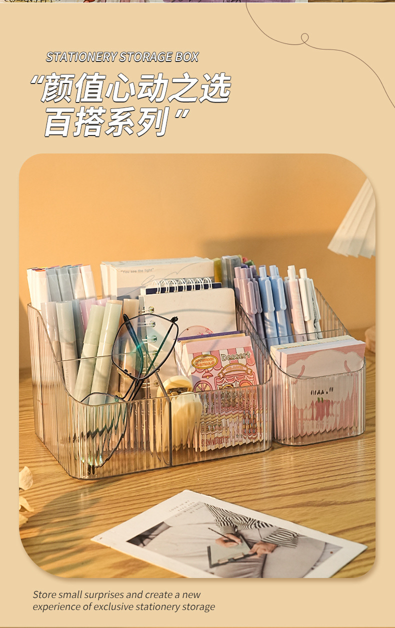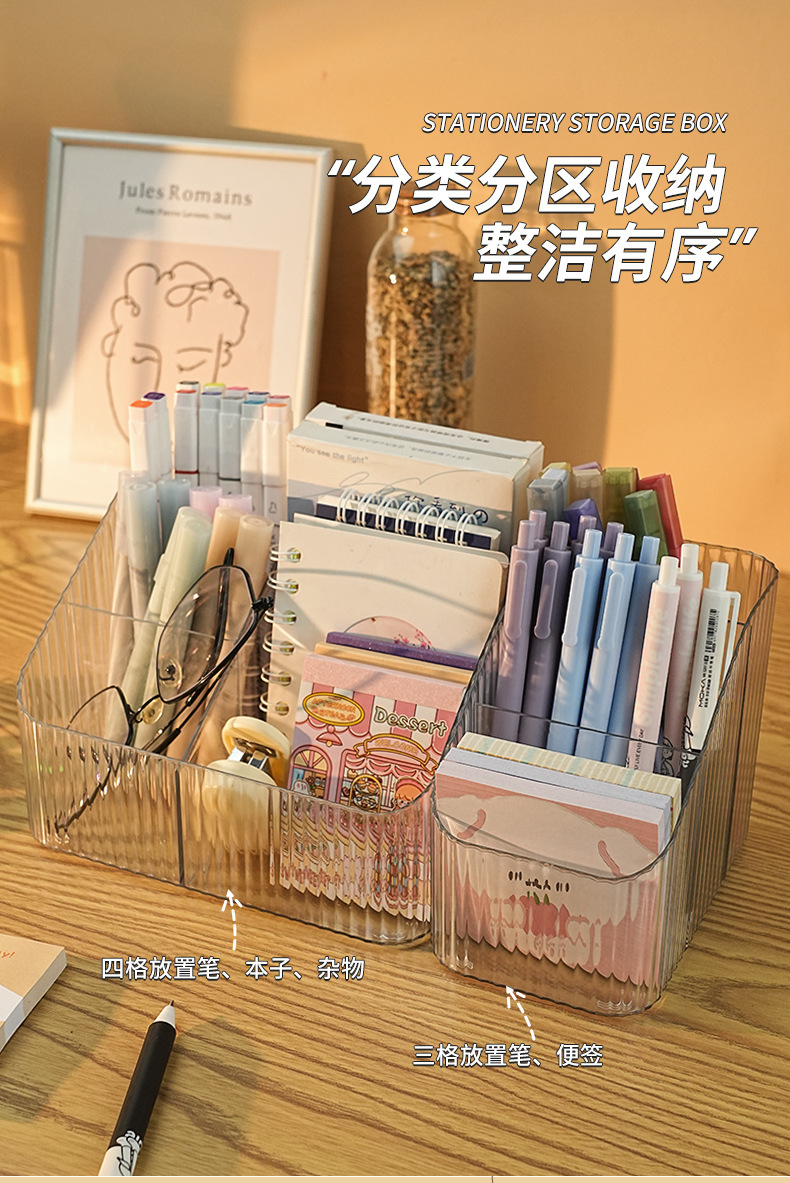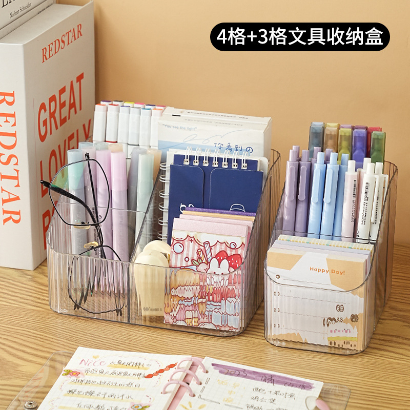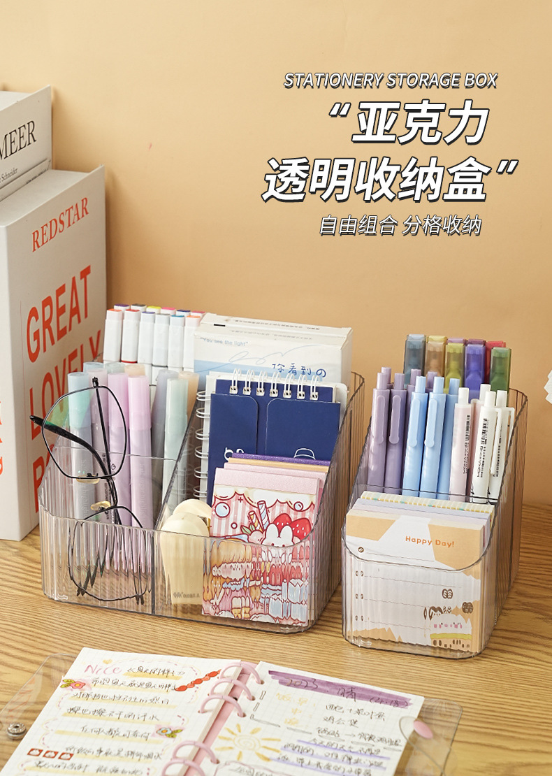 문구류 보관 상자 데스크탑 기숙사 데스크 사무실 투명 펜 홀더 잡화 노트 분할 아크릴 보관 랙스토어 가기