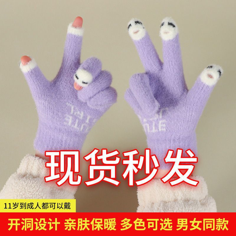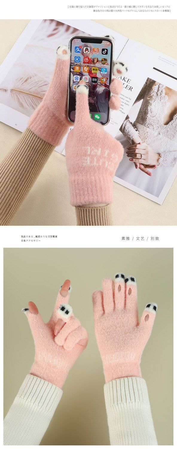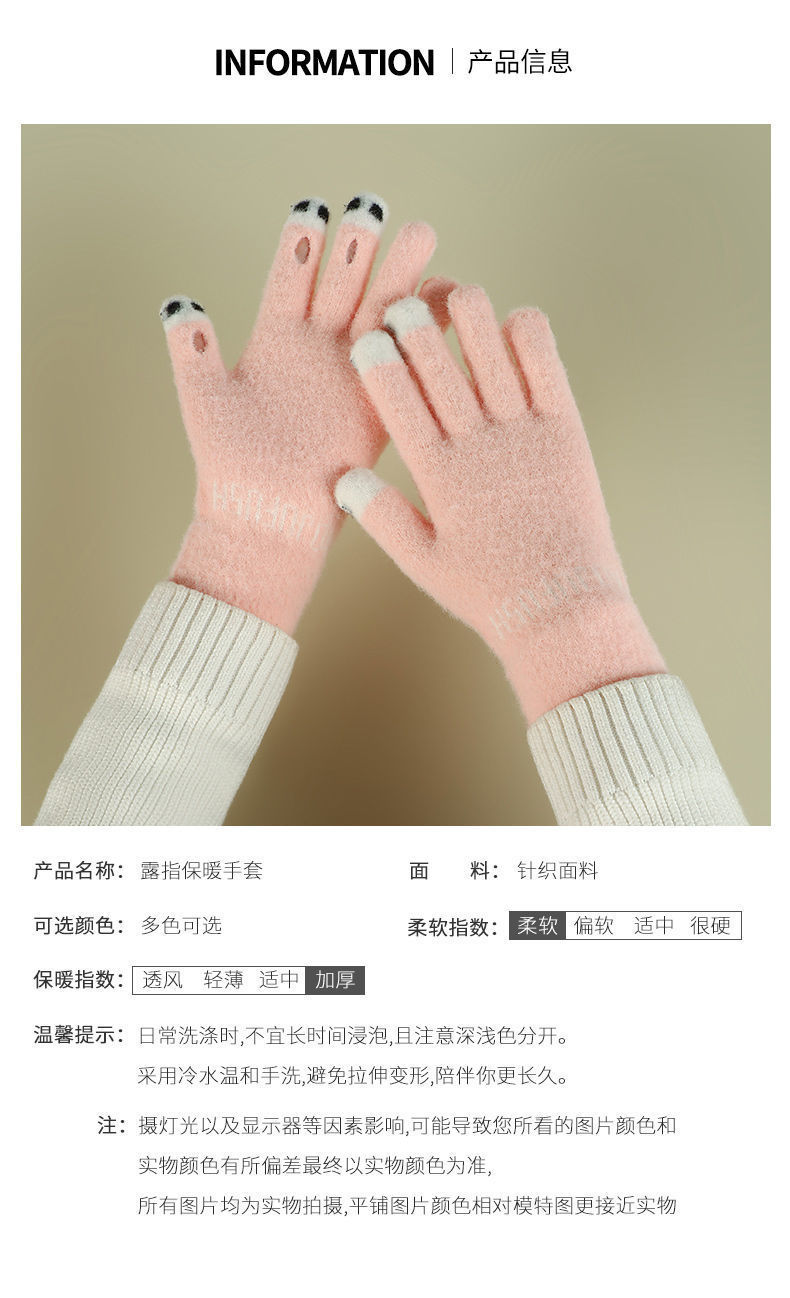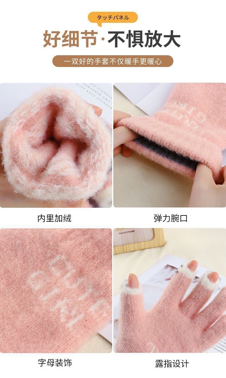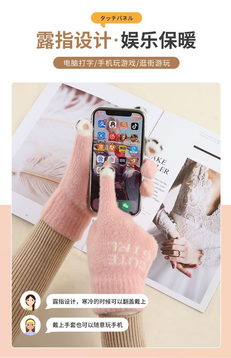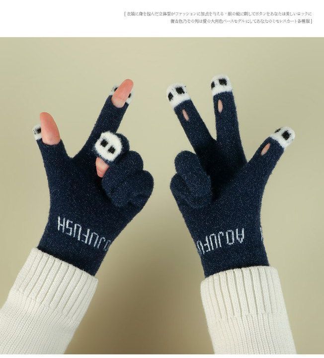 크리스탈 거즈 도도피쉬 손가락 없는 장갑 여성용 니트 보온 가을 겨울 만화 스타일 학생용 글쓰기 도도피쉬 장갑스토어 가기