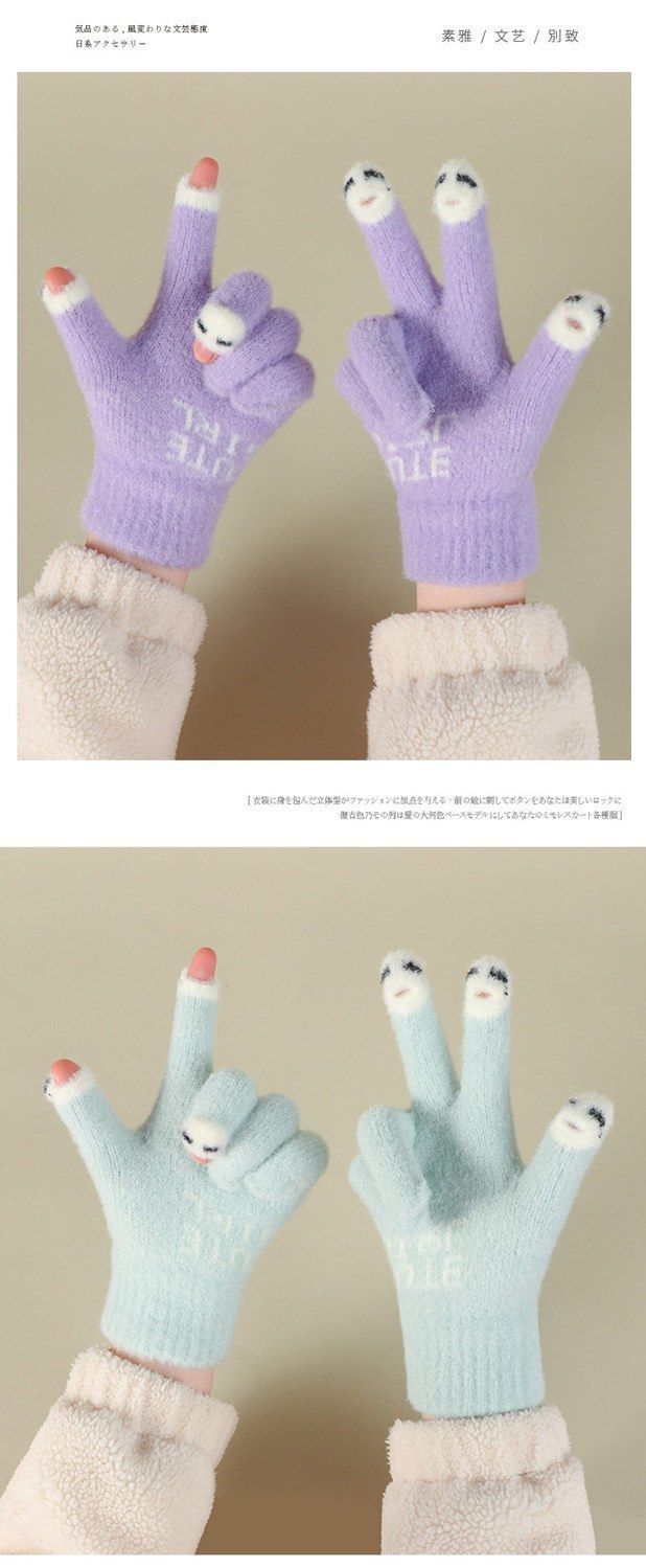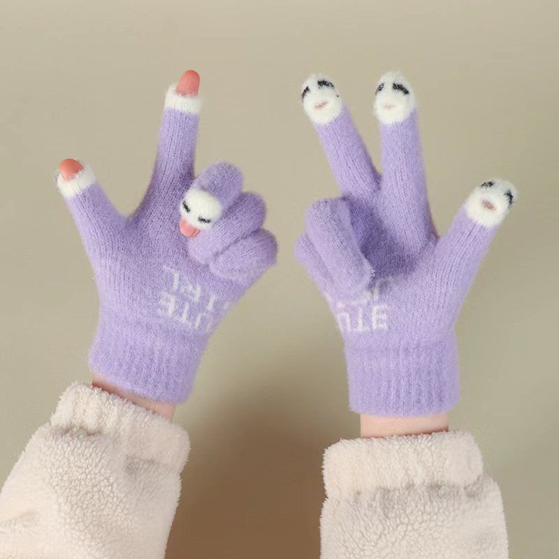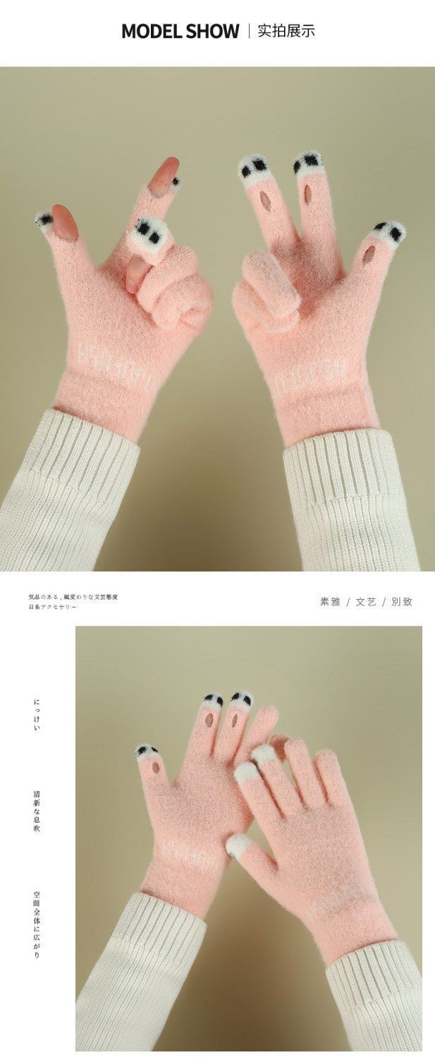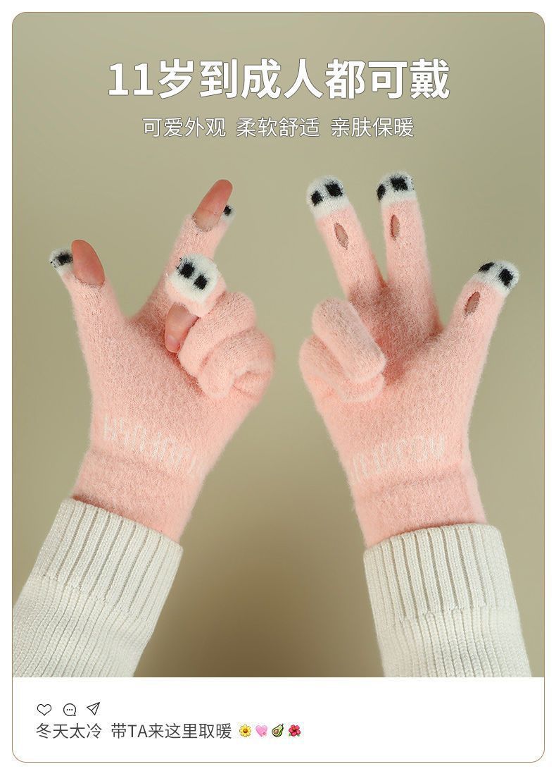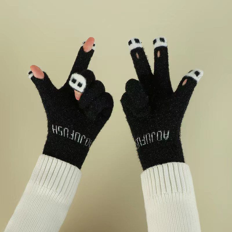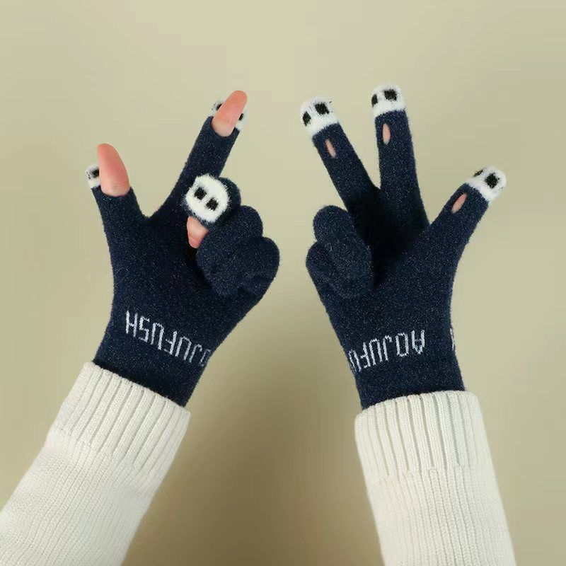 크리스탈 거즈 도도피쉬 손가락 없는 장갑 여성용 니트 보온 가을 겨울 만화 스타일 학생용 글쓰기 도도피쉬 장갑
