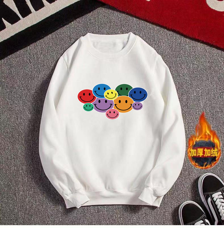 • 화이트 작은 스마일 기모 스웨트 셔츠