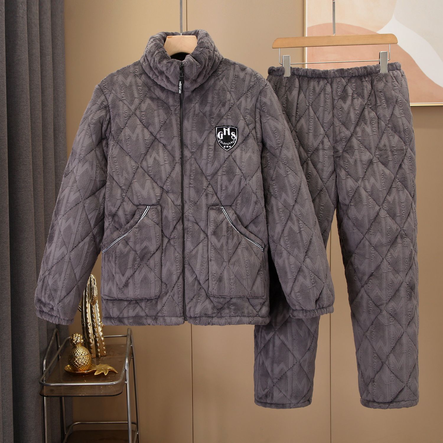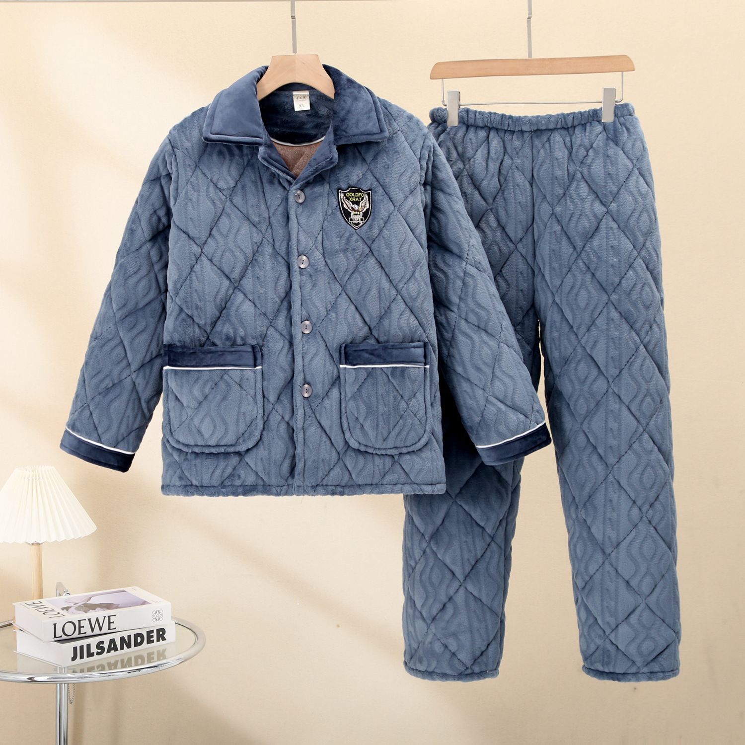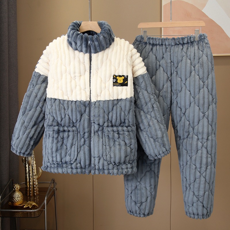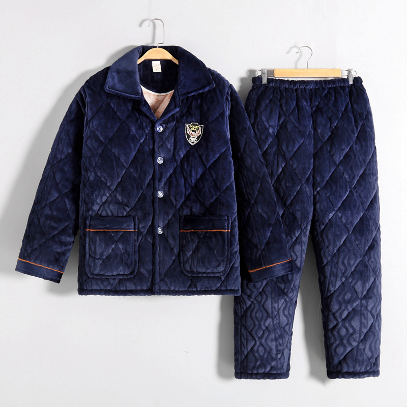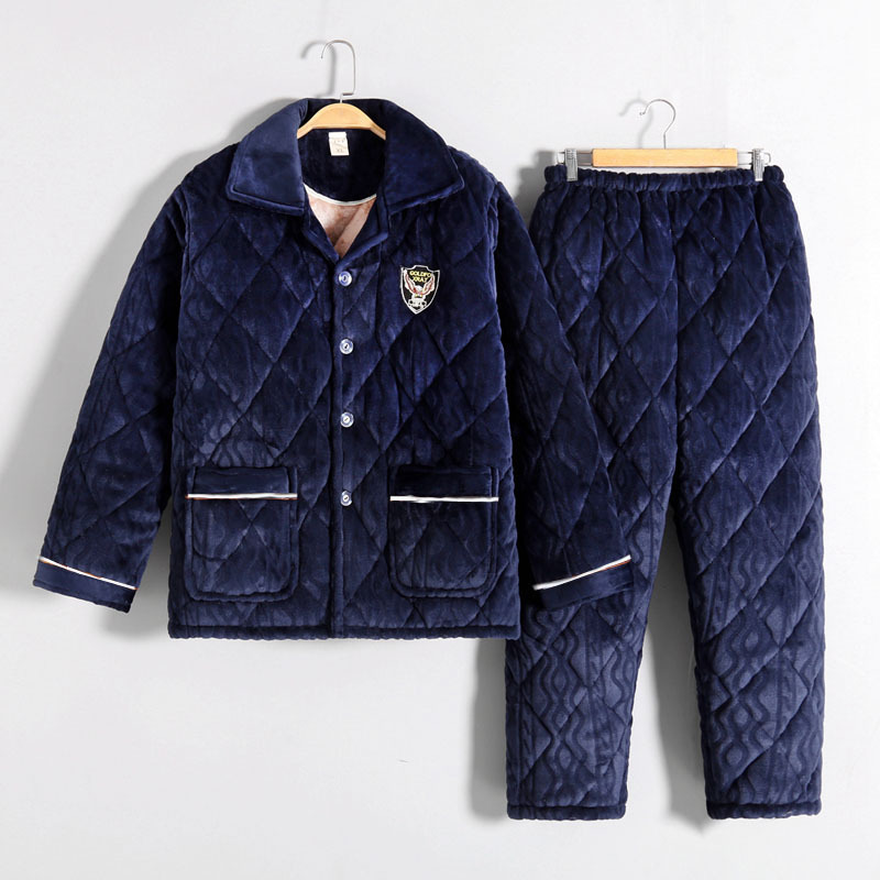 남자의 잠옷 산호 양털 가을과 겨울 3 층 면 두꺼운 따뜻한 기모 플란넬 청소년 가정 의류 세트