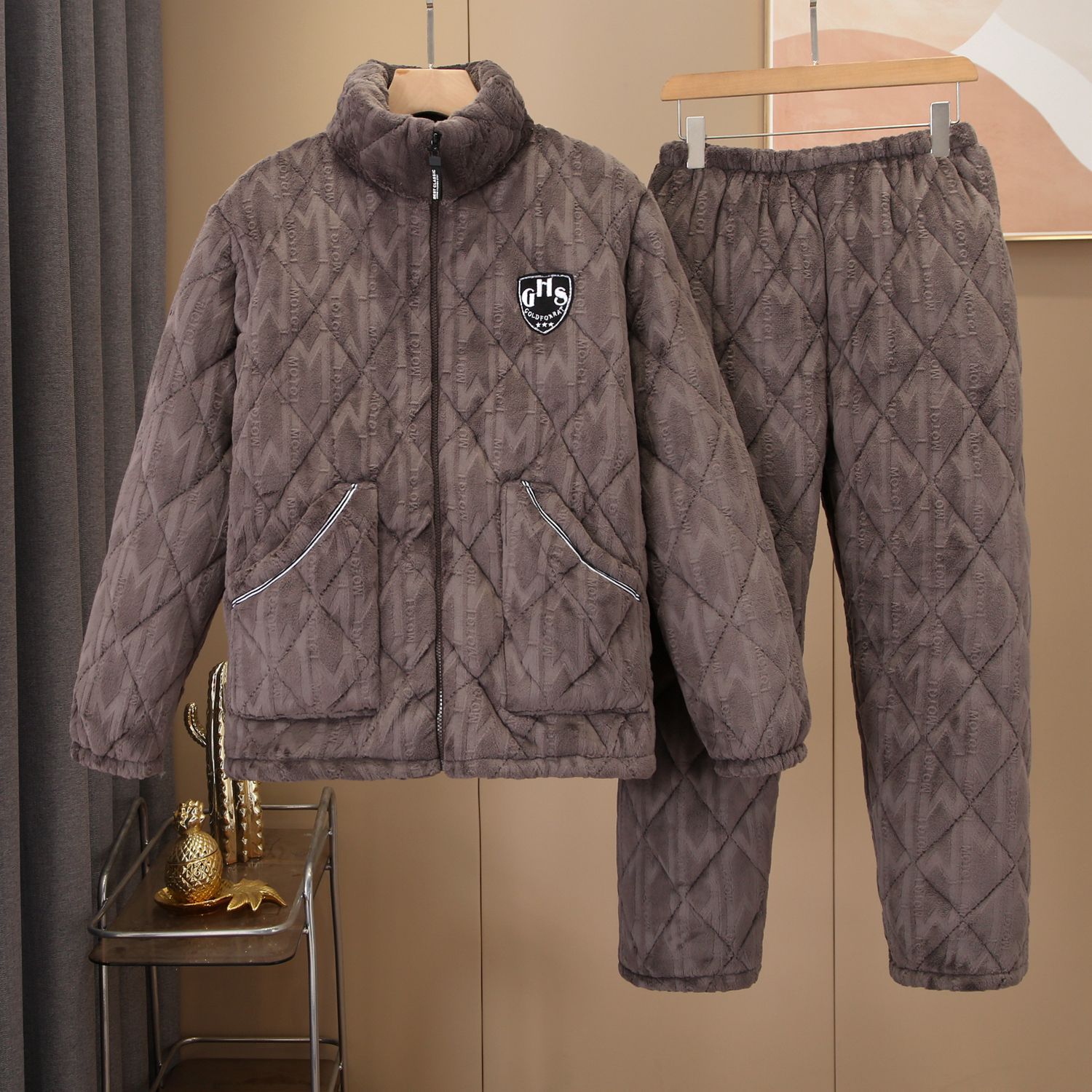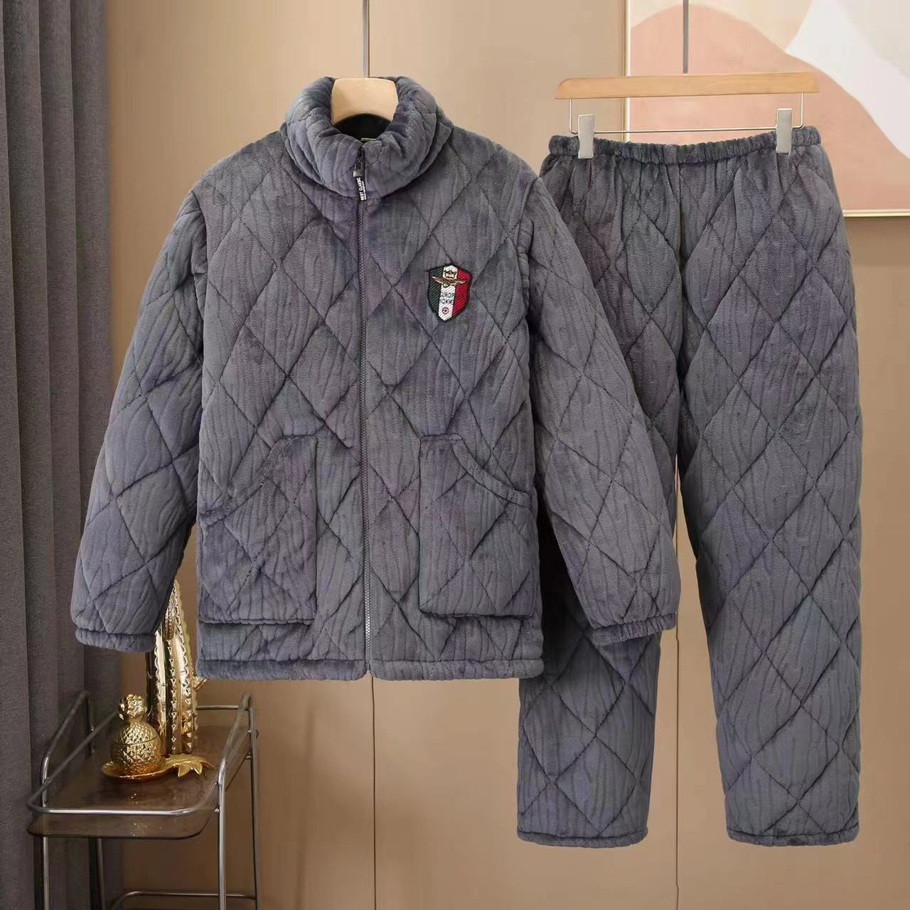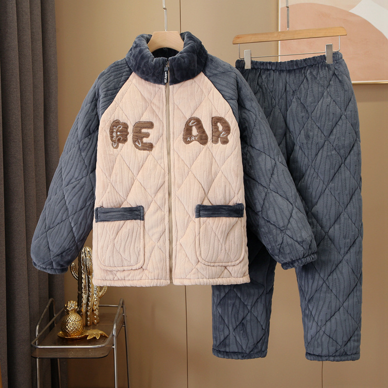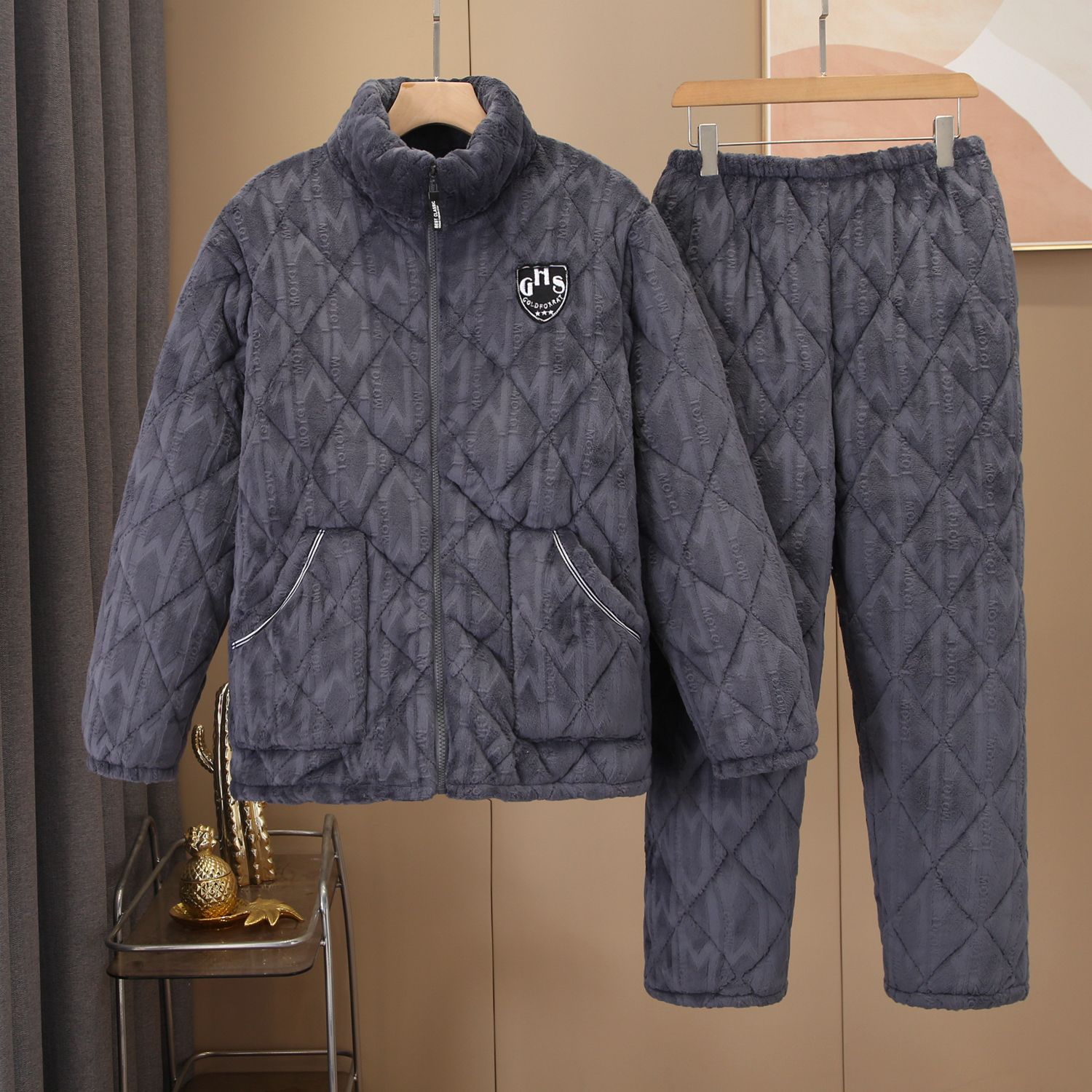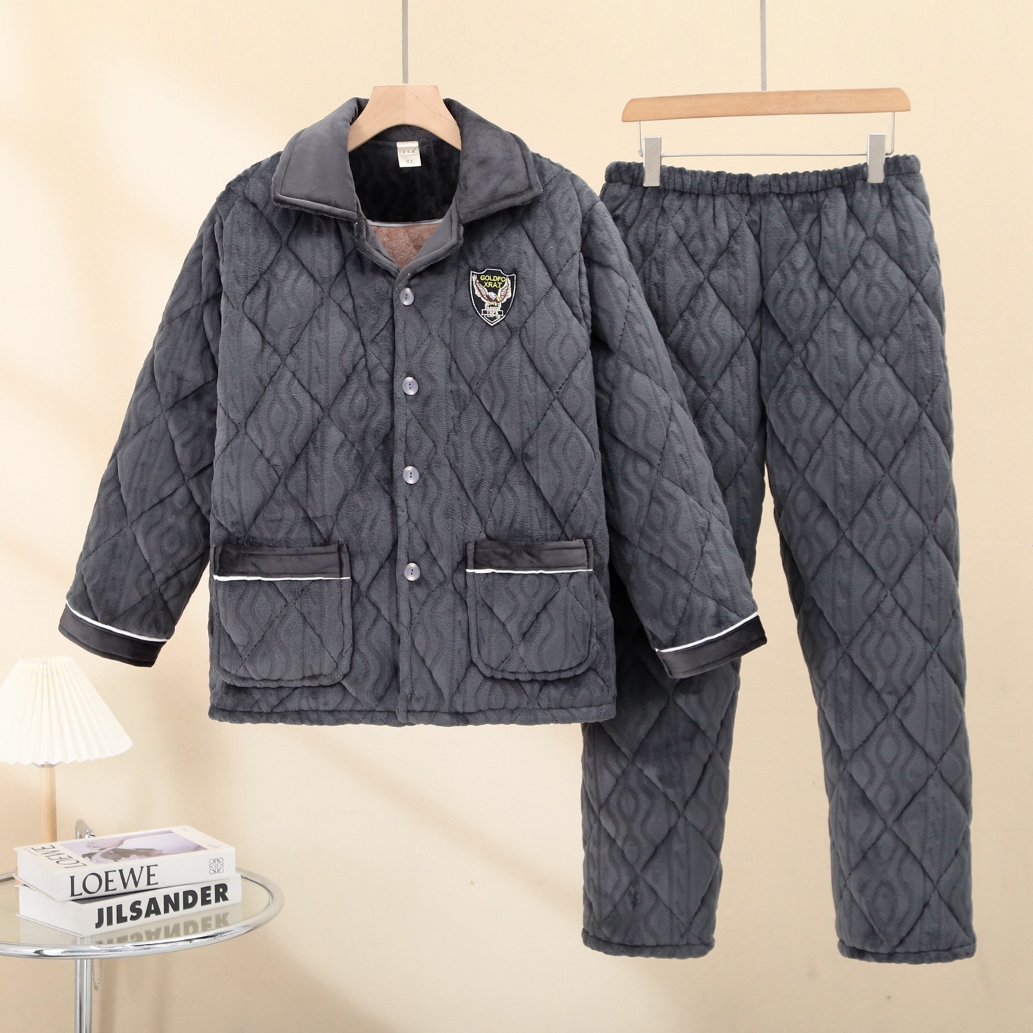 남자의 잠옷 산호 양털 가을과 겨울 3 층 면 두꺼운 따뜻한 기모 플란넬 청소년 가정 의류 세트