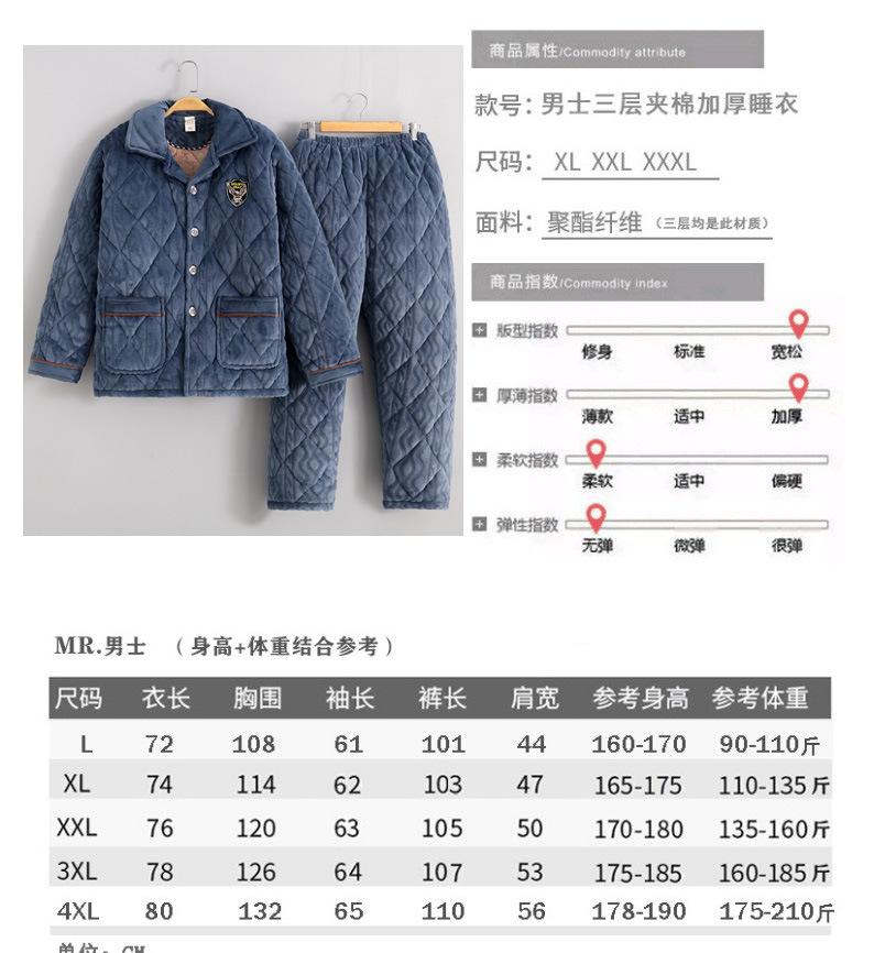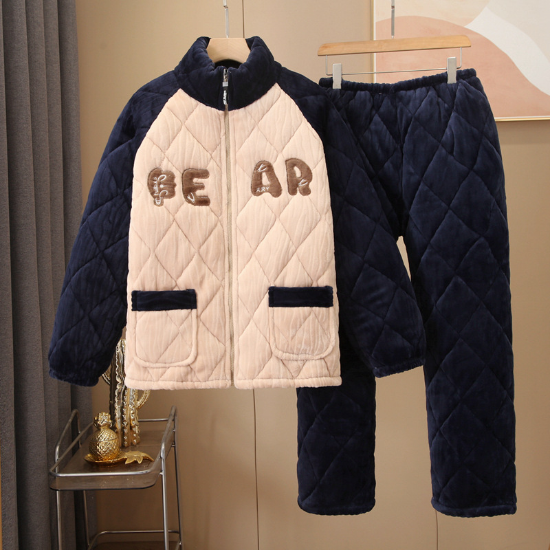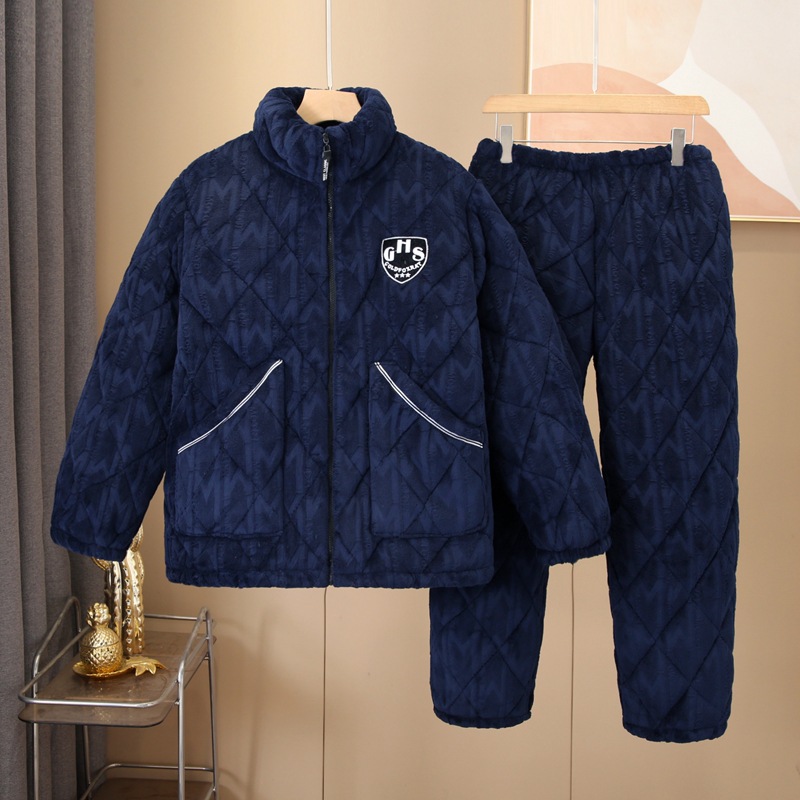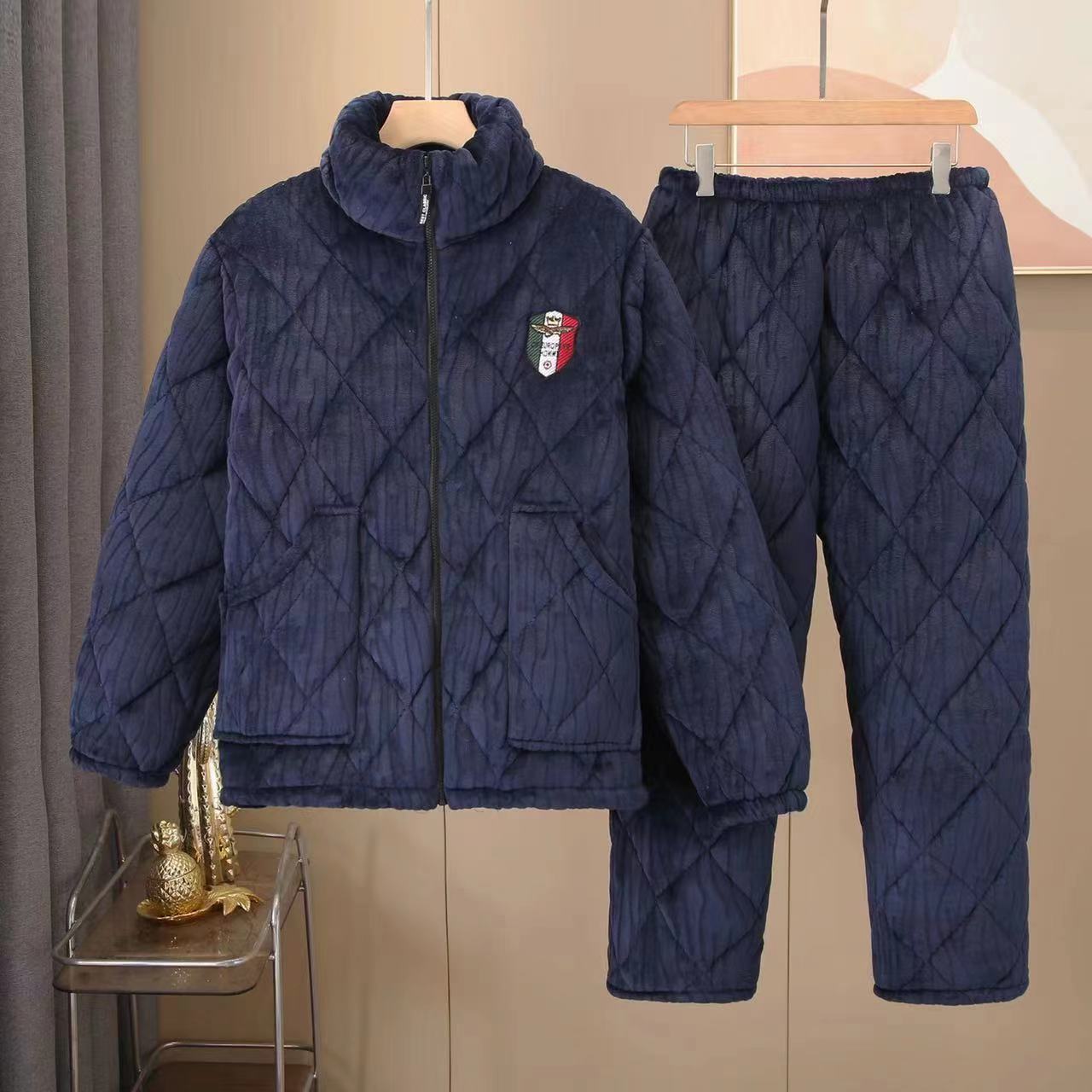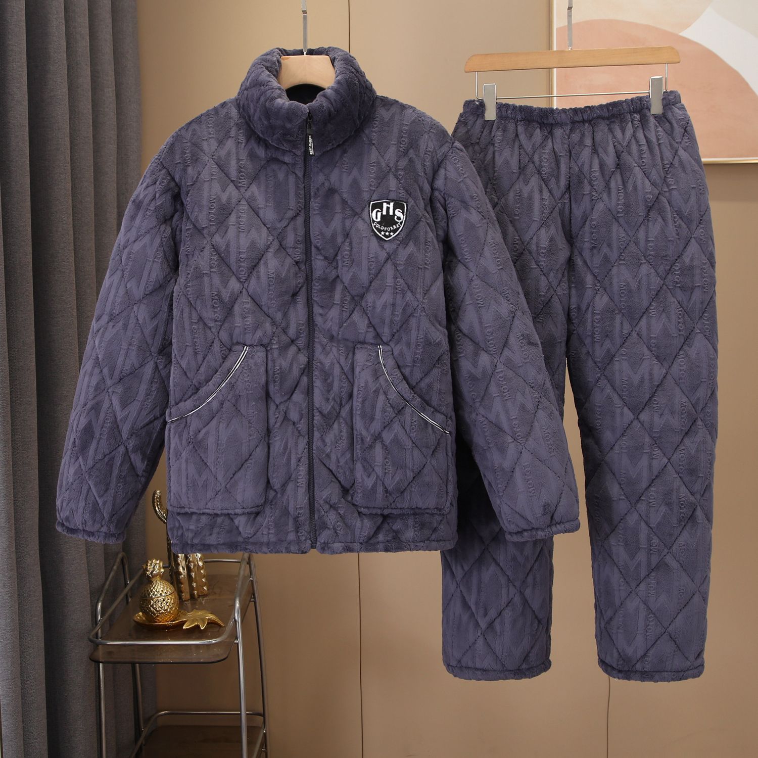 남자의 잠옷 산호 양털 가을과 겨울 3 층 면 두꺼운 따뜻한 기모 플란넬 청소년 가정 의류 세트