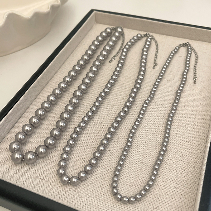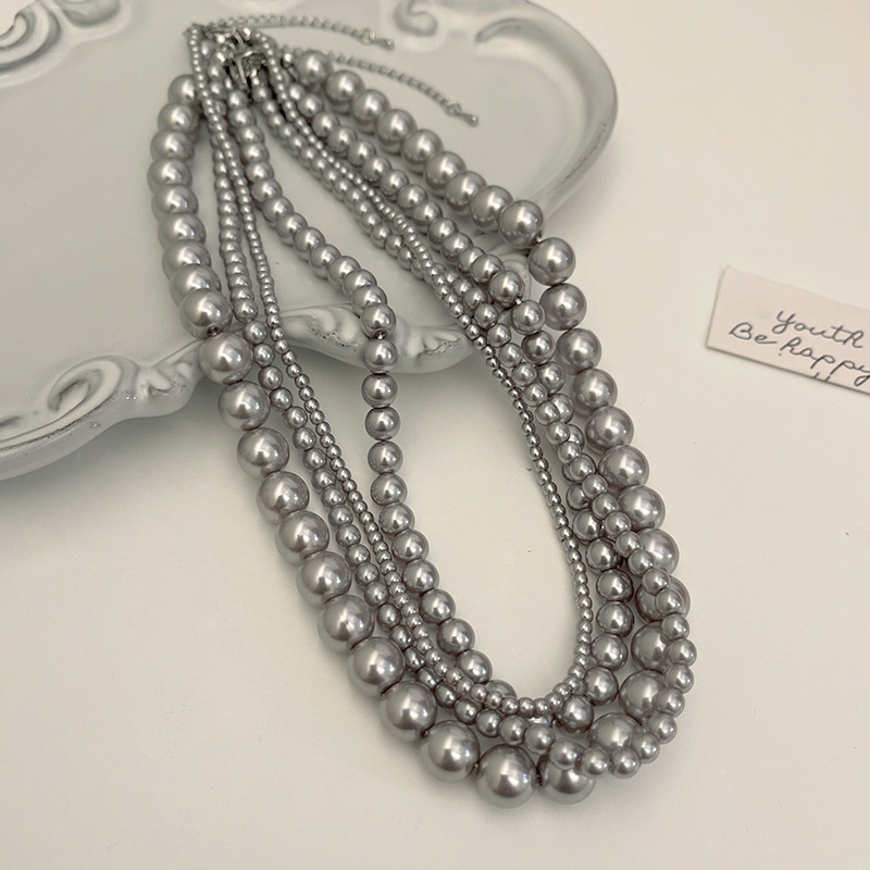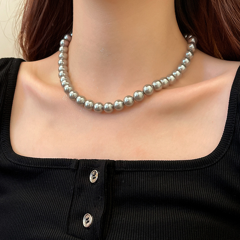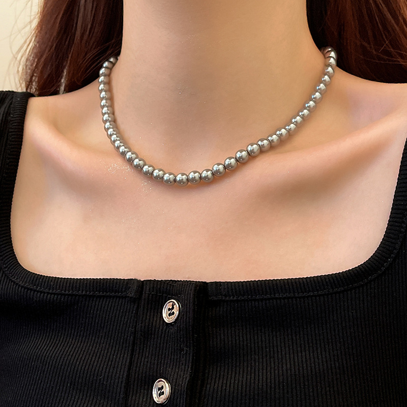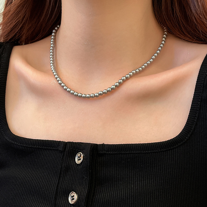새로운 도착 대마 실버 회색 진주 목걸이 여자의 빛 럭셔리 우아한 쇄골 체인 틈새 디자인 고급 스타일 스택 의류 체인스토어 가기