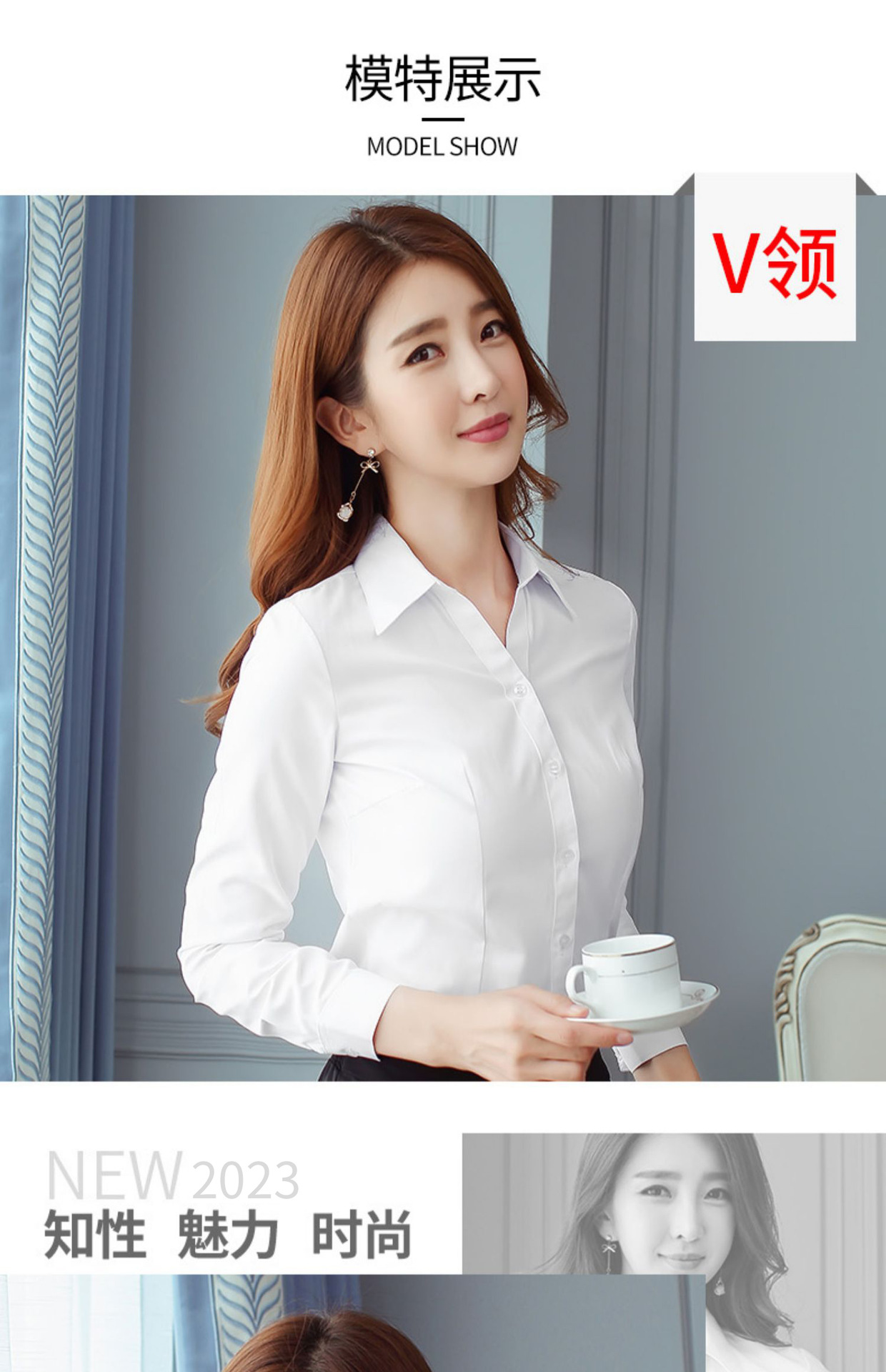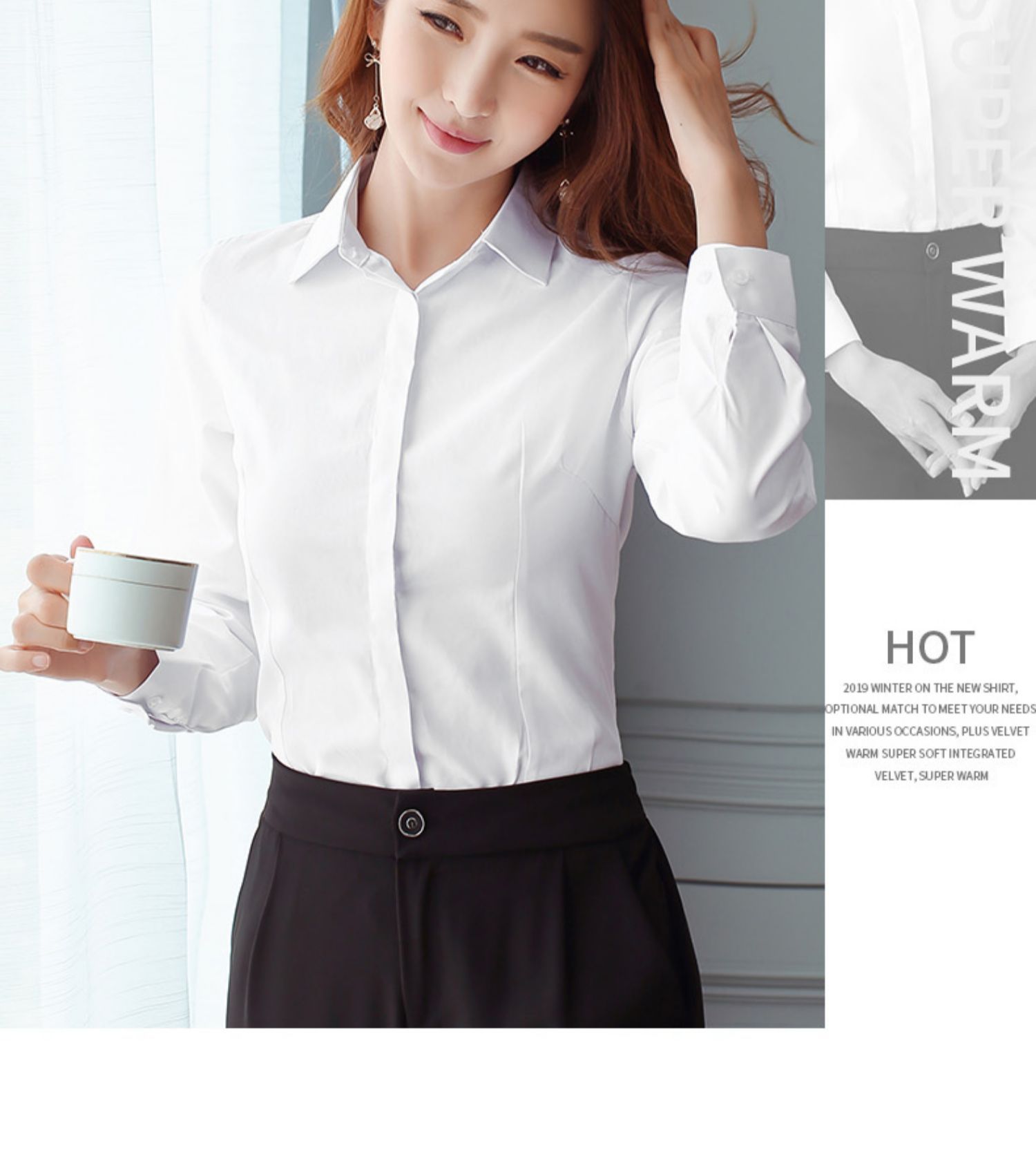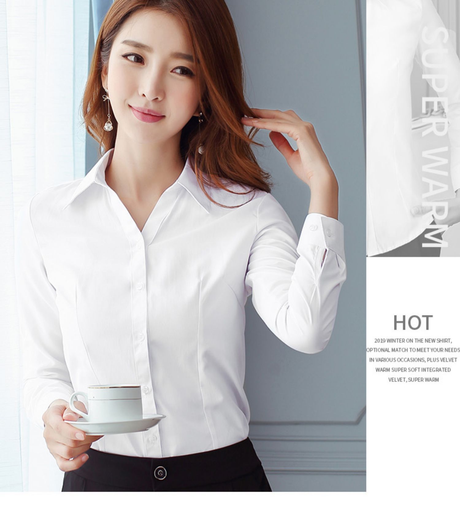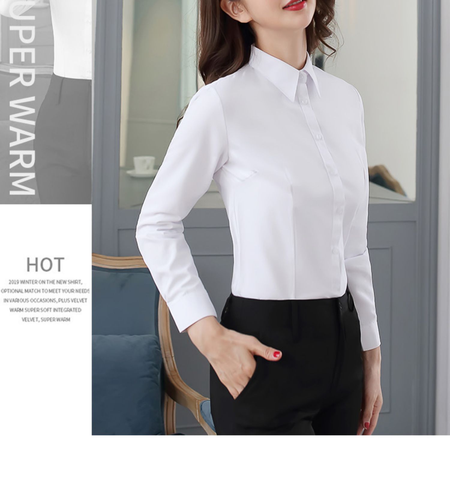 흰색 작업 셔츠 긴팔 여성용 가을 겨울 비즈니스 착용 얇은 정장 반팔 불투명 블루 셔츠 작업복스토어 가기