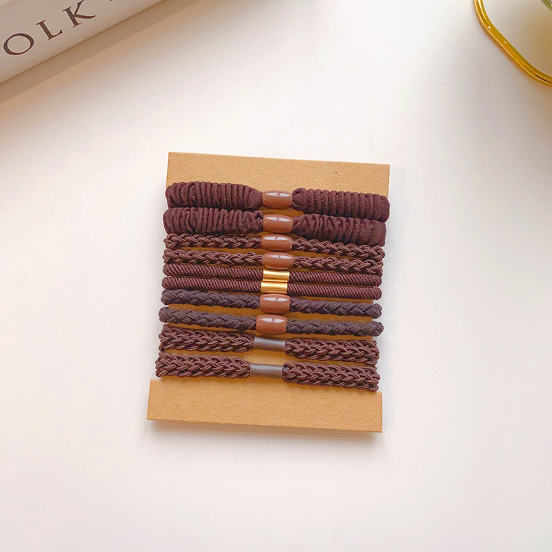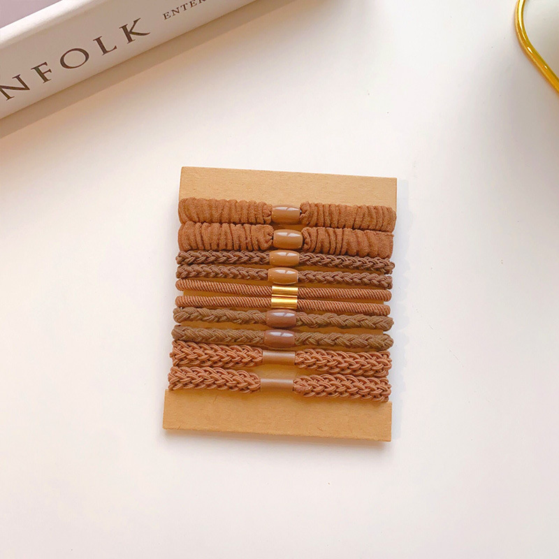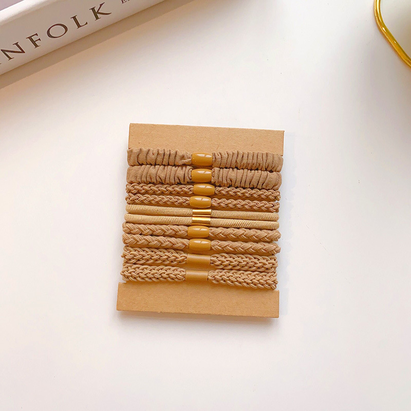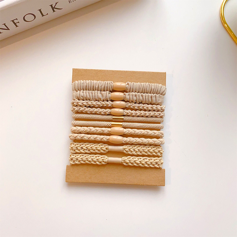 간단한 라이트 베이지 스타일 헤어 로프 세트 수제 브레이드 기본 고무 밴드 우아한 헤어 로프 헤어 로프 헤어 로프 팔찌 헤어 액세서리