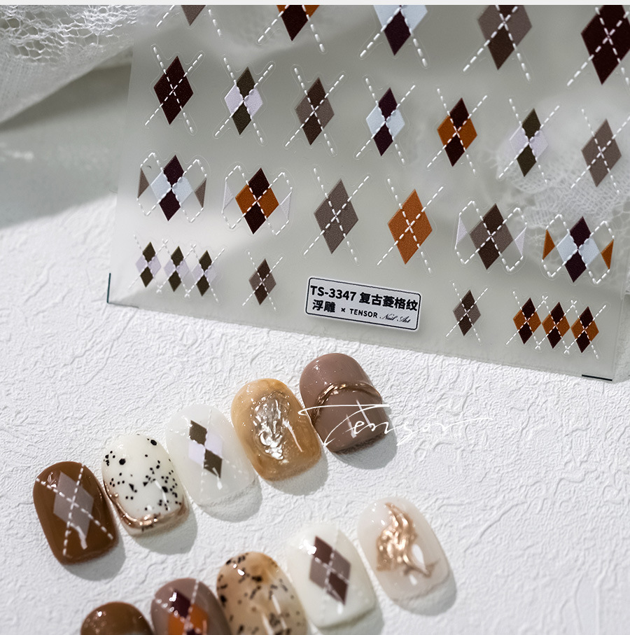 철 새로운 기술 격자 무늬 얇은 힘든 네일 스티커 젖빛 얇은 접착 네일 스티커 TS-3346 레트로 다이아몬드 격자 무늬