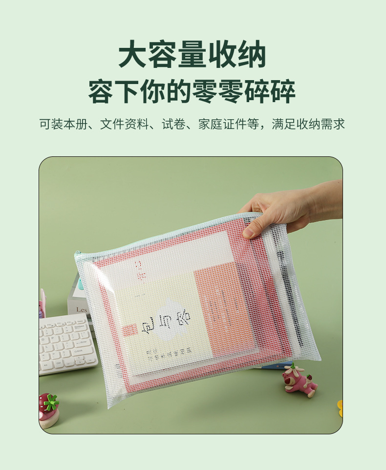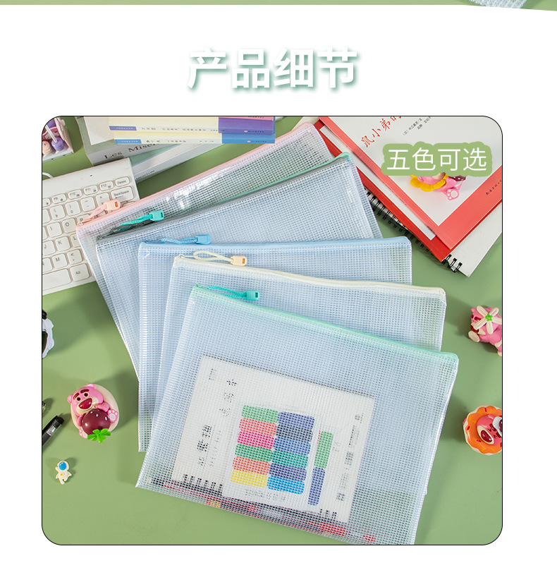 Morandi 파일 가방 두꺼운 투명 메쉬 가방 A4 파일 가방 정보 가방 방수 학생 시험지 보관 가방스토어 가기