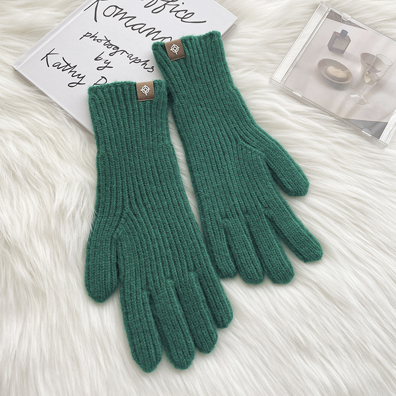 한국식 새로운 겨울 다섯 손가락 장갑 손가락 노출 터치 스크린 사이클링 따뜻한 방한 단색 울 니트 장갑