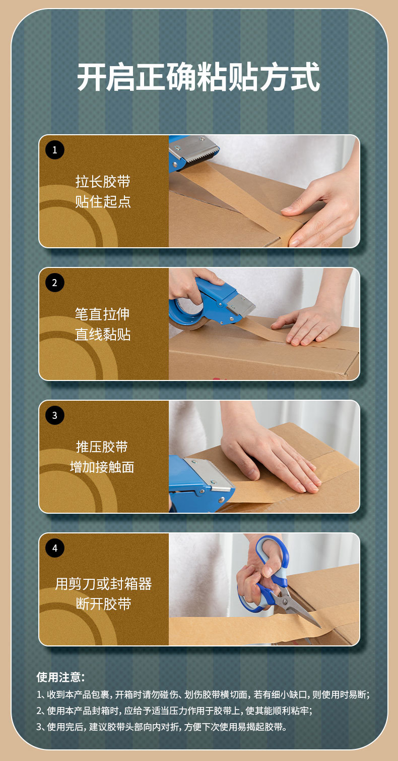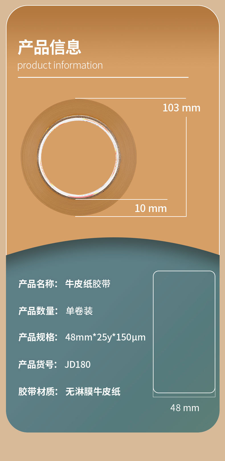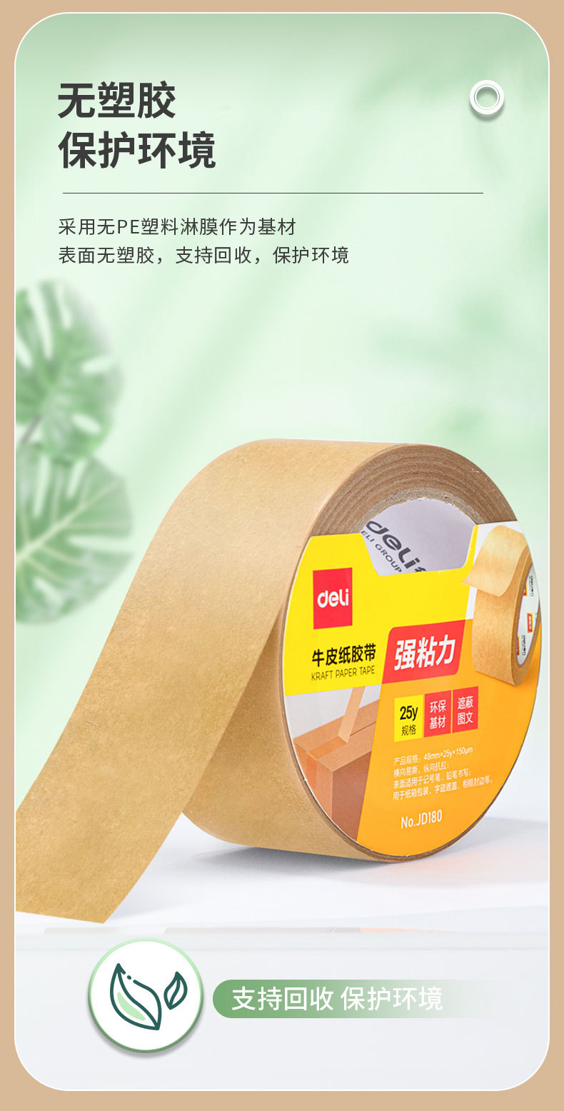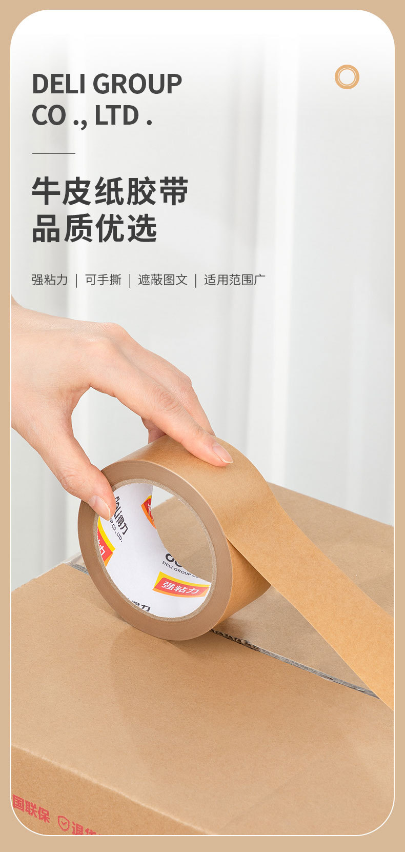 델리 JD180 크래프트 종이 테이프 고점도 강한 손 눈물 물 프리 자체 접착 크래프트 종이 테이프스토어 가기