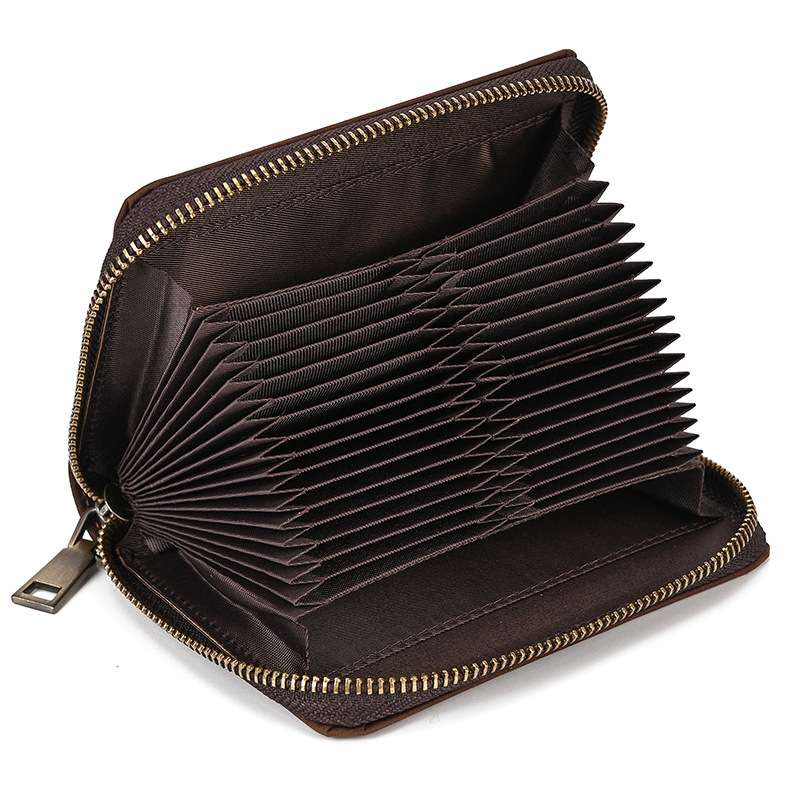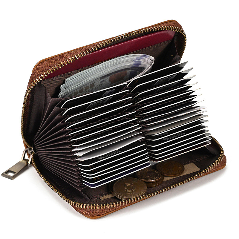 정품 가죽 대용량 카드 케이스 32 카드 도난 방지 브러시 RFID 카드 케이스 지퍼 카드 홀더 국경 폭발 지갑스토어 가기