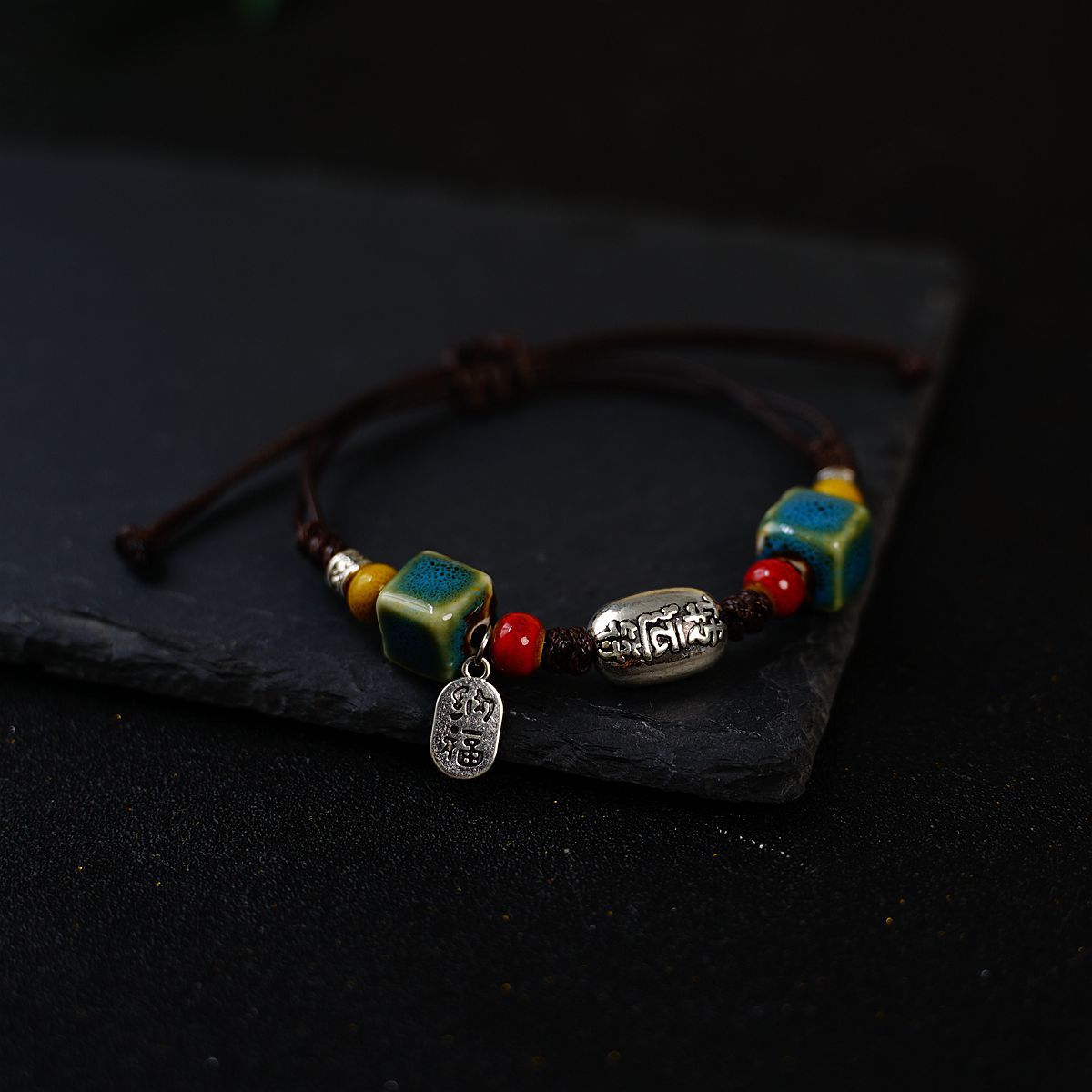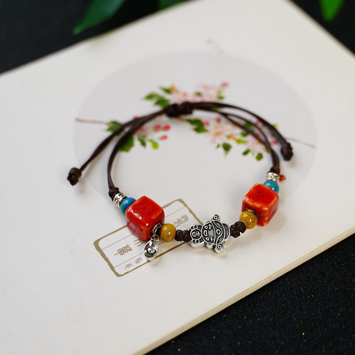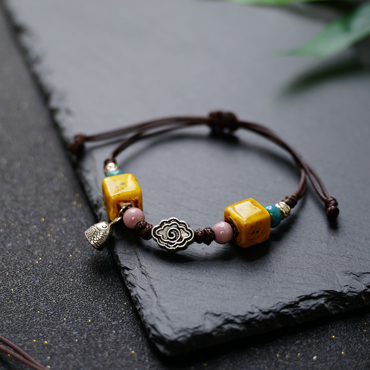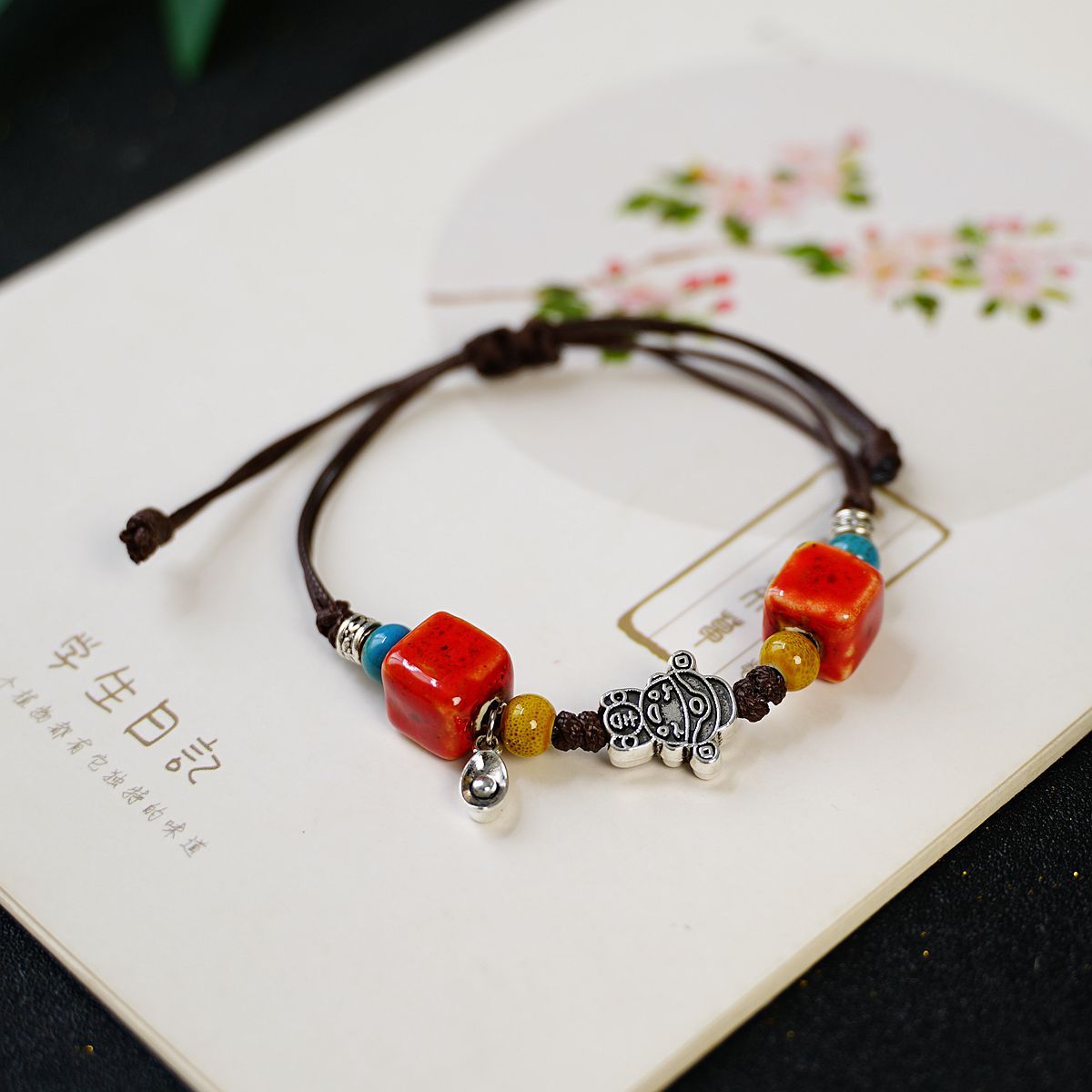 새로운 중국 스타일 핸드 로프 예술적 새로운 중국 스타일 신선한 세라믹 팔찌 복고풍 민족 스타일 국가 스타일 여성 학생 손 끈