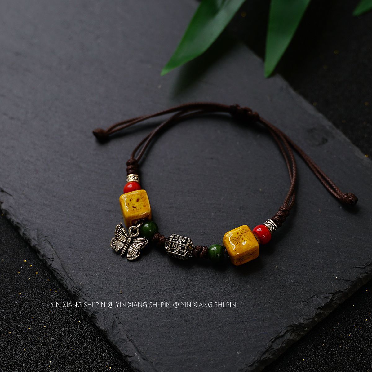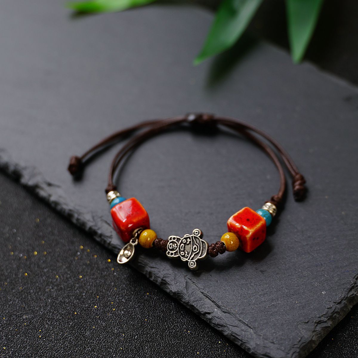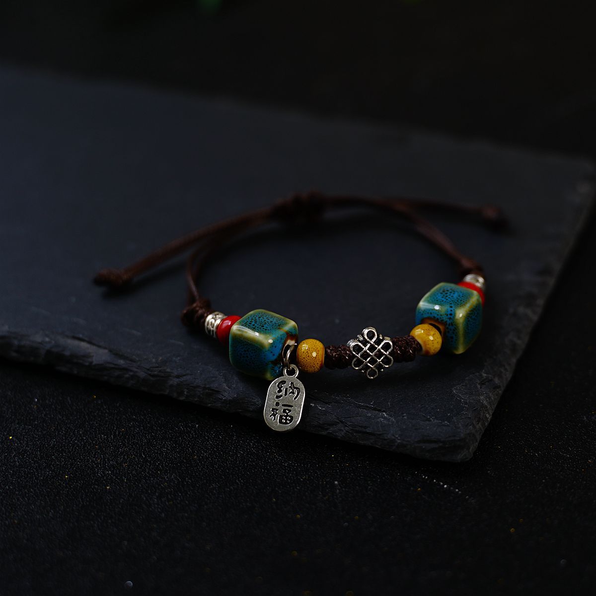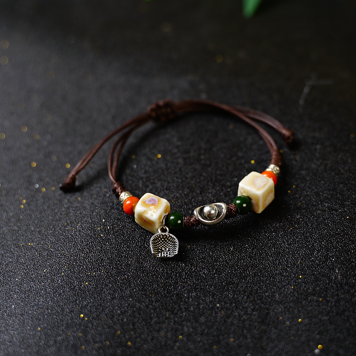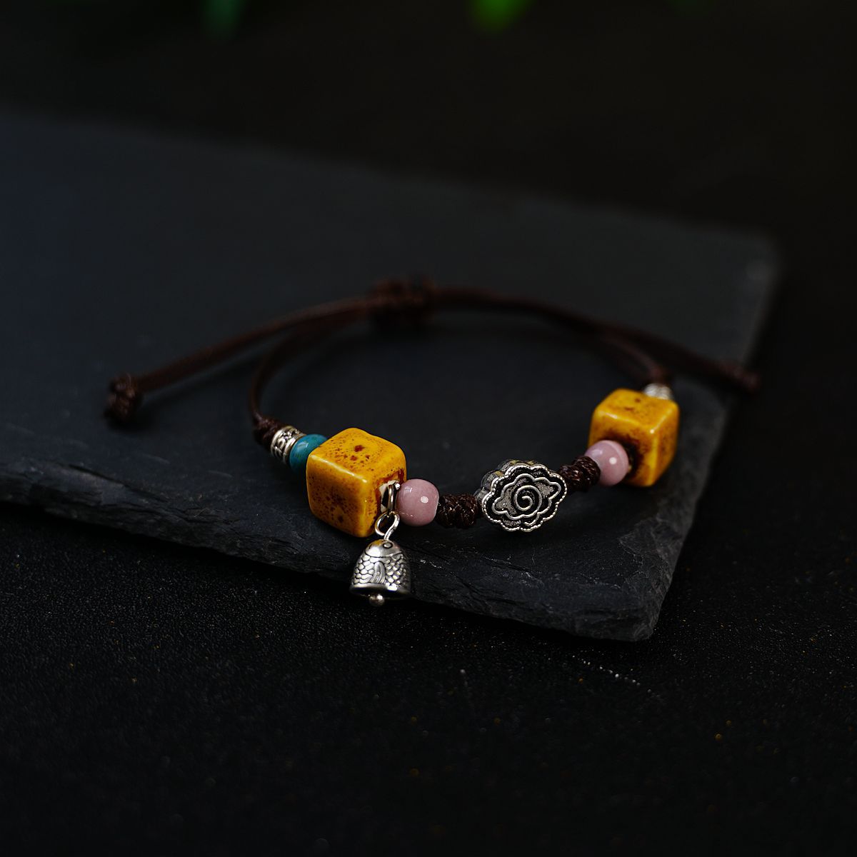 새로운 중국 스타일 핸드 로프 예술적 새로운 중국 스타일 신선한 세라믹 팔찌 복고풍 민족 스타일 국가 스타일 여성 학생 손 끈