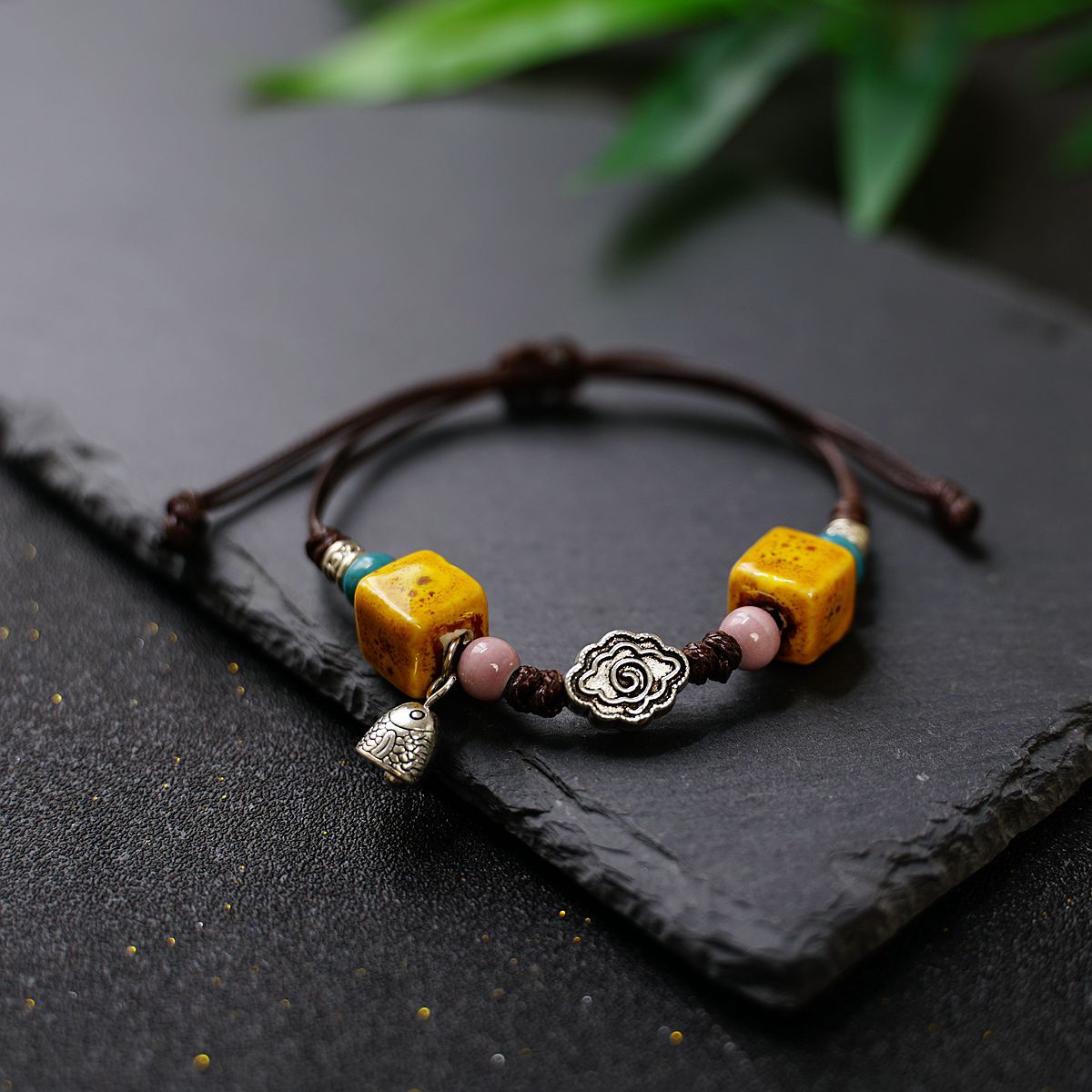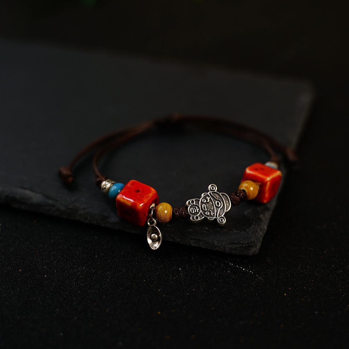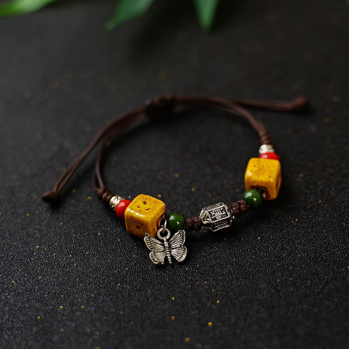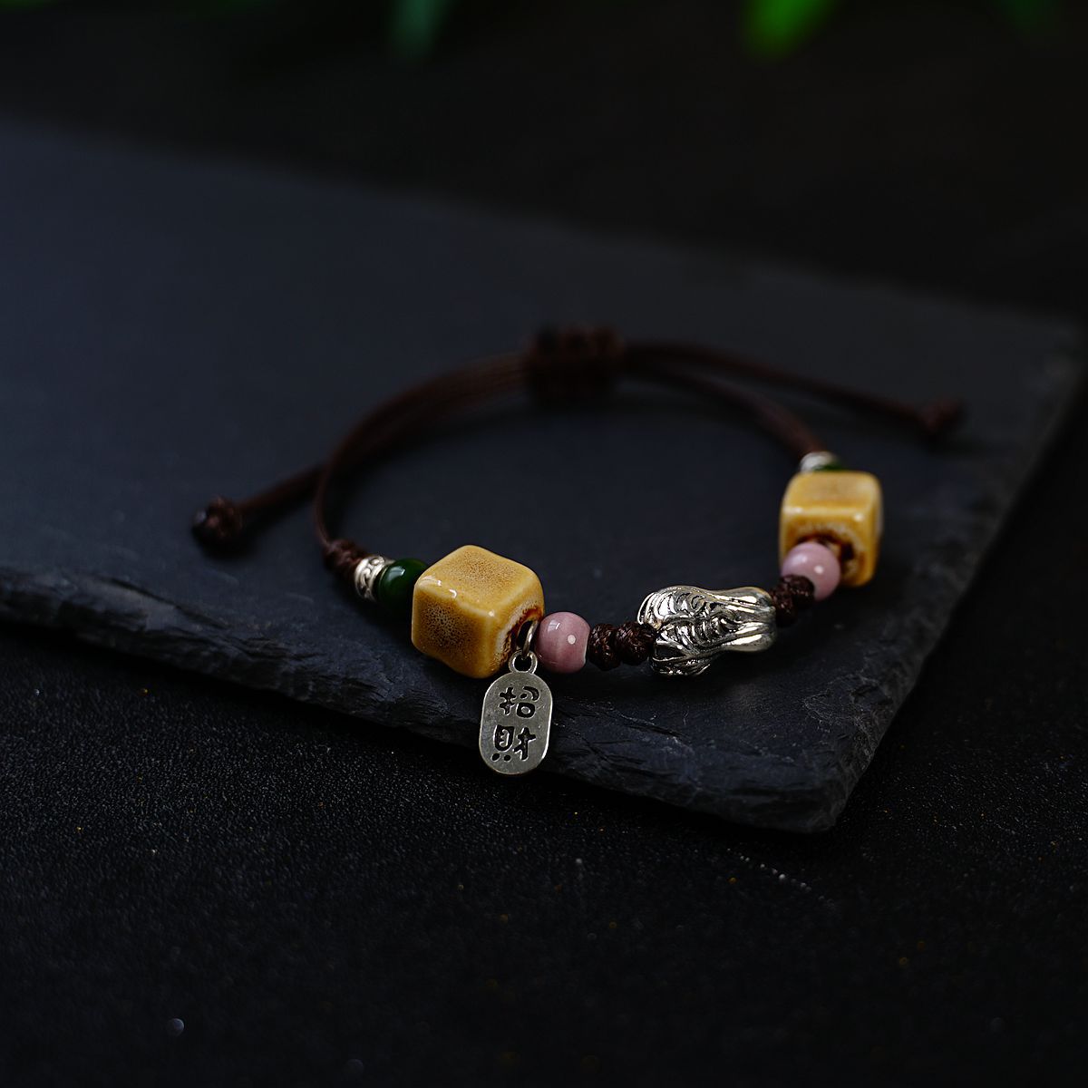 새로운 중국 스타일 핸드 로프 예술적 새로운 중국 스타일 신선한 세라믹 팔찌 복고풍 민족 스타일 국가 스타일 여성 학생 손 끈