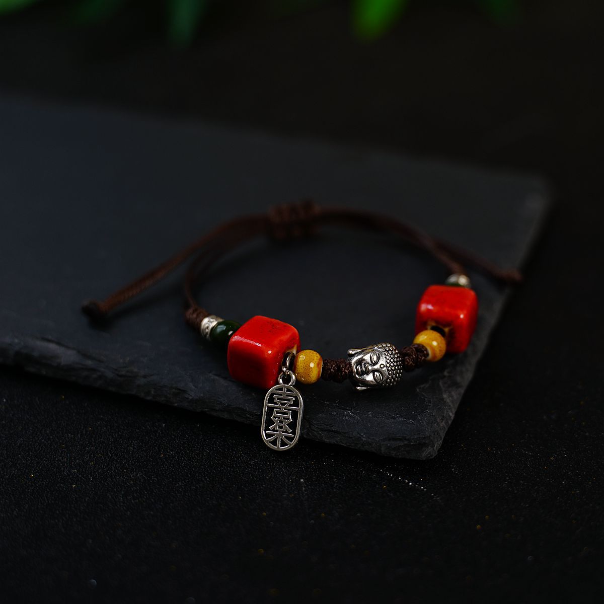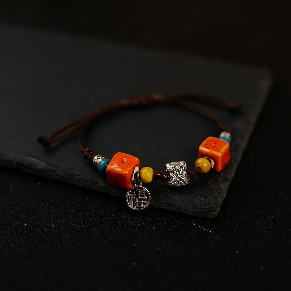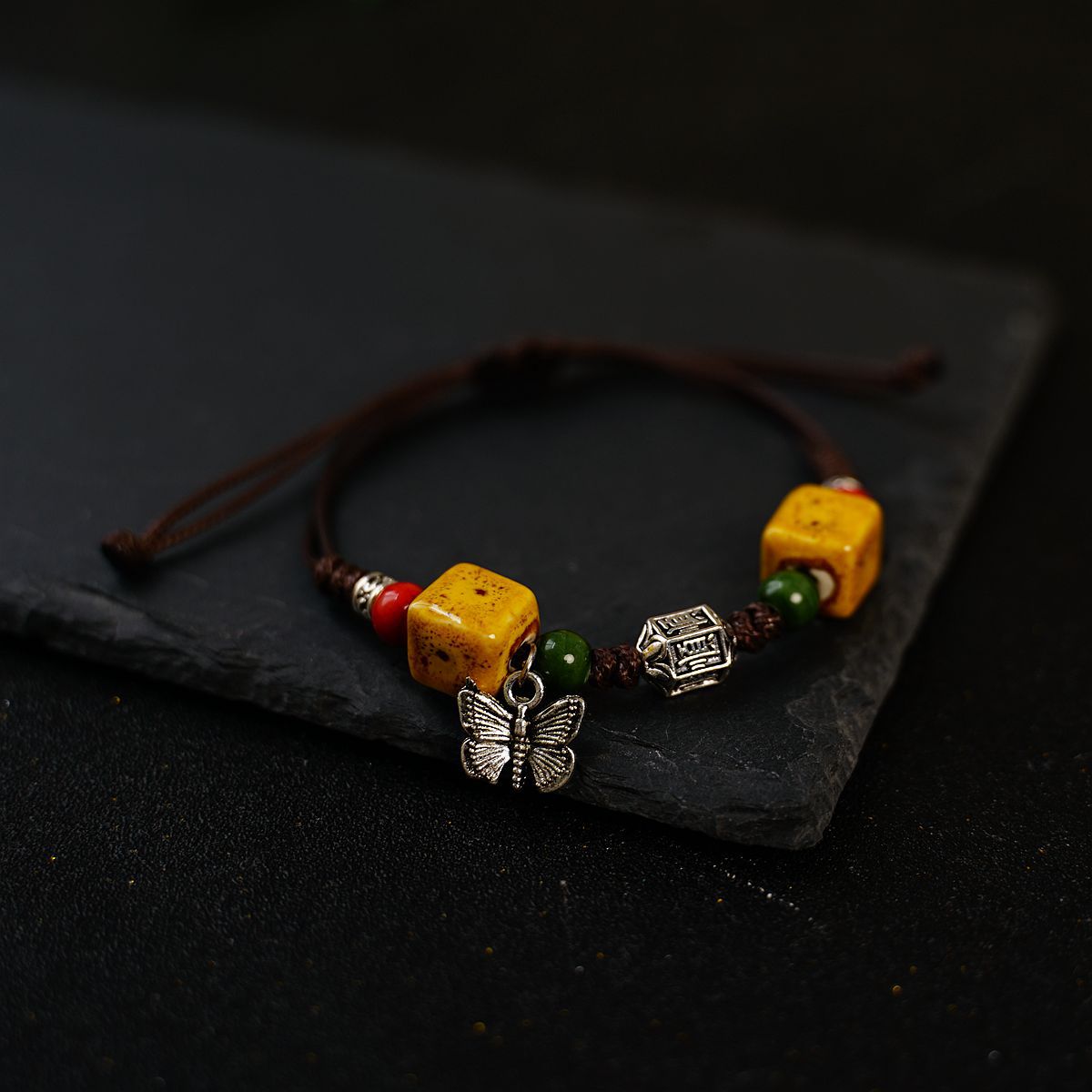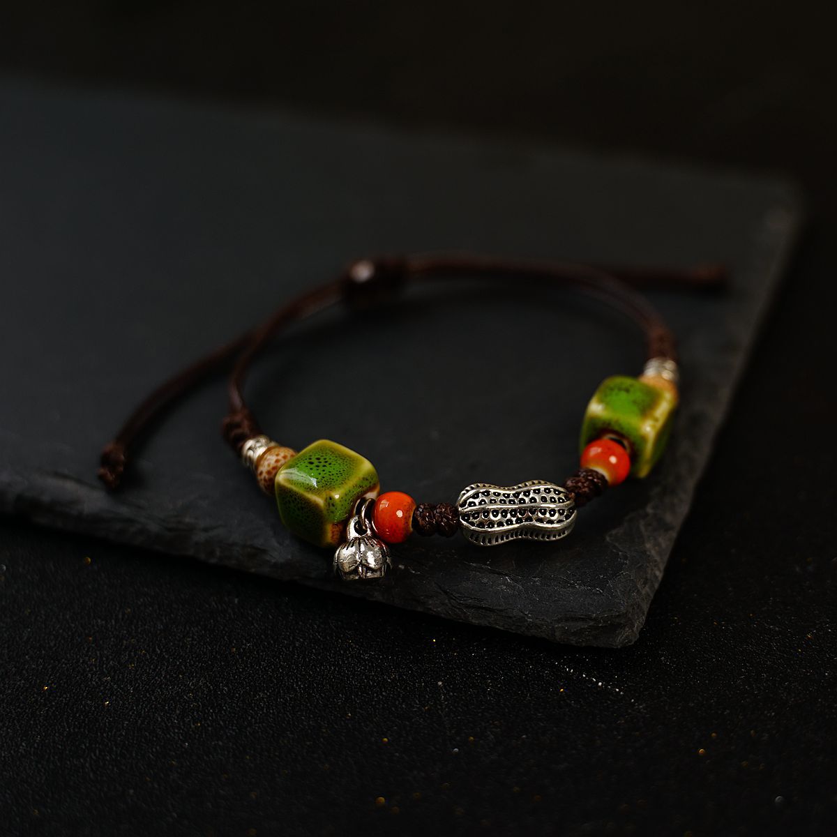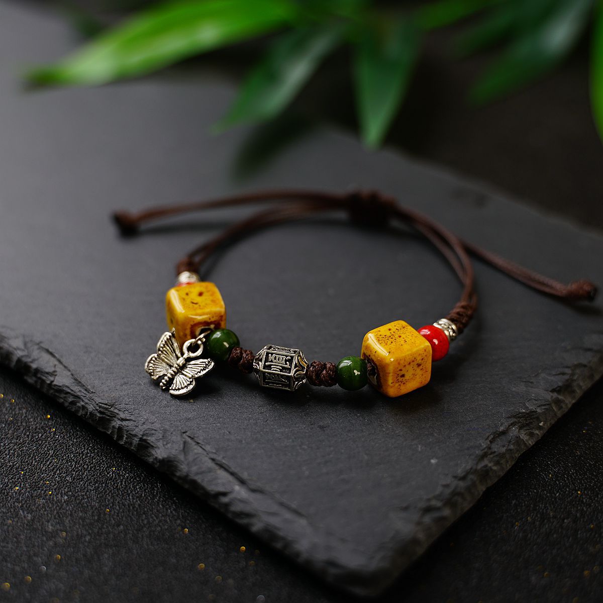 새로운 중국 스타일 핸드 로프 예술적 새로운 중국 스타일 신선한 세라믹 팔찌 복고풍 민족 스타일 국가 스타일 여성 학생 손 끈