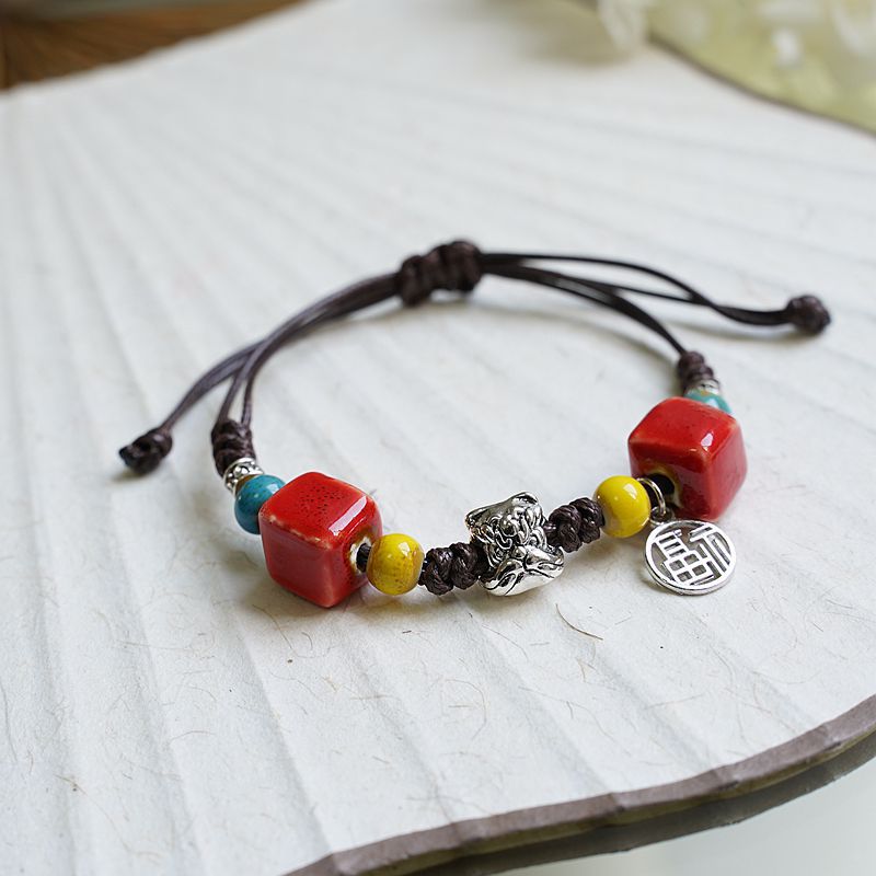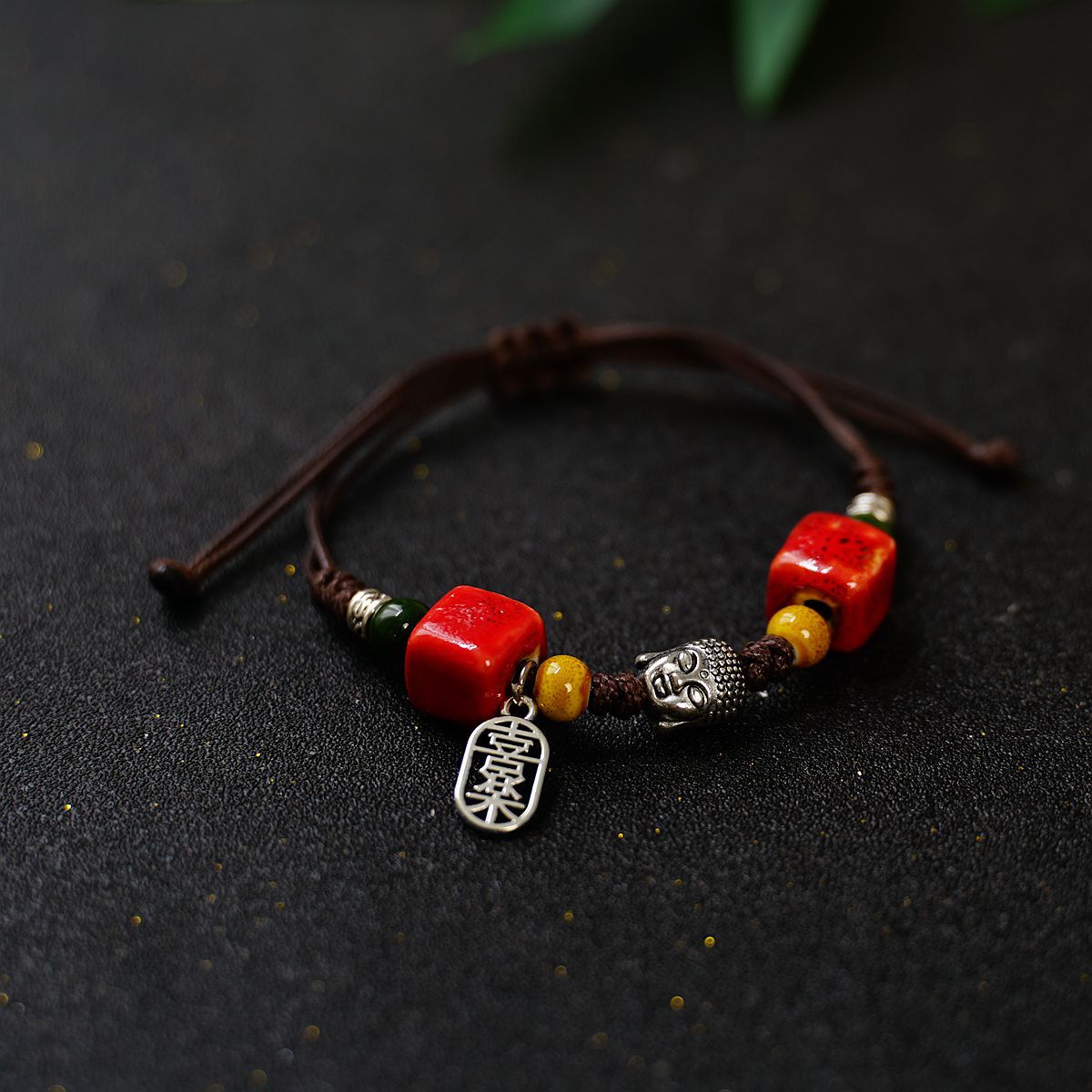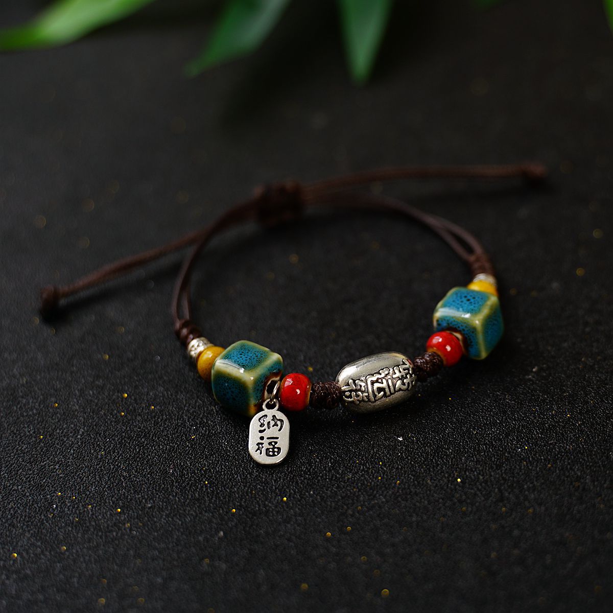 새로운 중국 스타일 핸드 로프 예술적 새로운 중국 스타일 신선한 세라믹 팔찌 복고풍 민족 스타일 국가 스타일 여성 학생 손 끈스토어 가기