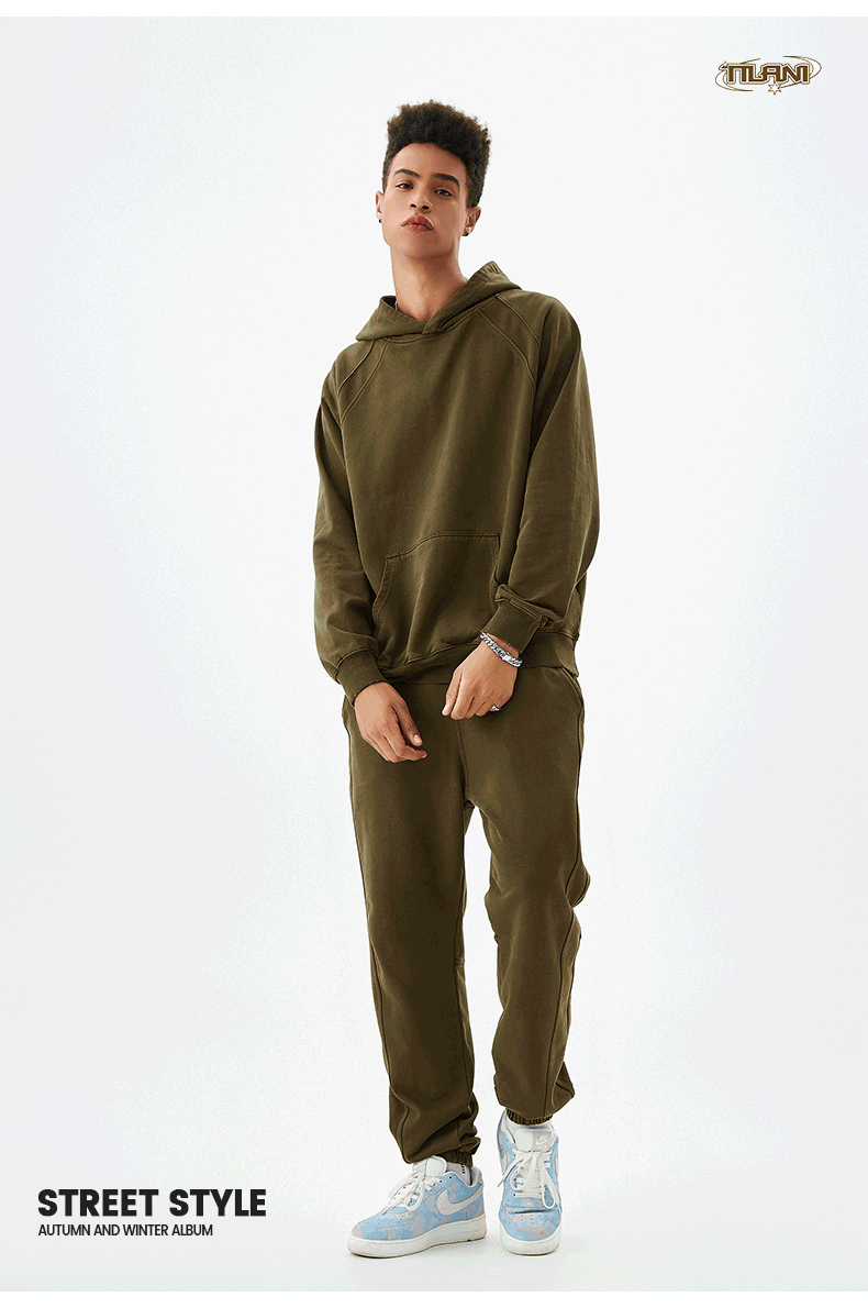TILANI 패션 브랜드 남성용 420g 테리 코튼 헤비 워시 올드 솔리드 컬러 스웨터 아메리칸 바틱 남성 탑스토어 가기