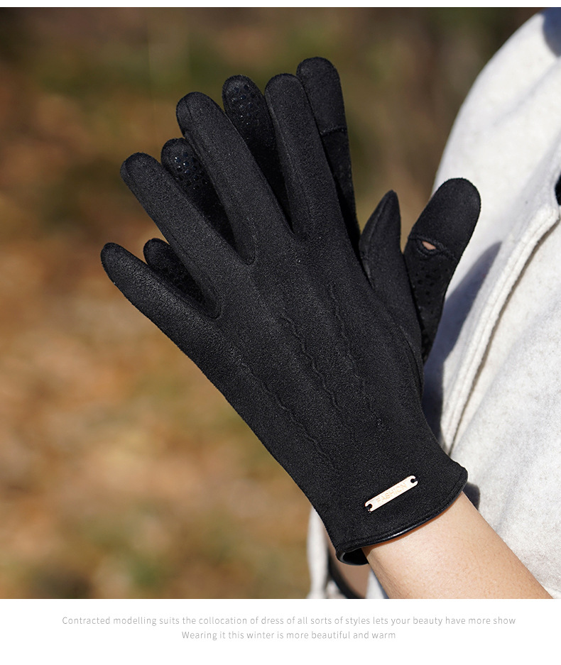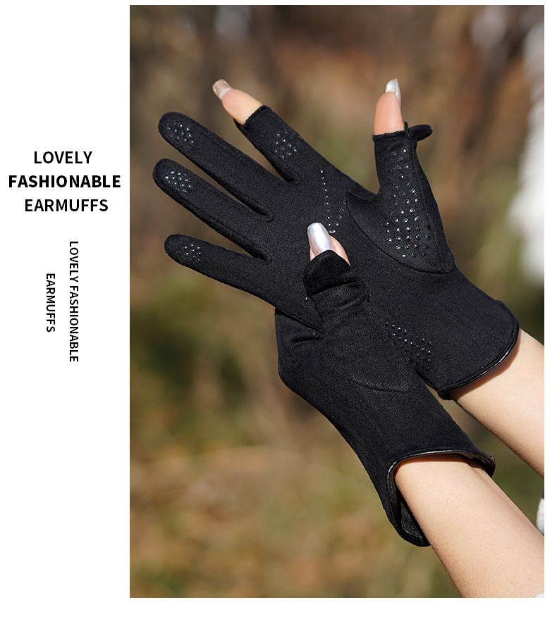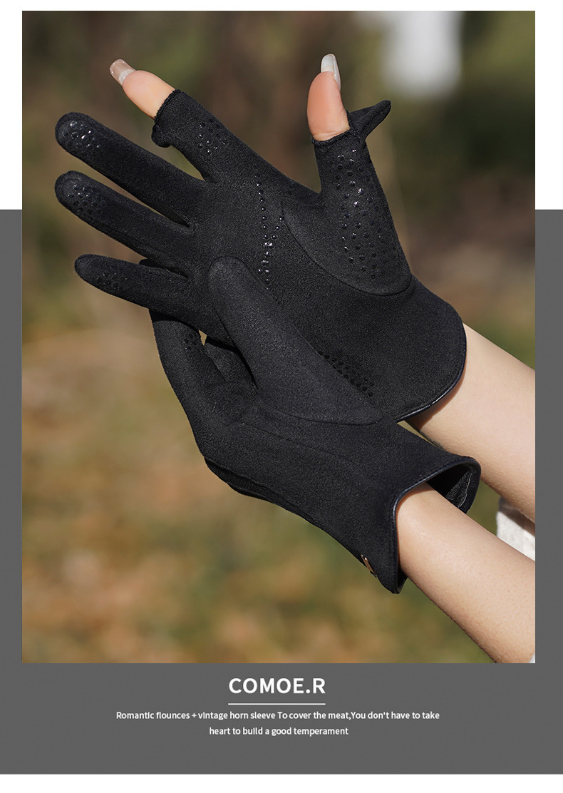 여성용 장갑 가을 겨울용 손가락 노출형 터치스크린 방한 방풍 보온 플러스 벨벳 두꺼운 자전거 타기 운전용 미끄럼 방지 독일산 벨벳