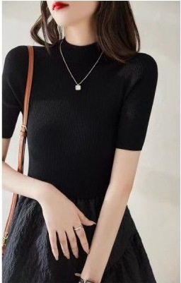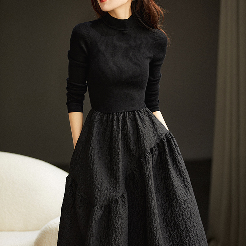 가을과 겨울 2023 새로운 질감 소재 맞춤법 니트 가을과 겨울 긴팔 작은 블랙 스커트 슬리밍 울 투투 스커트 원피스