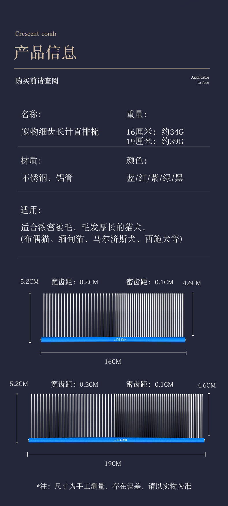 Hartley 고양이 빗 떠 다니는 머리 애완 동물 고양이 행 빗 긴 머리 고양이 빗 특별한 아름다움 빗 개 스트레이트 빗