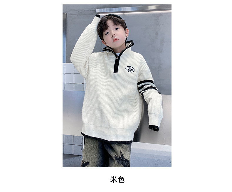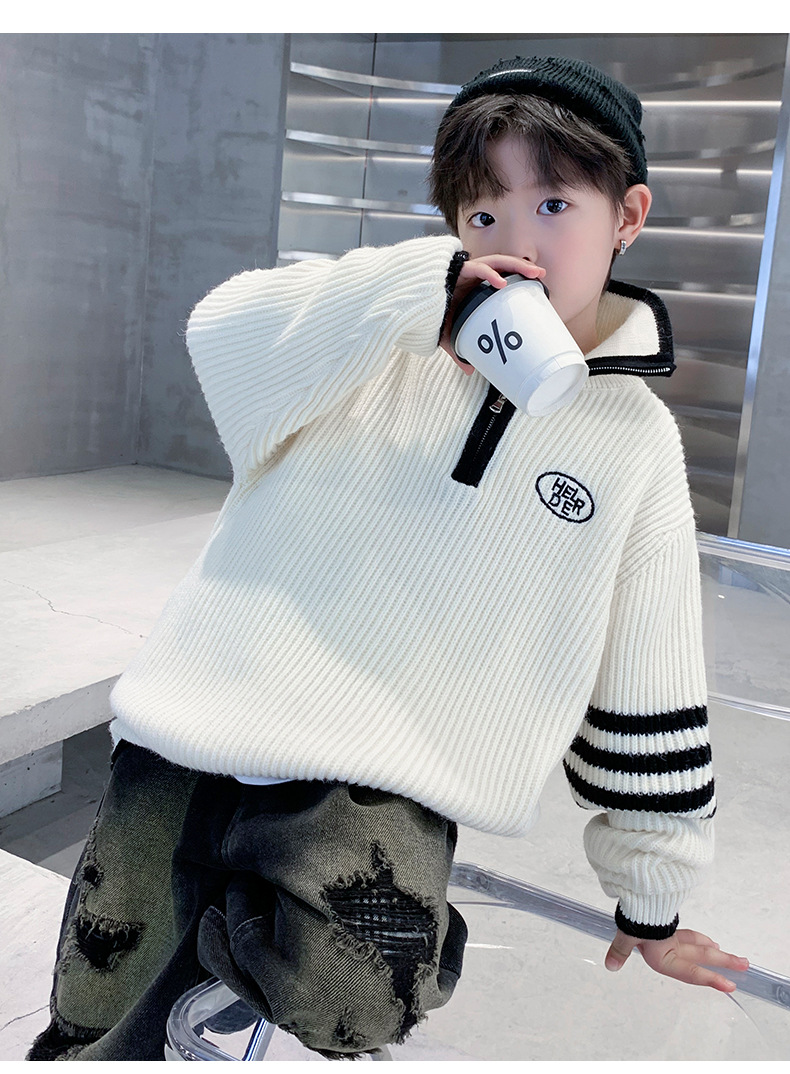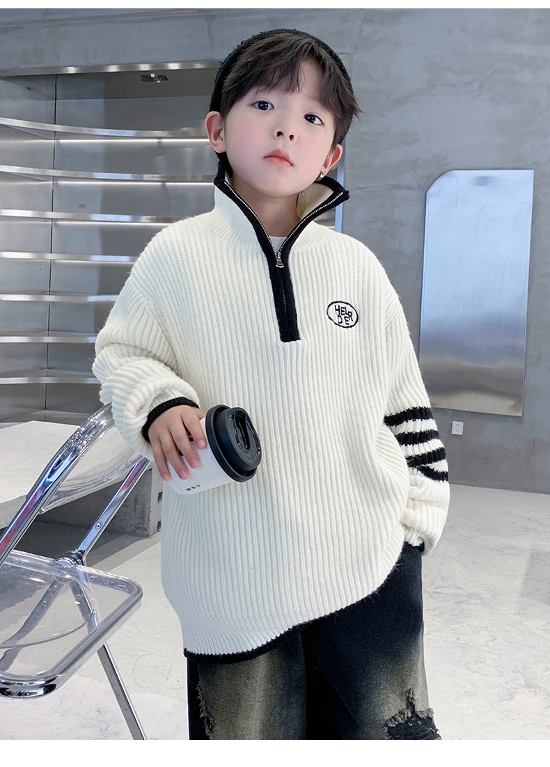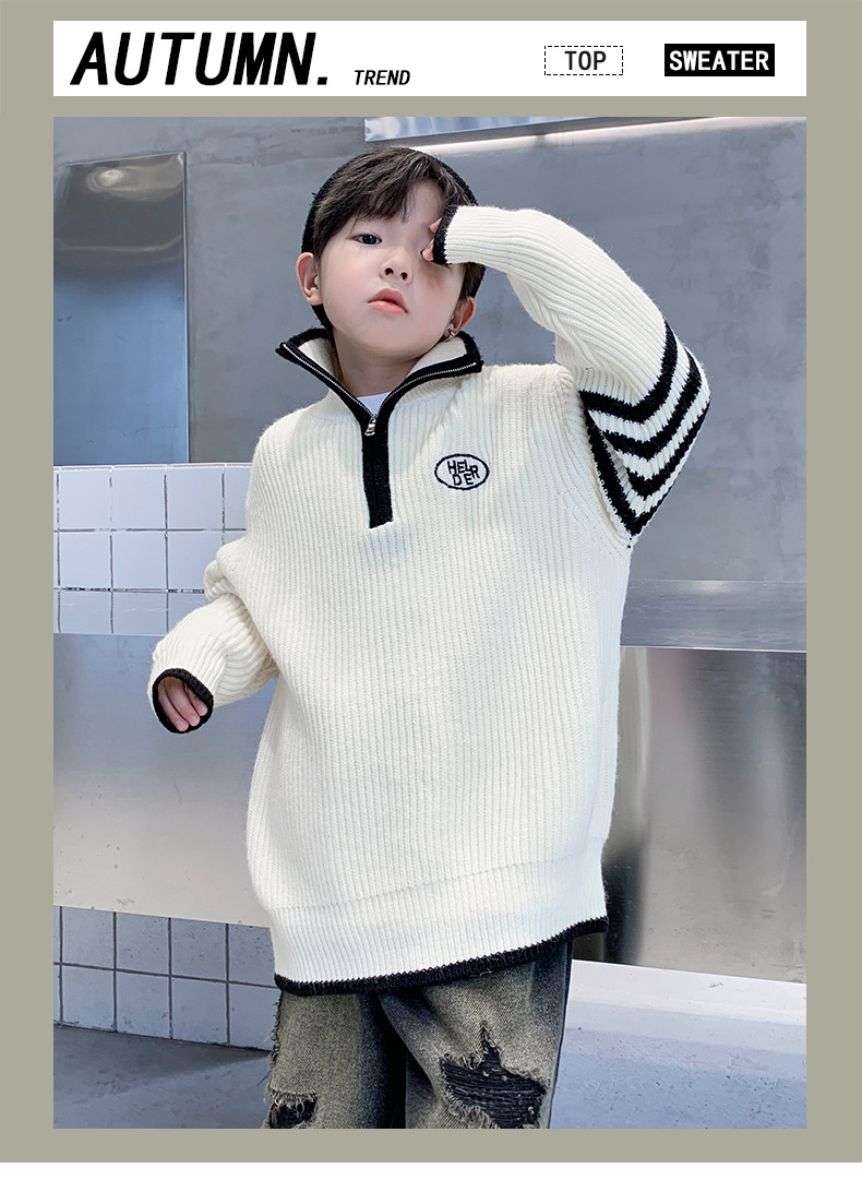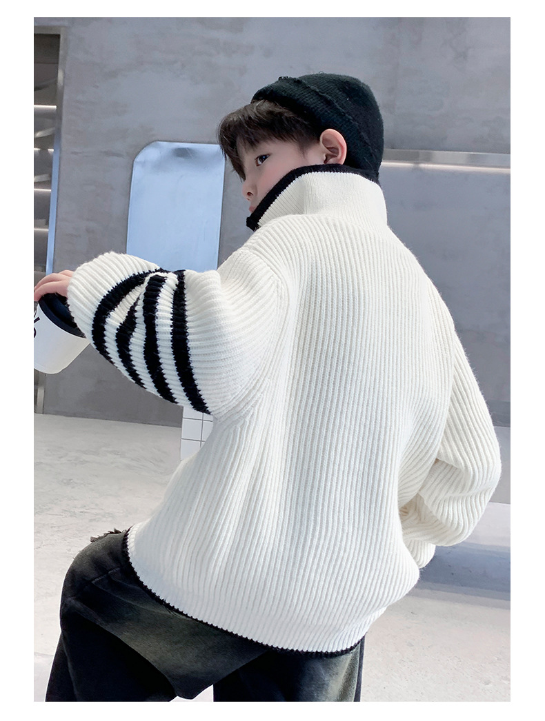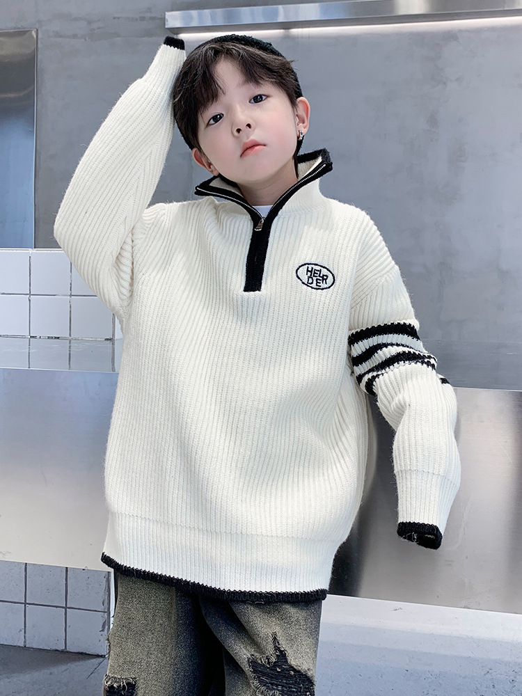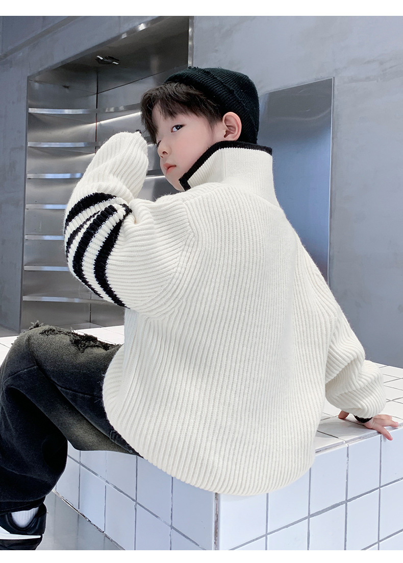 아동복 남아용 스웨터 가을 겨울 2025 신상 중대형 아동 니트 터틀넥 밑단 스웨터 풀오버 흰색 스웨터스토어 가기