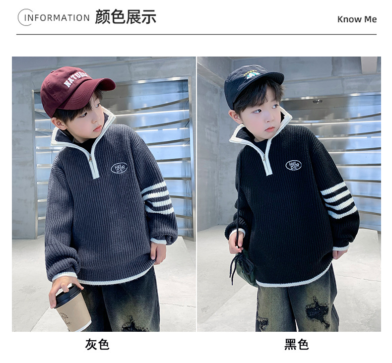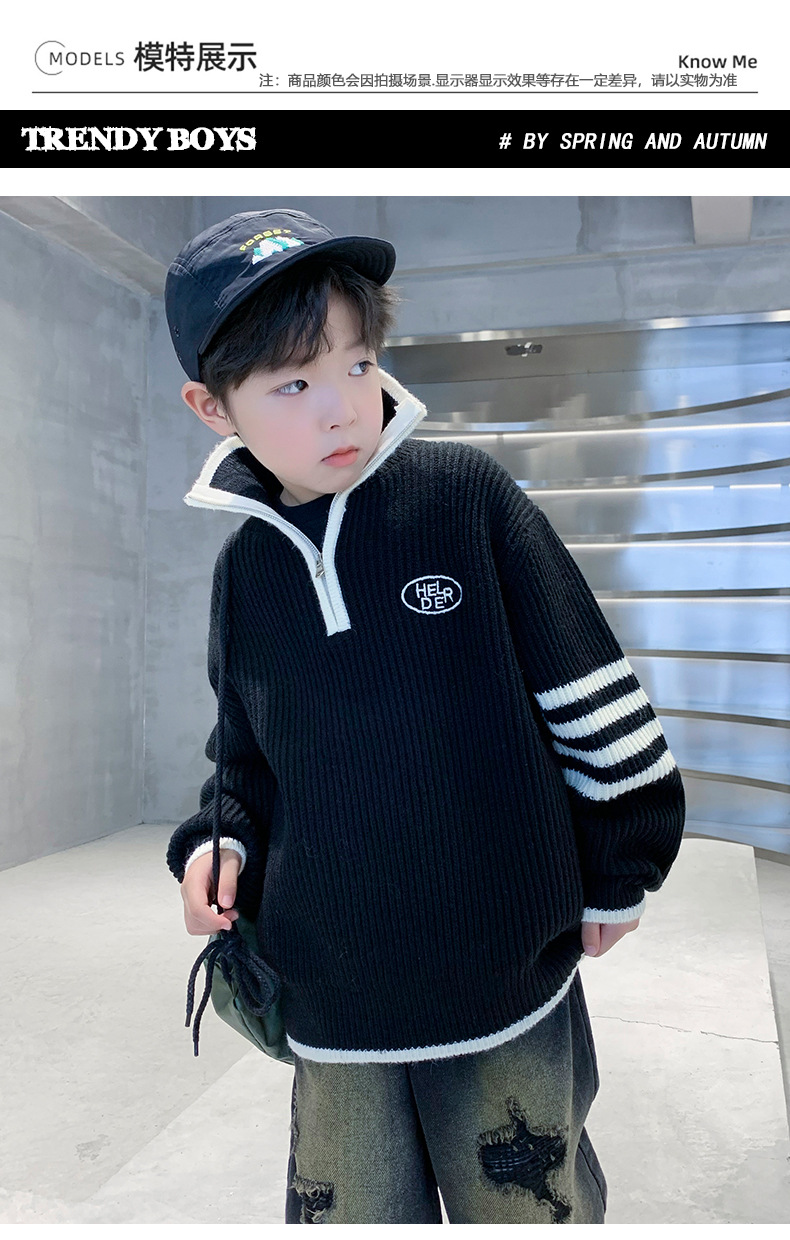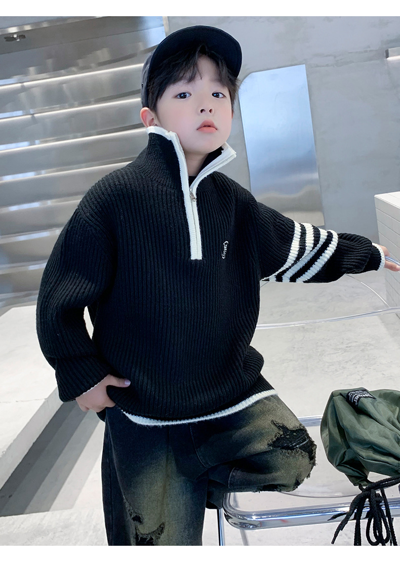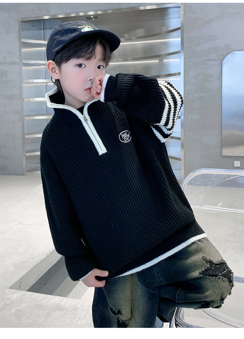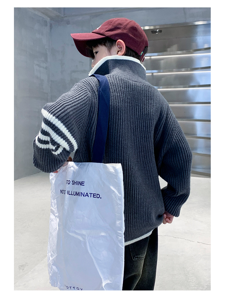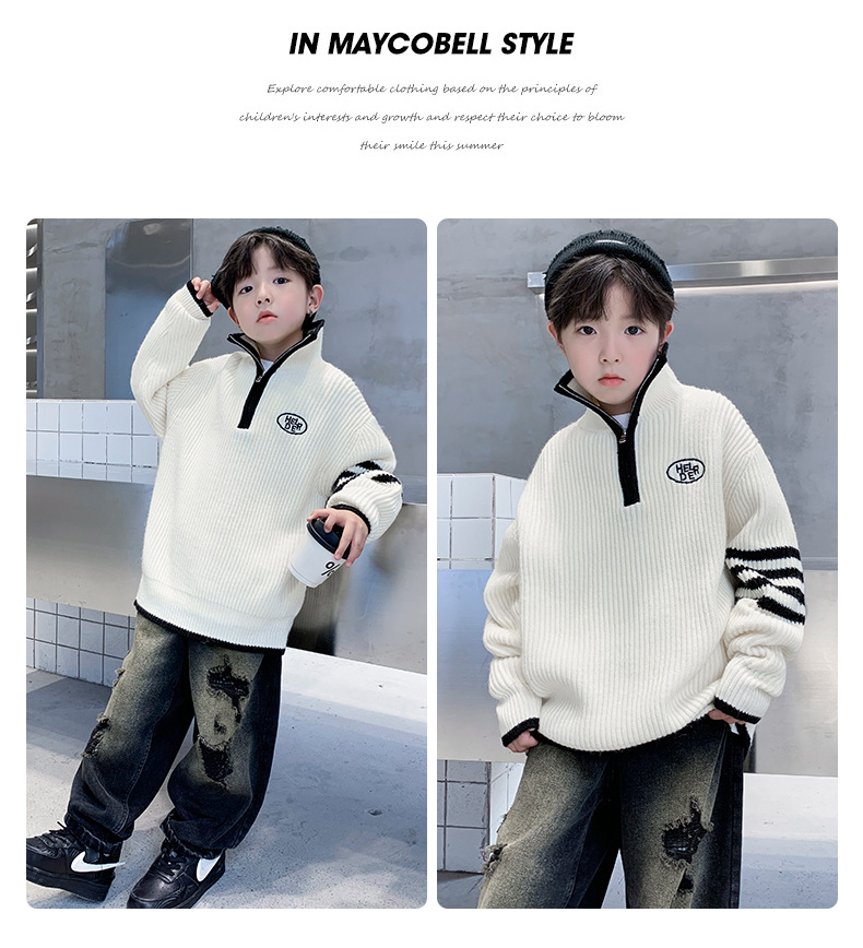 아동복 남아용 스웨터 가을 겨울 2025 신상 중대형 아동 니트 터틀넥 밑단 스웨터 풀오버 흰색 스웨터스토어 가기