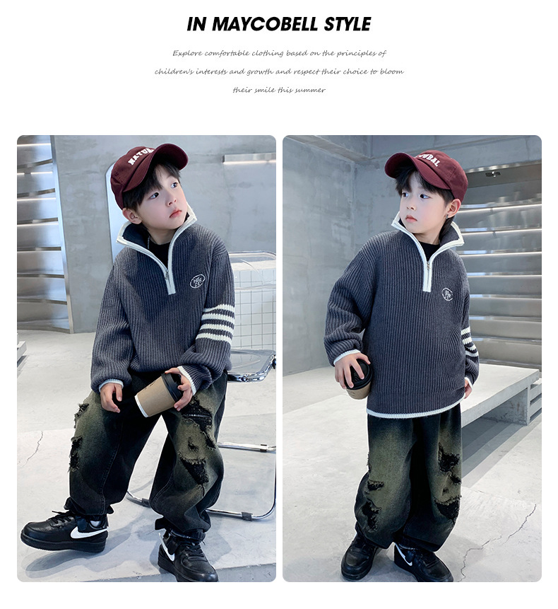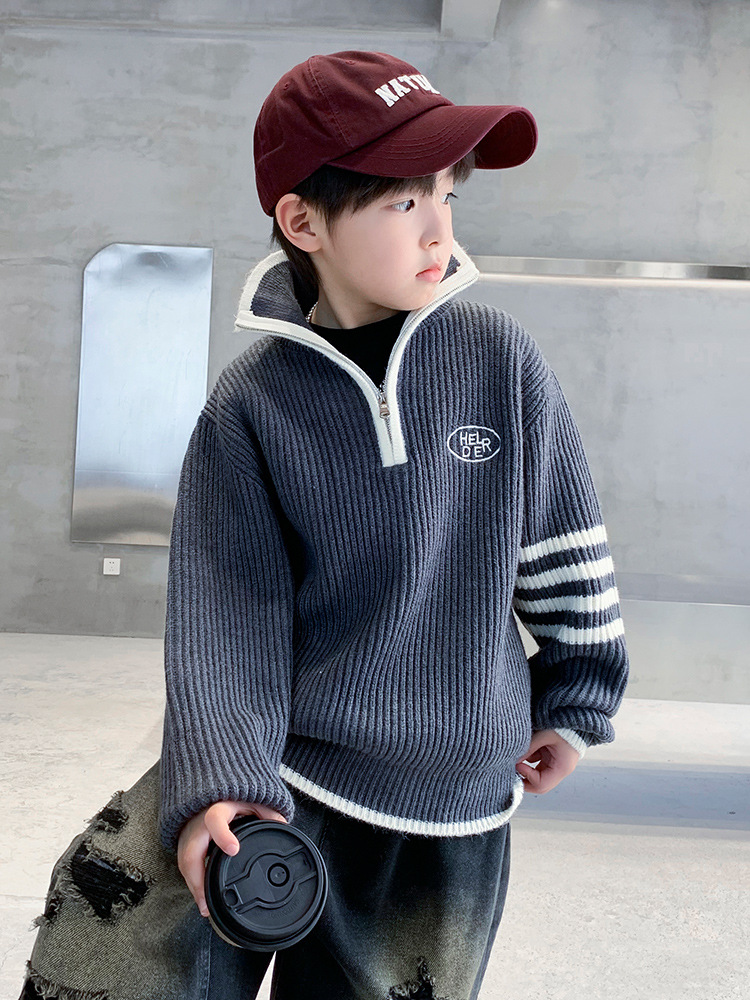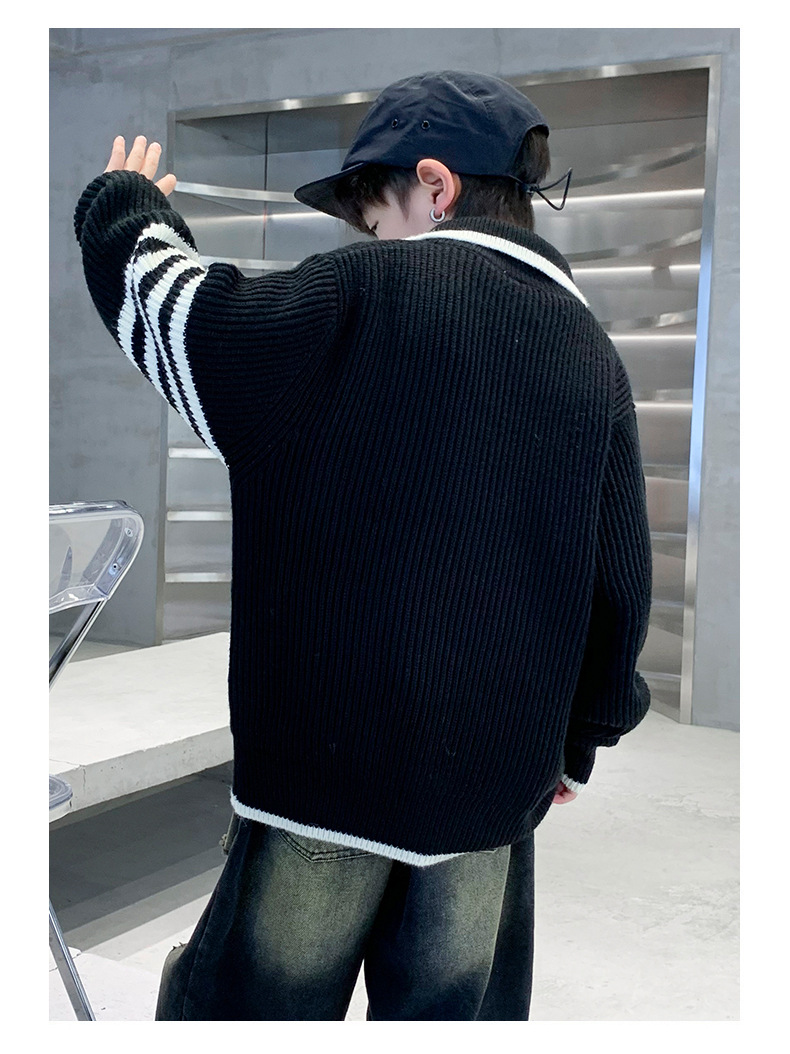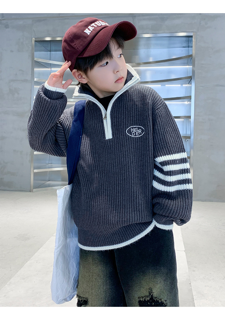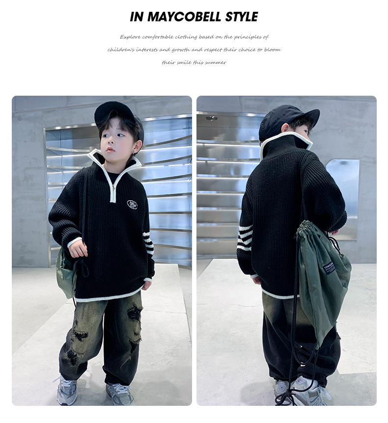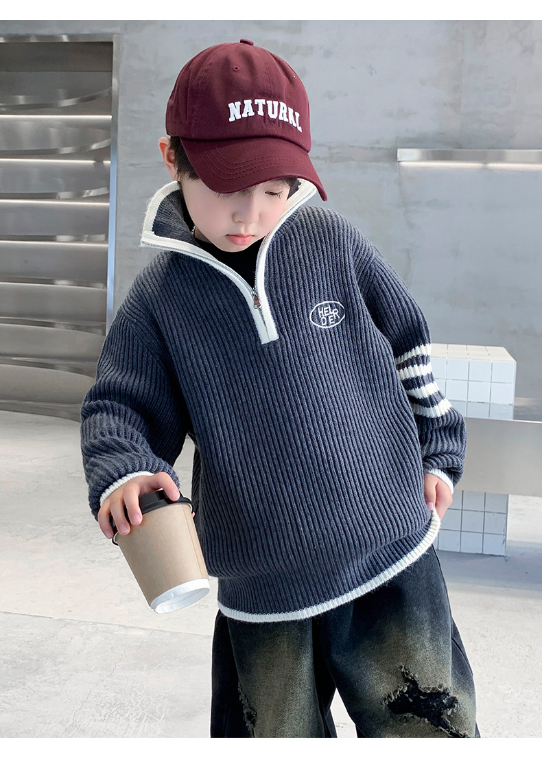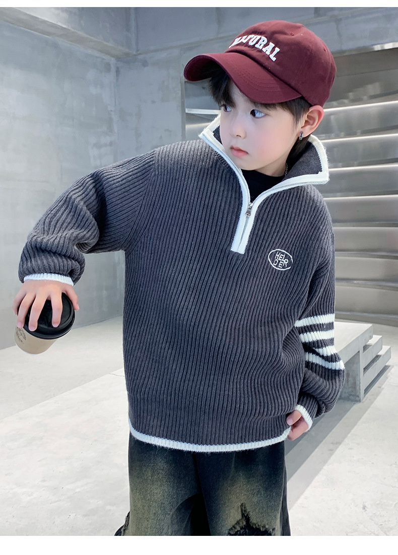 아동복 남아용 스웨터 가을 겨울 2025 신상 중대형 아동 니트 터틀넥 밑단 스웨터 풀오버 흰색 스웨터스토어 가기