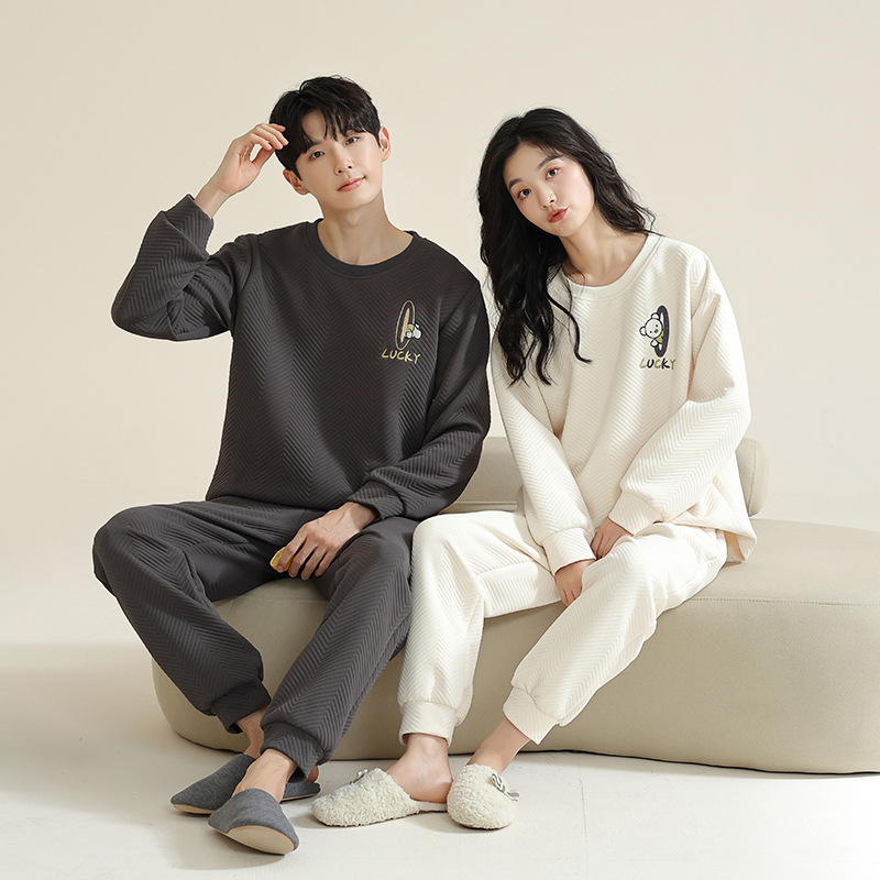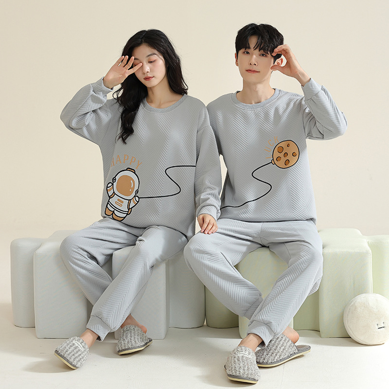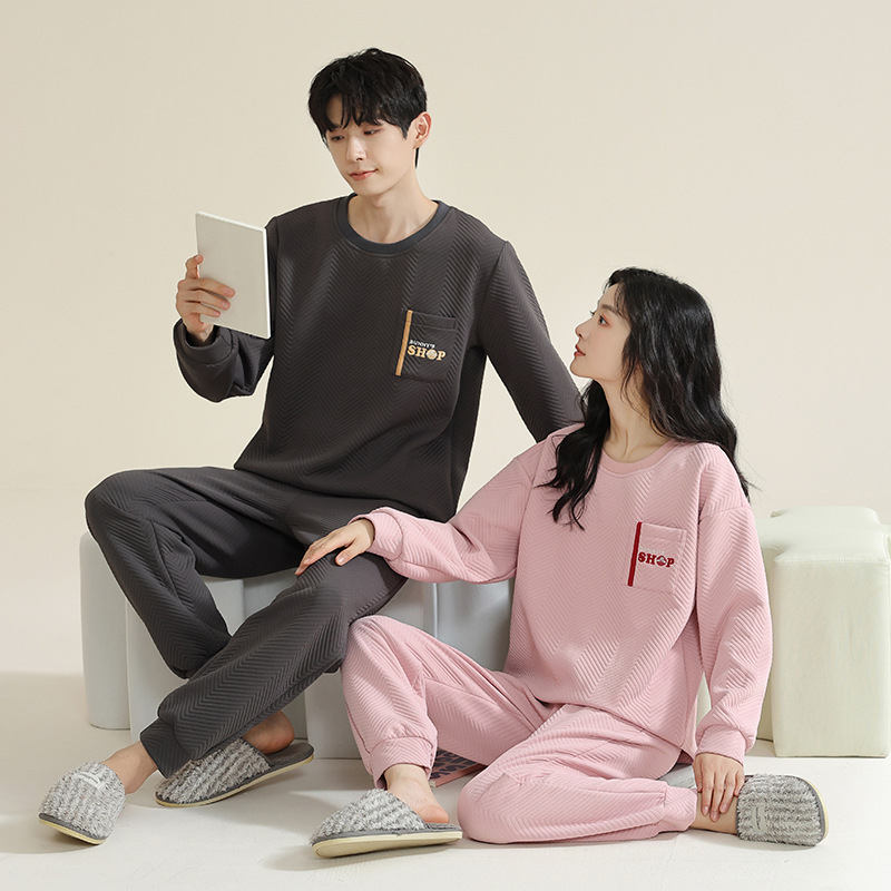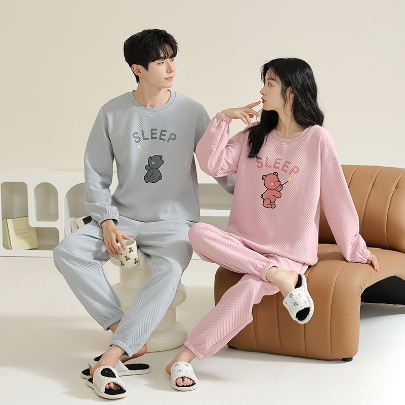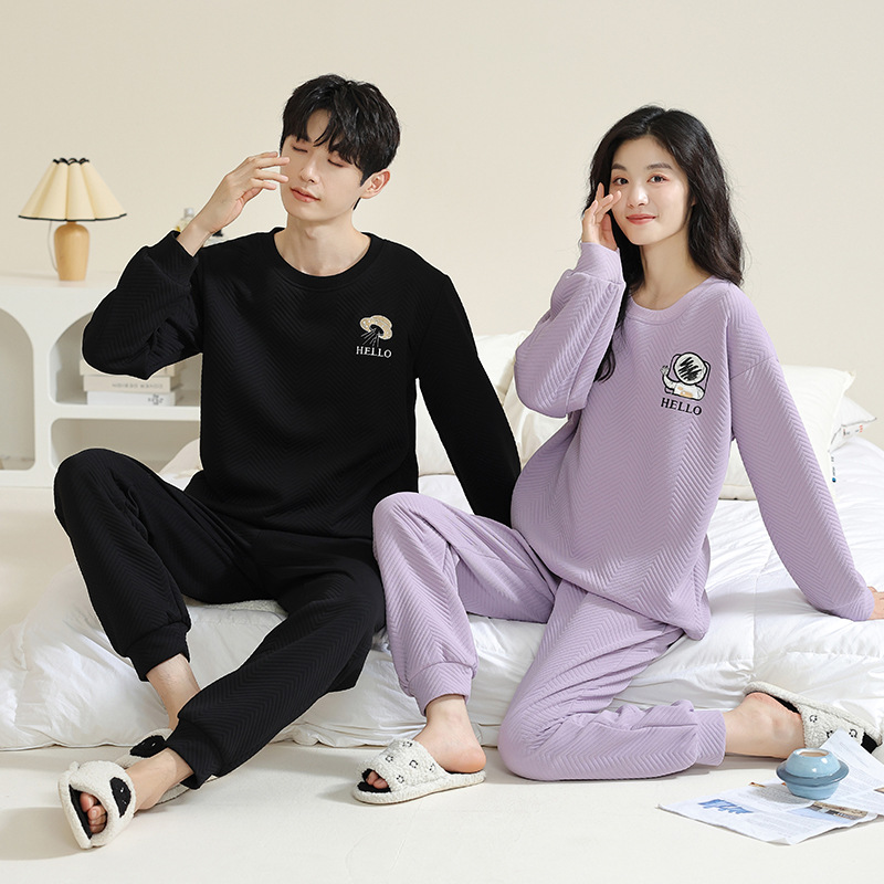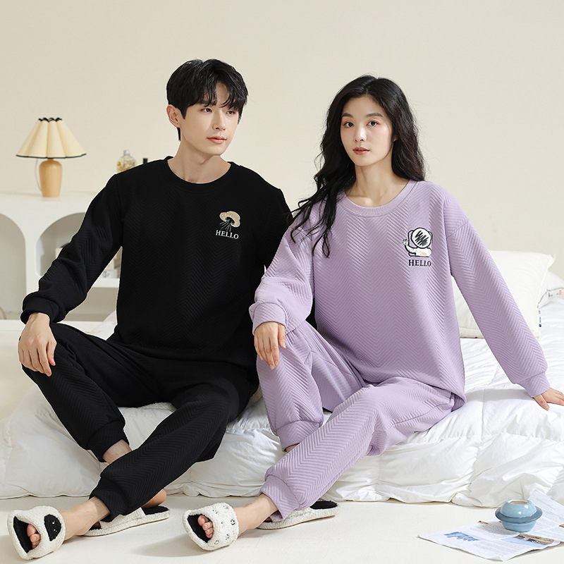 도매 커플 잠옷 남자와 여자의 봄과 가을 두꺼운 긴 소매 겨울 얇은 면 공기 면 샌드위치 가정 옷 겨울스토어 가기