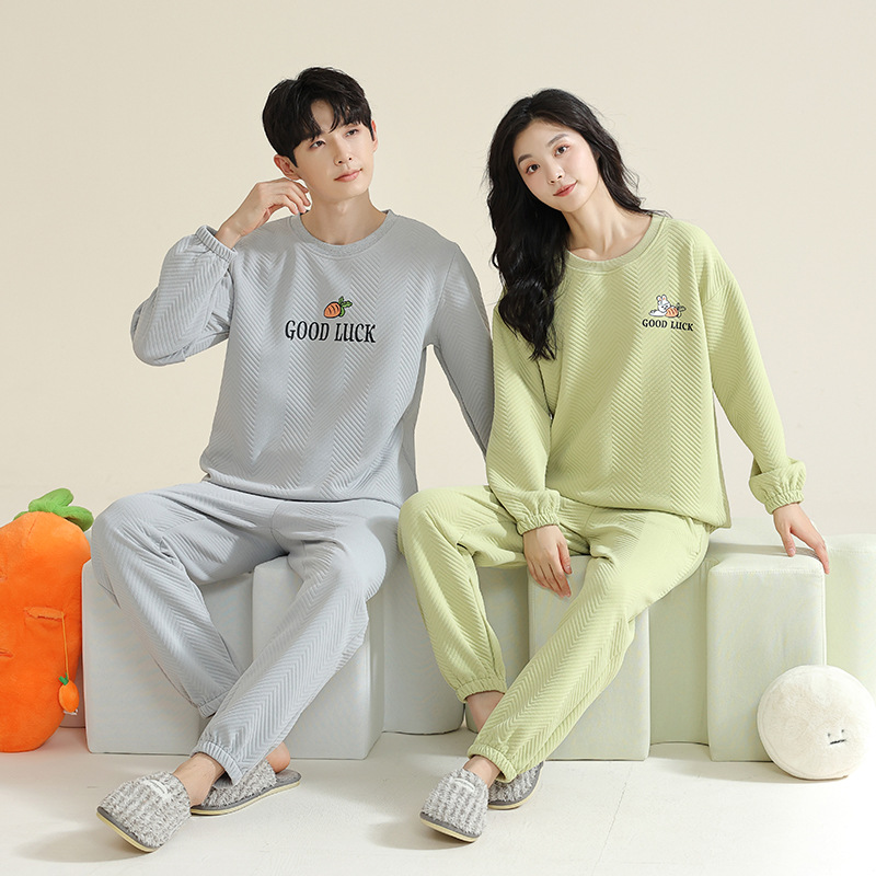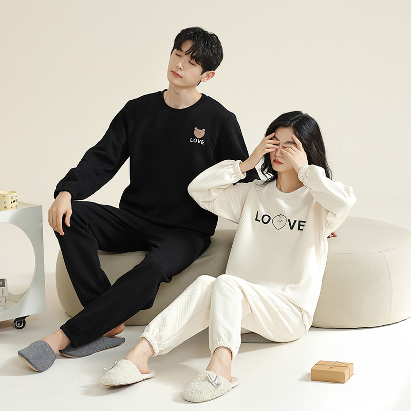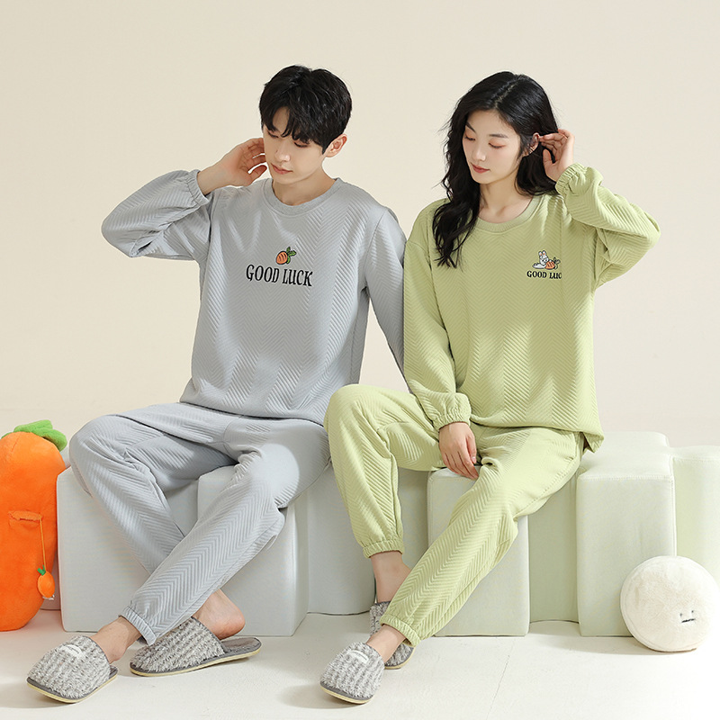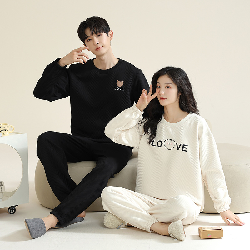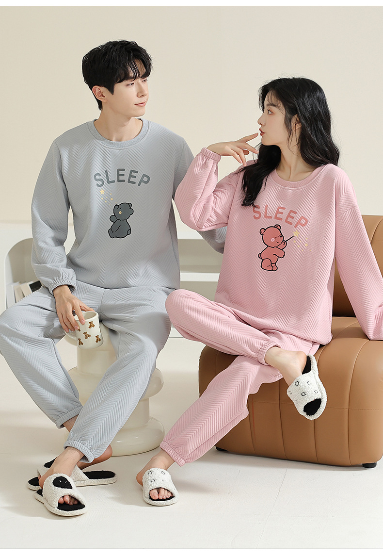 도매 커플 잠옷 남자와 여자의 봄과 가을 두꺼운 긴 소매 겨울 얇은 면 공기 면 샌드위치 가정 옷 겨울스토어 가기