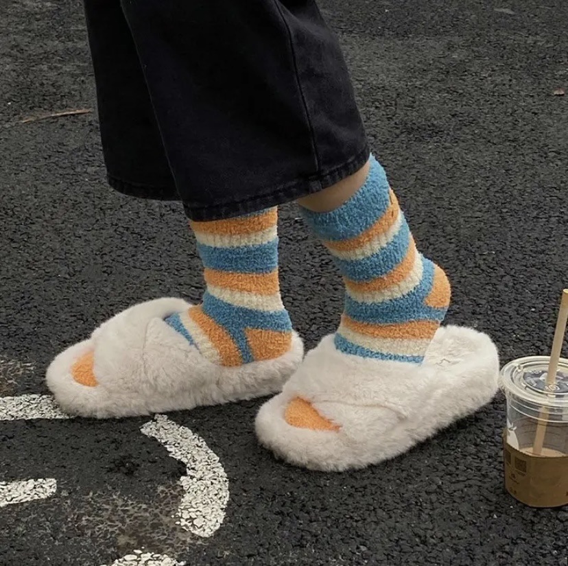 일본식 양말 가을과 겨울 산호 양털 두꺼운 바닥 양말 따뜻한 귀여운 중간 양말 스타킹 수면 양말 유행스토어 가기