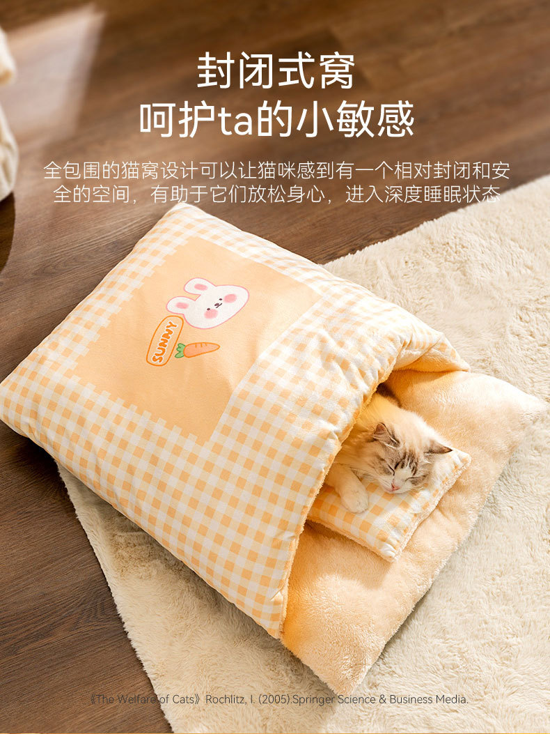 격자 무늬 토끼 가을, 겨울 따뜻한 두꺼운 고양이 침낭 고양이 둥지 개 폐쇄 개 둥지 애완 동물 매트리스스토어 가기