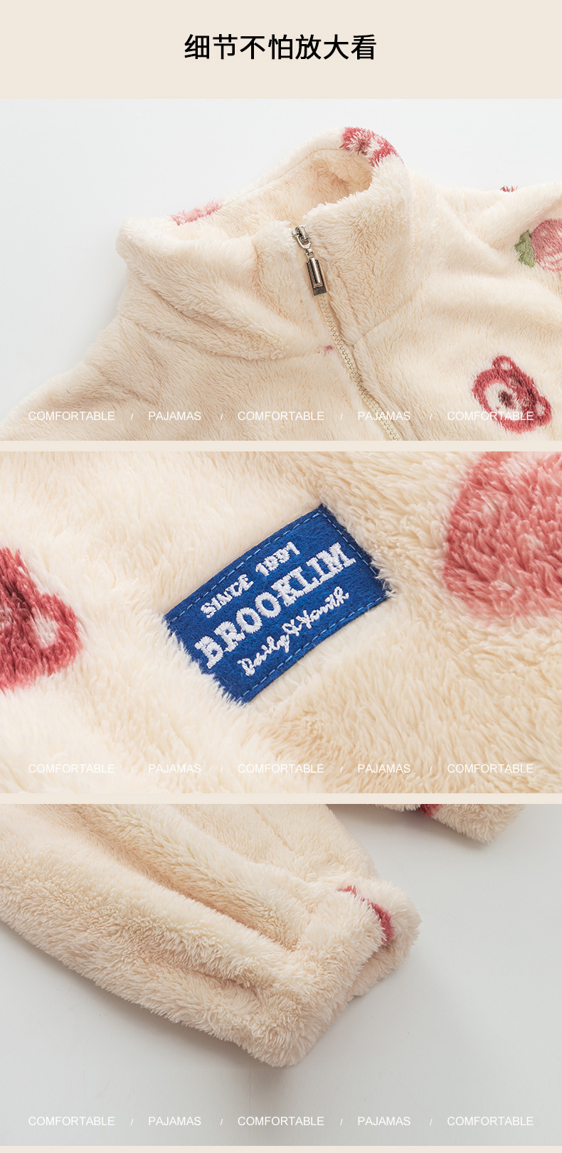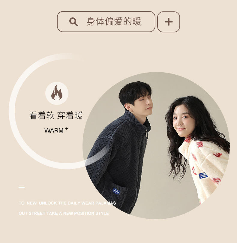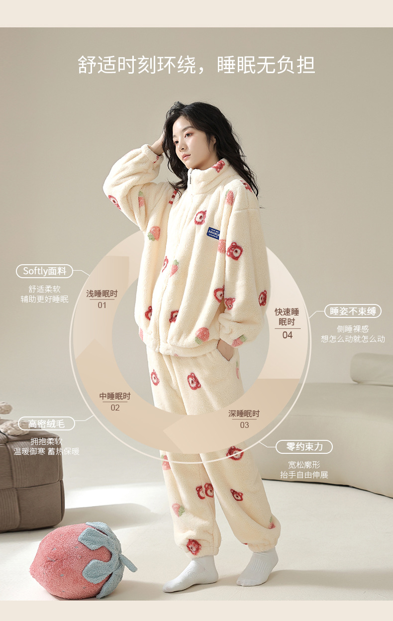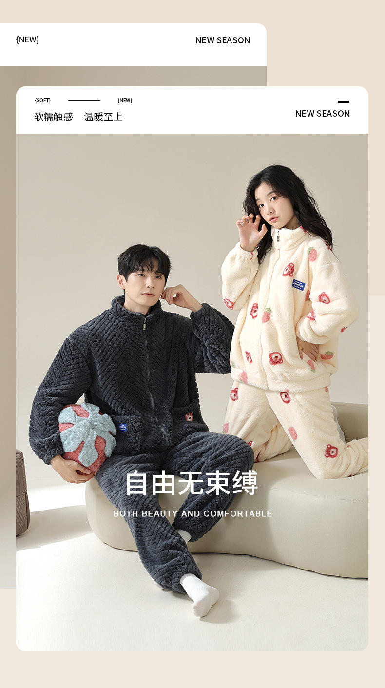 연인을위한 산호 양털 잠옷 가을과 겨울 두꺼운 양털 만화 귀여운 지퍼 가정 옷 남성과 여성 겨울 따뜻한 세트스토어 가기