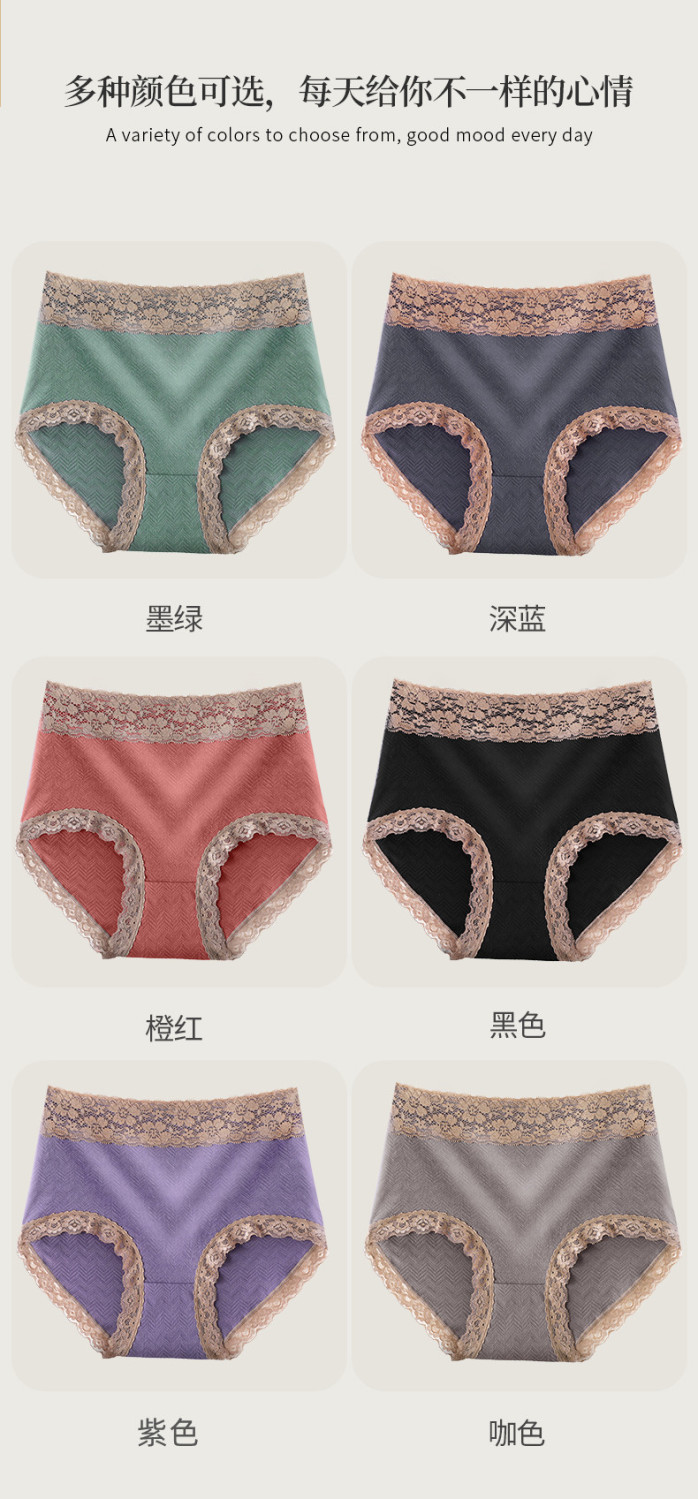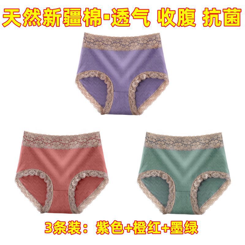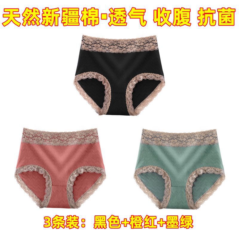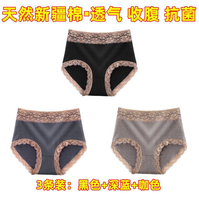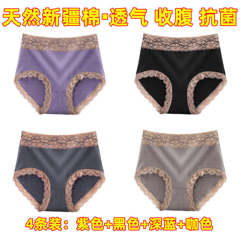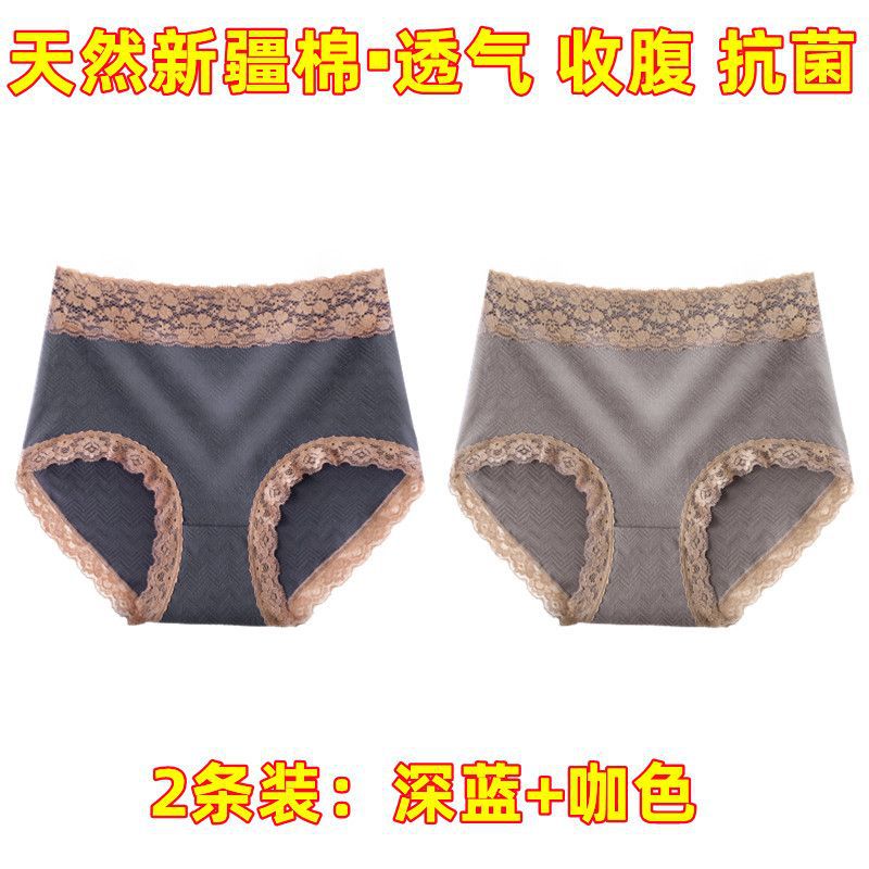 6 순면 항균 속옷 여자의 하이 웨이스트 100% 면 플러스 사이즈 레이스 섹시한 배꼽 여성의 팬티 가을과 겨울스토어 가기